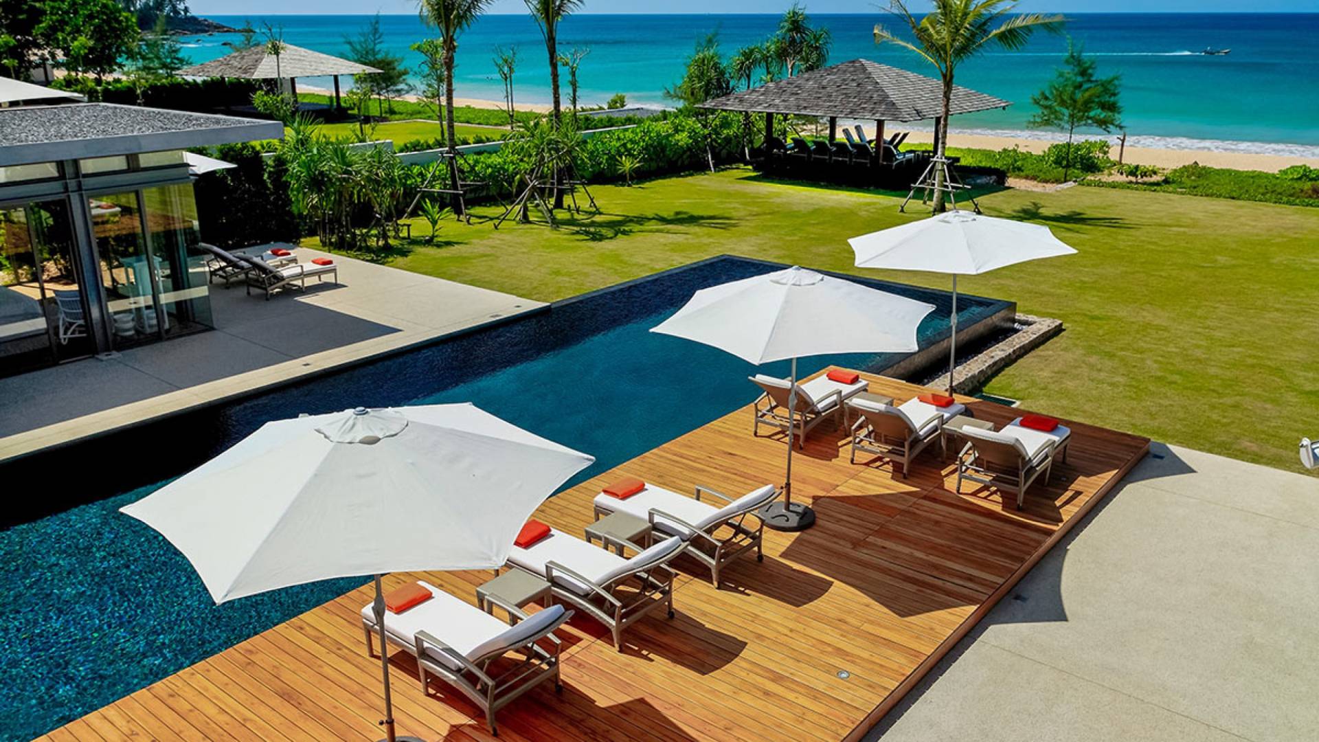 Situata su un acro di terreno fronte mare a Natai Beach, a mezz'ora di auto dall'aeroporto di Phuket, e con viste infinite sull'oceano, la Villa Malee Sai con sei camere da letto offre una lussuosa fuga tropicale per famiglie e gruppi. I luminosi soggiorni e le sale da pranzo a pianta aperta della villa si aprono completamente sulla terrazza, sull'area di intrattenimento all'aperto e sulla piscina a sfioro privata lunga 25 metri che si estende verso l'orizzonte. Villa Malee Sai contiene una vasta gamma di servizi, che includono una moderna cucina per gli ospiti, una sala TV, un'area bocce, ping pong, un biliardino e biciclette gratuite. Il servizio a cinque stelle include un abile chef tailandese e un amichevole gestore della villa. Un luogo da sogno per un matrimonio o un evento speciale.