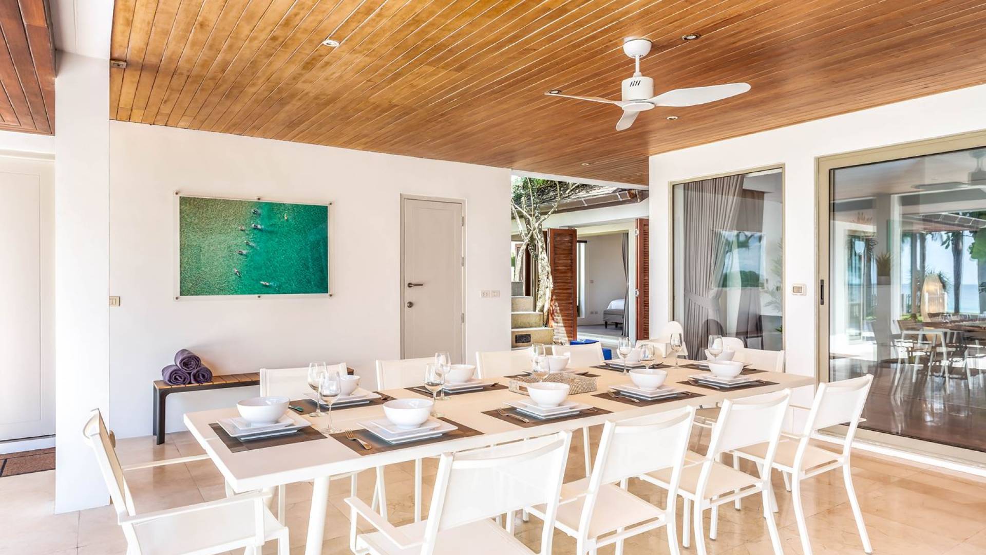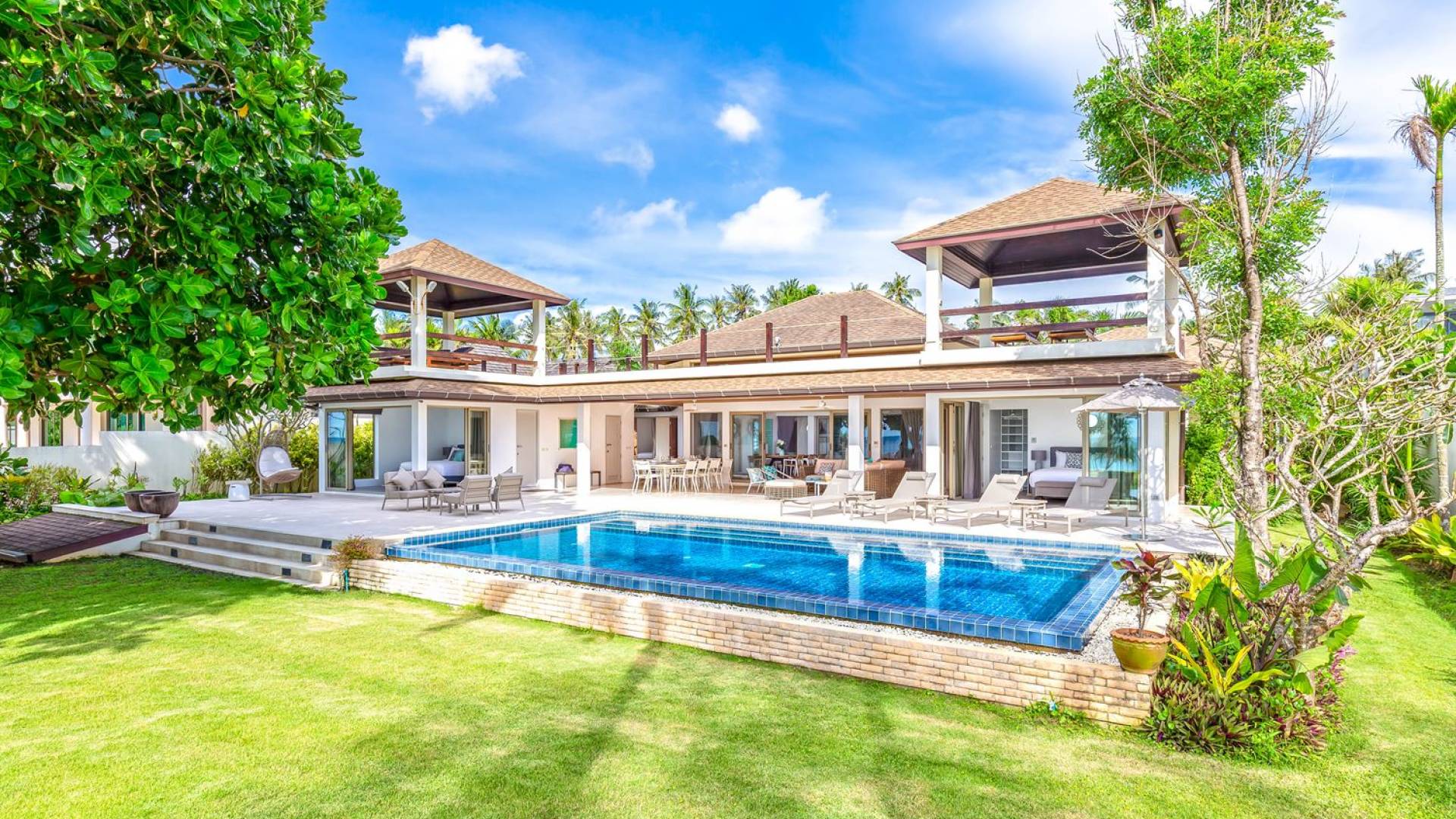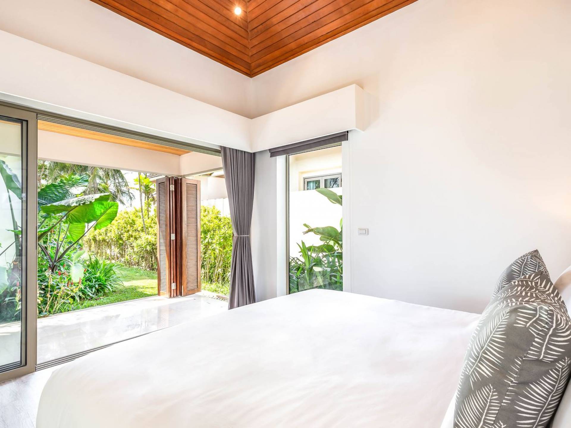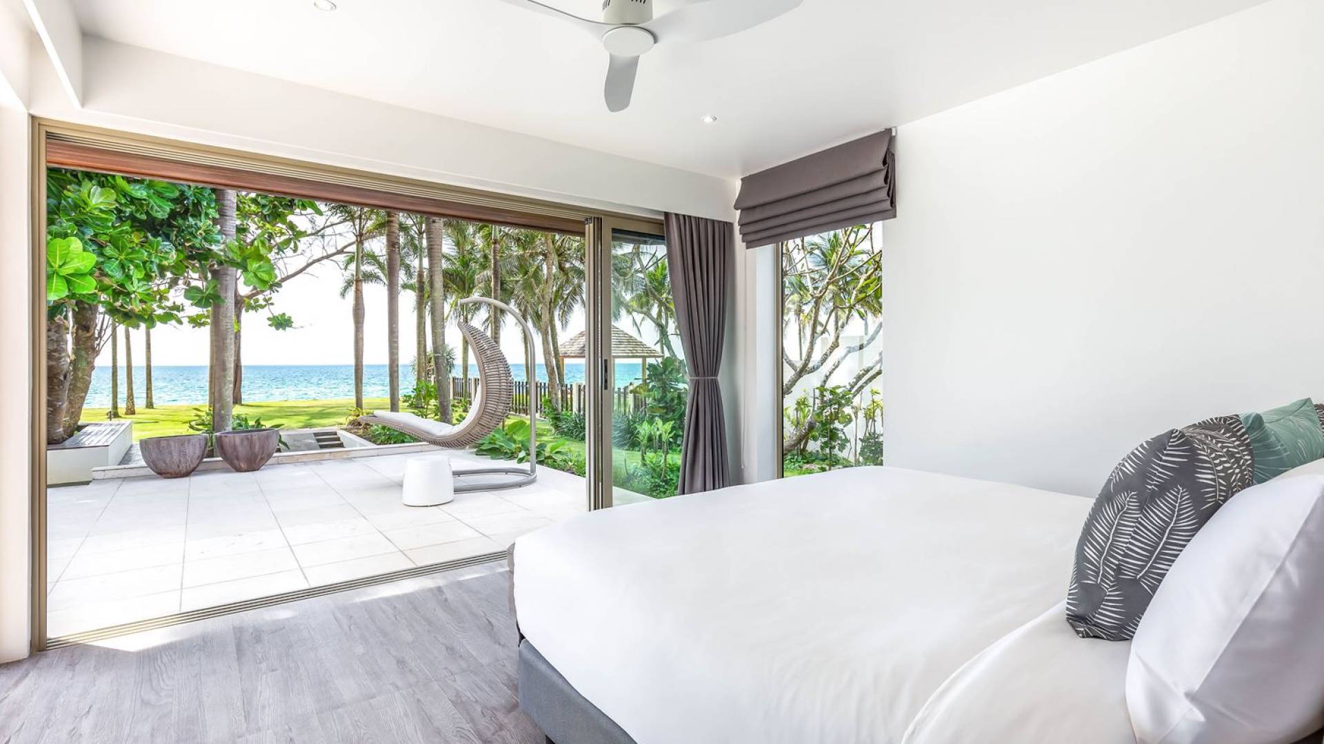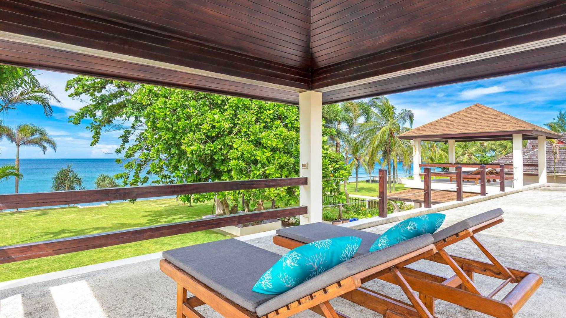 Il giardino ben curato separa la casa dalla spiaggia. Quattro alberi di Barringtonia Asiatica al centro forniscono un'ombra di benvenuto e anche un'area salotto sotto di loro. C'è spazio per allestire un campo da calcio o da badminton affinché tutti possano godersi alcune attività pomeridiane, o scendere in spiaggia prima del tramonto per una partita a bocce. Sono disponibili anche materassini da yoga per chi ama il saluto al sole e la meditazione al mattino presto. Una rimessa per barche situata sotto il giardino ospita un kayak, una tavola da windsurf e una tavola da boogie che sono ad uso gratuito per tutti gli ospiti.
