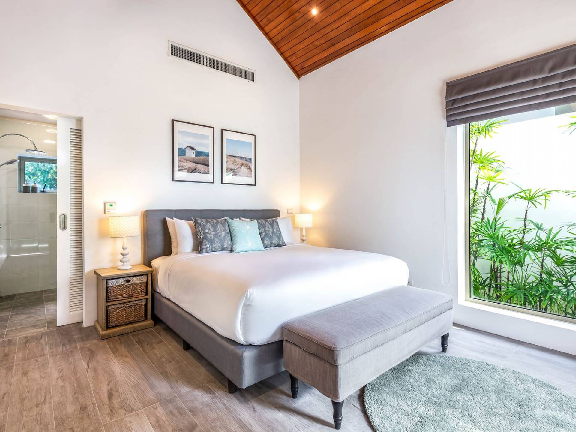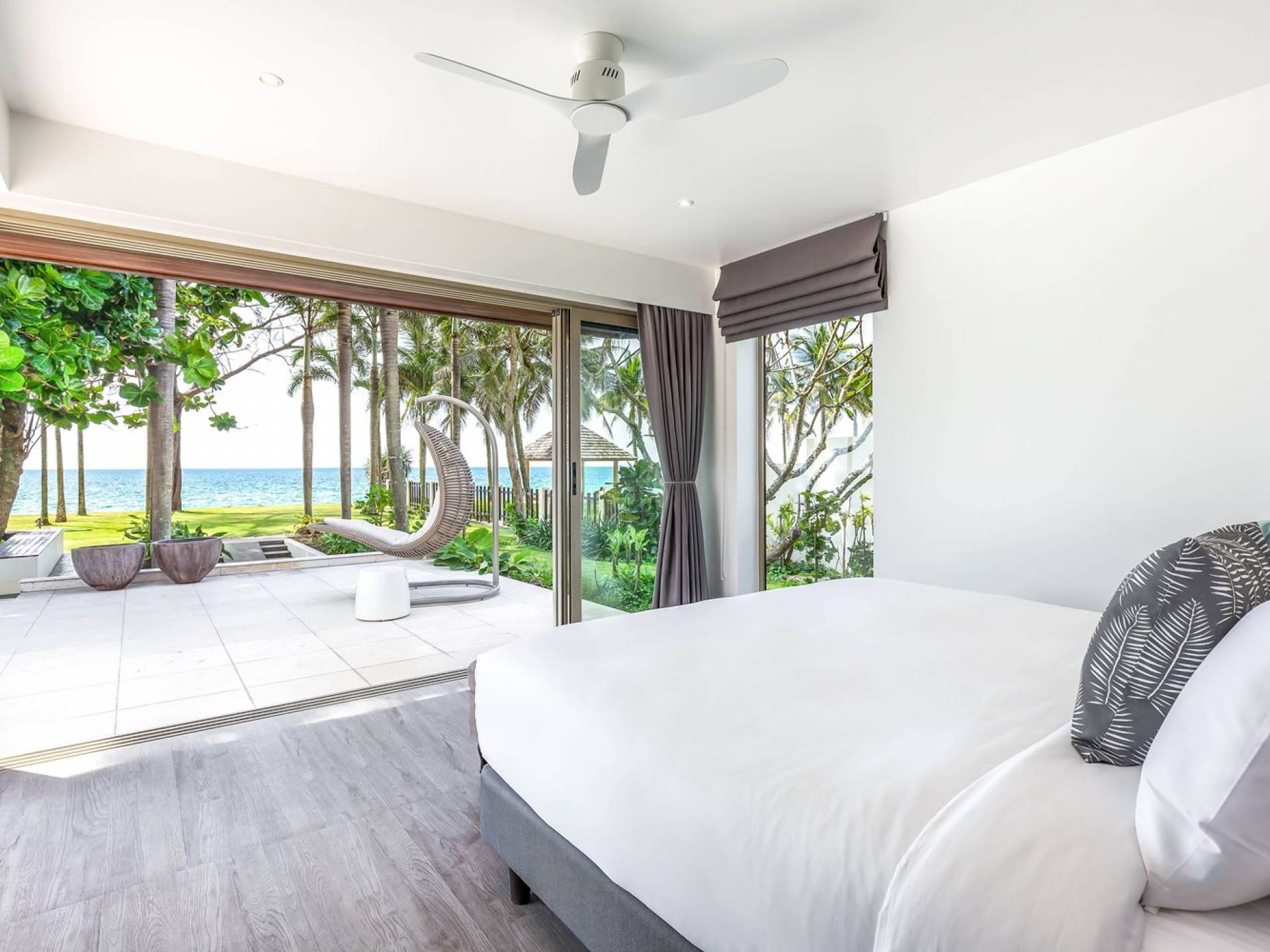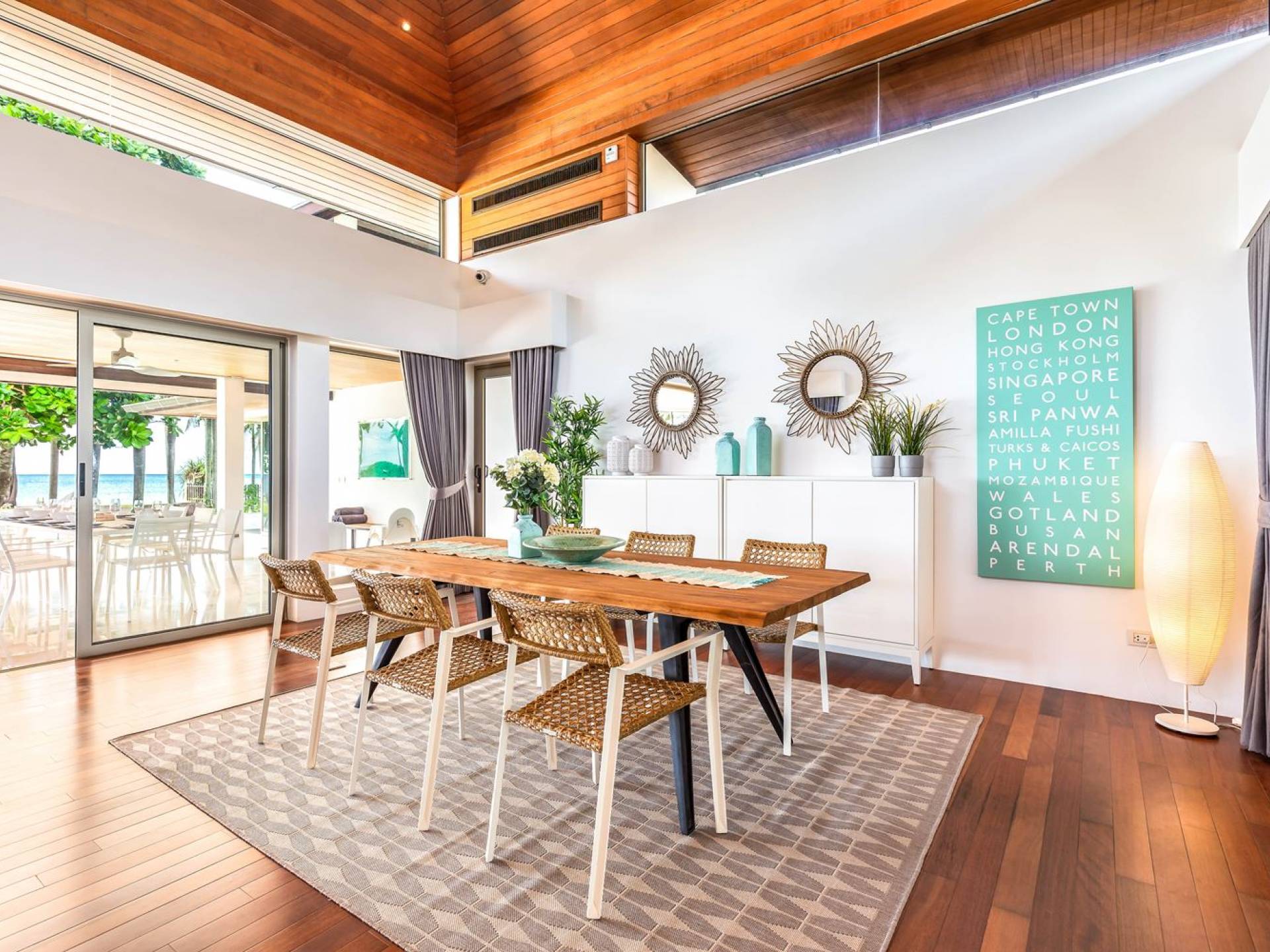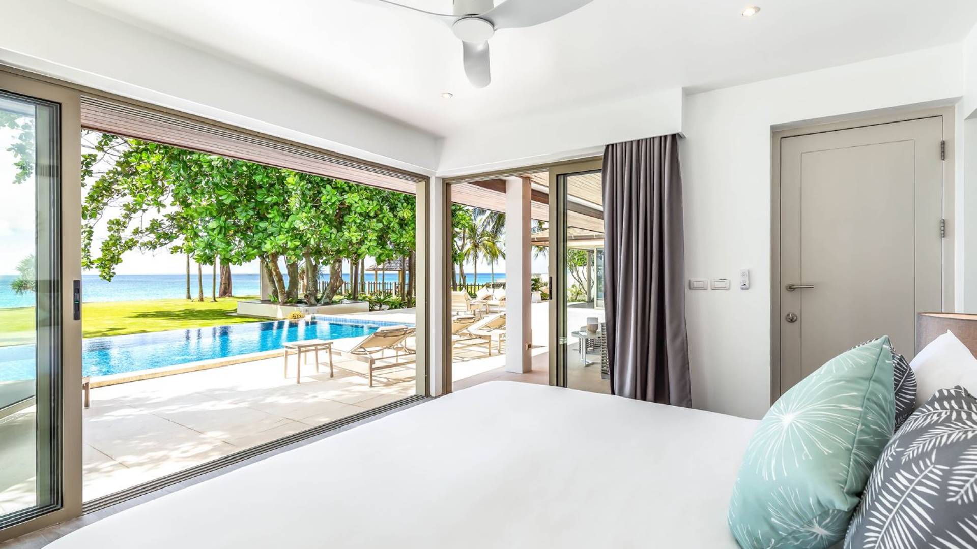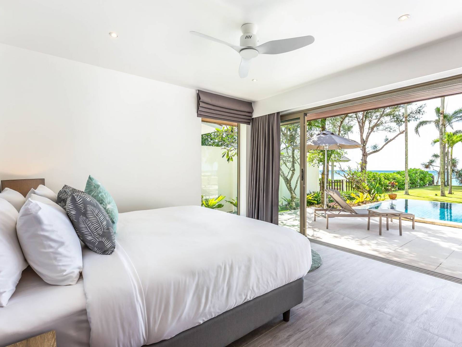 Due camere matrimoniali con bagno privato si trovano nella parte anteriore della casa e con finestre dal pavimento al soffitto significa una vista mozzafiato direttamente sull'oceano dal comfort del tuo letto. Altre due camere da letto, entrambe con bagno privato, sono arretrate rispetto al giardino e dotate di letti king size e splendidamente decorate con le immagini degli arcipelaghi scandinavi. La camera dei bambini è dotata di due letti singoli con letti scorrevoli sotto, che si trasformano in 4 letti singoli per un'esperienza di pigiama party. Questa camera è inoltre dotata di TV e PlayStation (su richiesta), dove i bambini possono ritirarsi al tramonto. Una stanza studio in più con un letto matrimoniale a scomparsa significa che Villa Sand può ospitare comodamente fino a 10 adulti o 8 adulti e 6 bambini. La camera extra è anche un'aggiunta perfetta per tutte le famiglie che desiderano portare con sé una tata. Tutte le camere sono dotate di aria condizionata e ventilatori a soffitto.