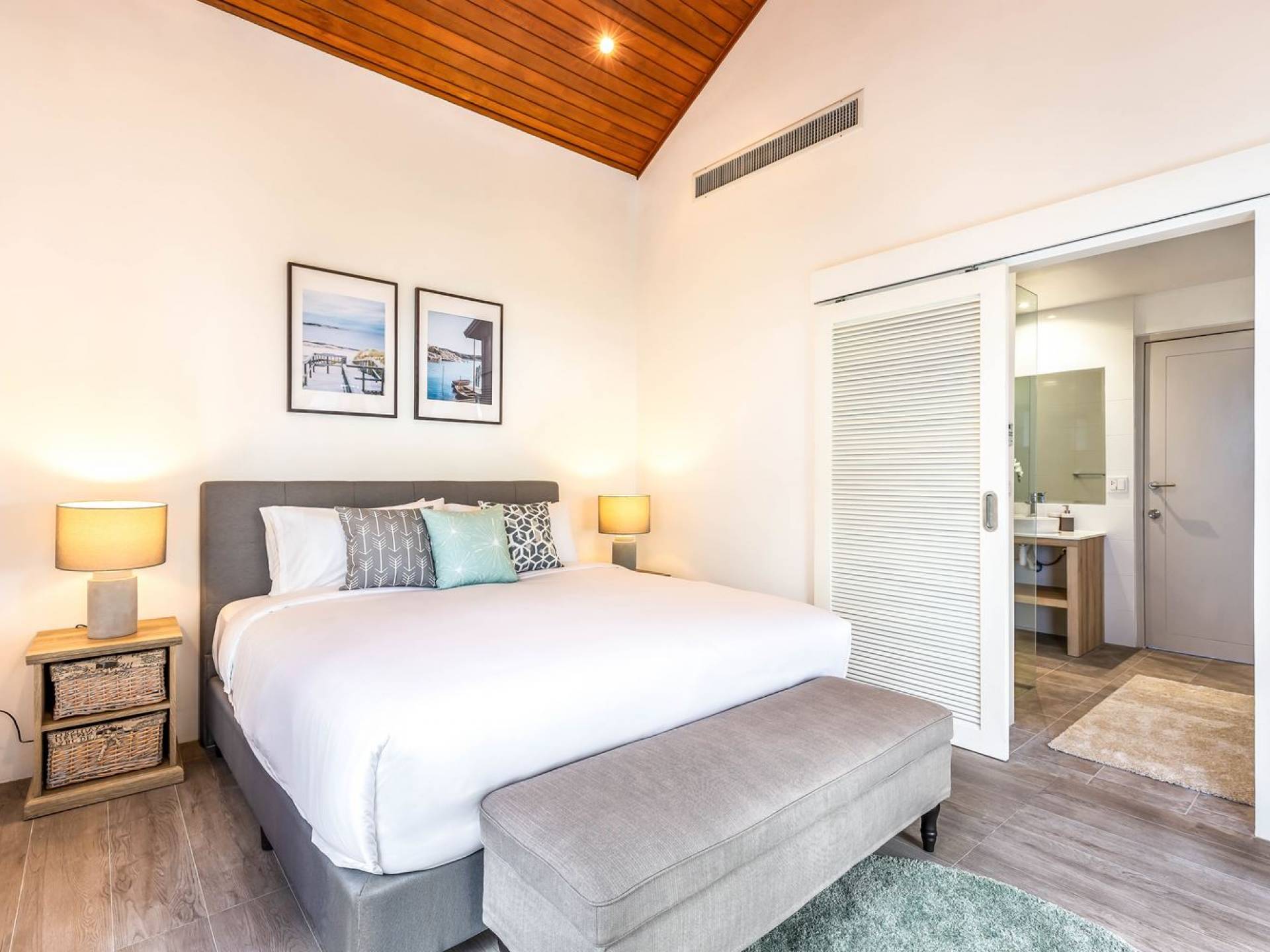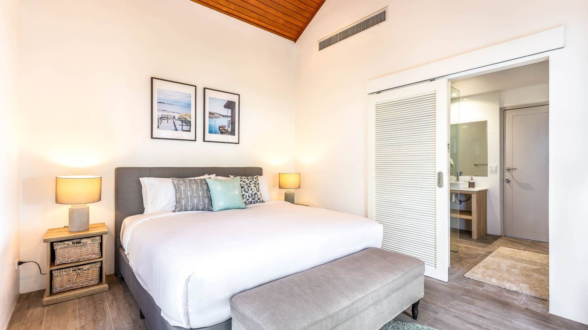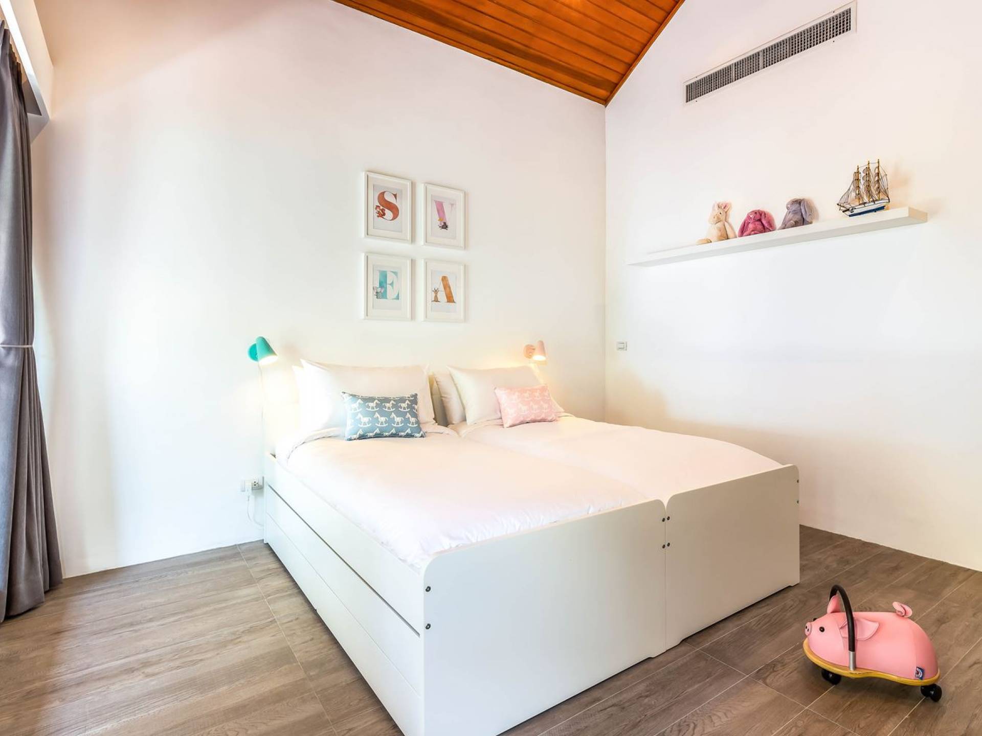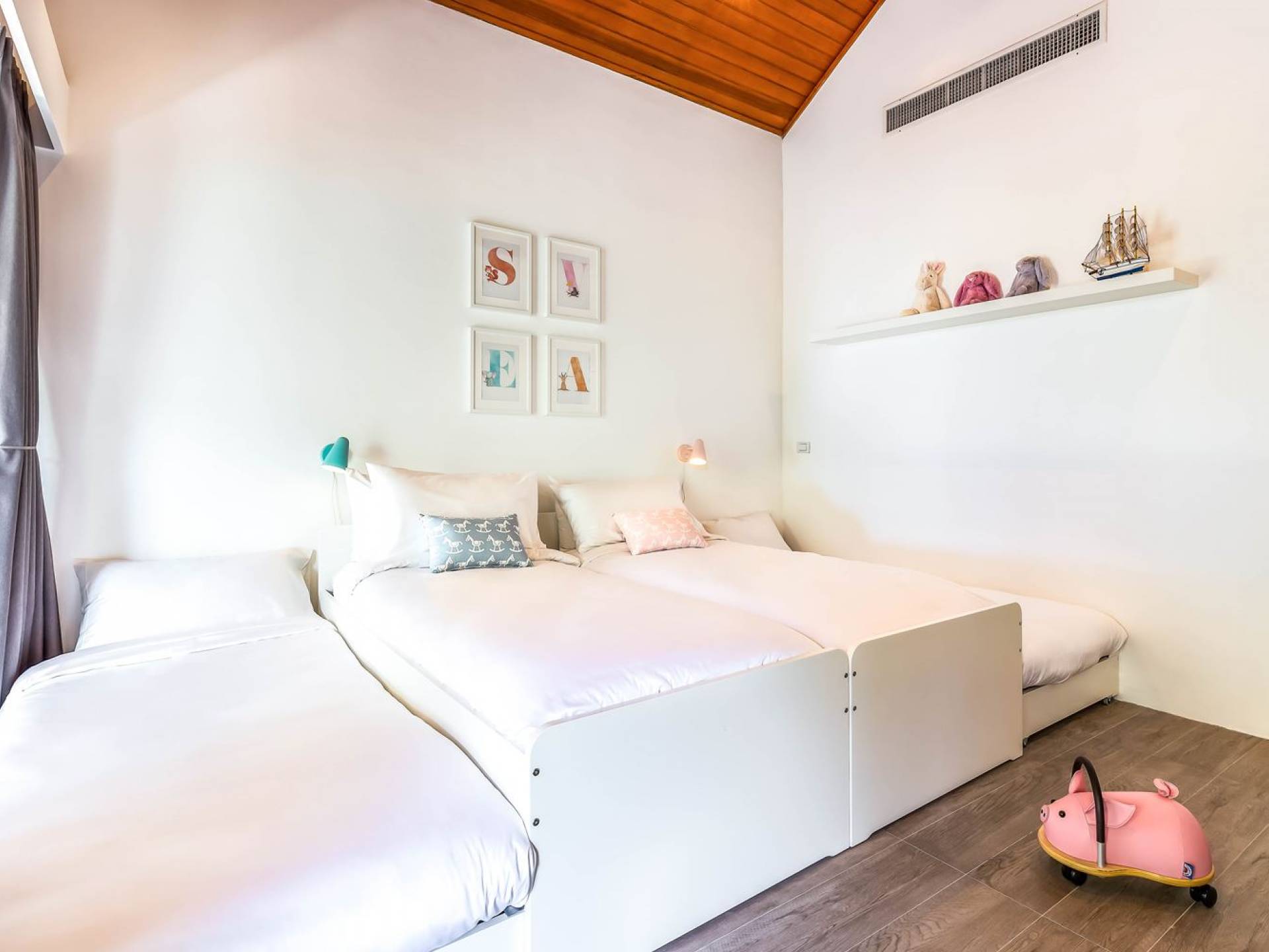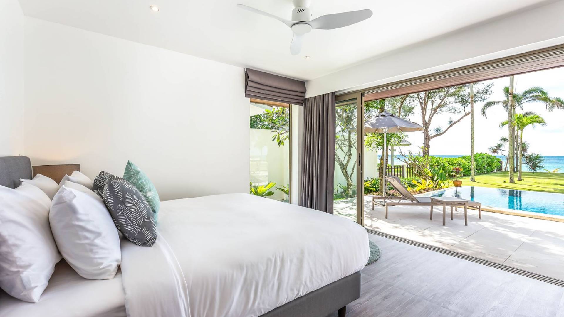 Due camere matrimoniali con bagno privato si trovano nella parte anteriore della casa e con finestre dal pavimento al soffitto significa una vista mozzafiato direttamente sull'oceano dal comfort del tuo letto. Altre due camere da letto, entrambe con bagno privato, sono arretrate rispetto al giardino e dotate di letti king size e splendidamente decorate con le immagini degli arcipelaghi scandinavi. La camera dei bambini è dotata di due letti singoli con letti scorrevoli sotto, che si trasformano in 4 letti singoli per un'esperienza di pigiama party. Questa camera è inoltre dotata di TV e PlayStation (su richiesta), dove i bambini possono ritirarsi al tramonto. Una stanza studio in più con un letto matrimoniale a scomparsa significa che Villa Sand può ospitare comodamente fino a 10 adulti o 8 adulti e 6 bambini. La camera extra è anche un'aggiunta perfetta per tutte le famiglie che desiderano portare con sé una tata. Tutte le camere sono dotate di aria condizionata e ventilatori a soffitto.