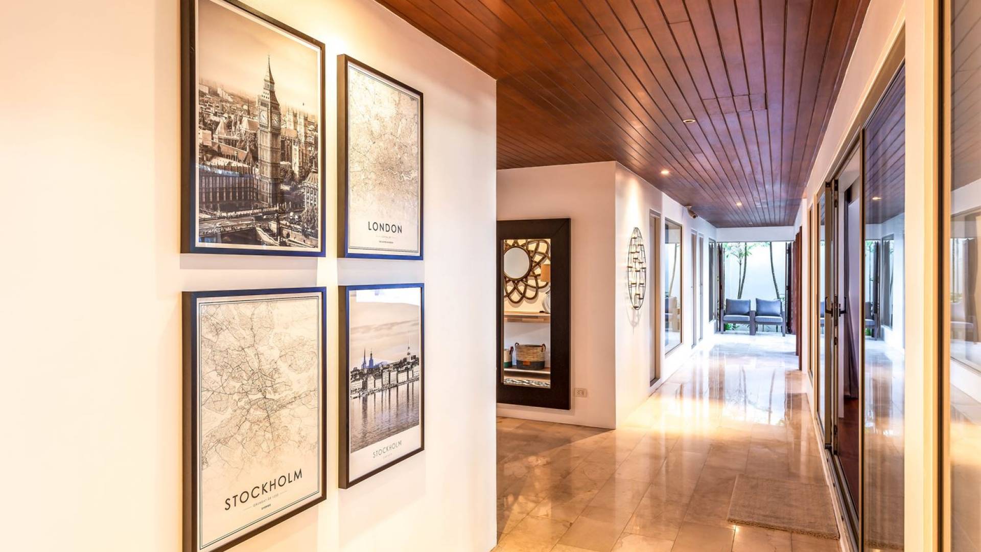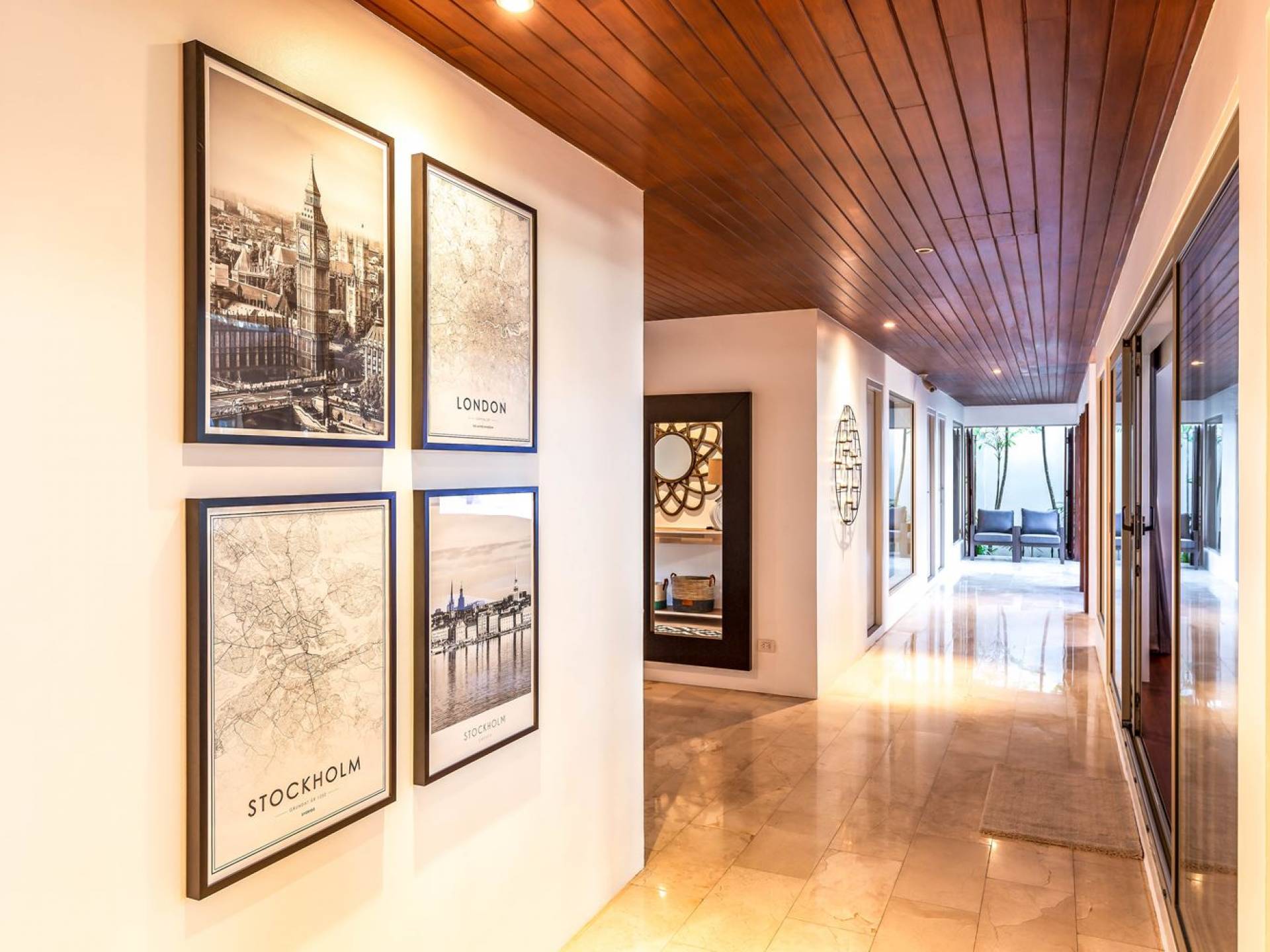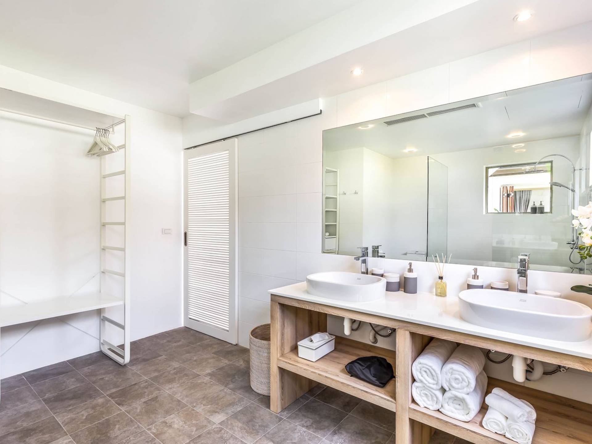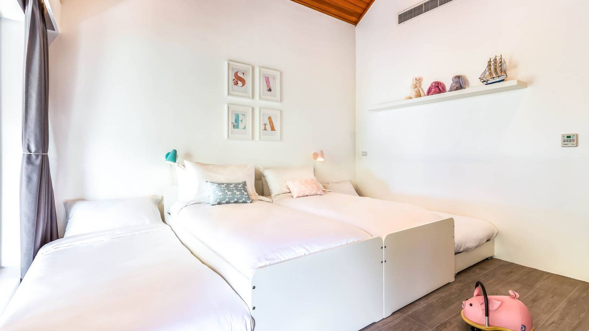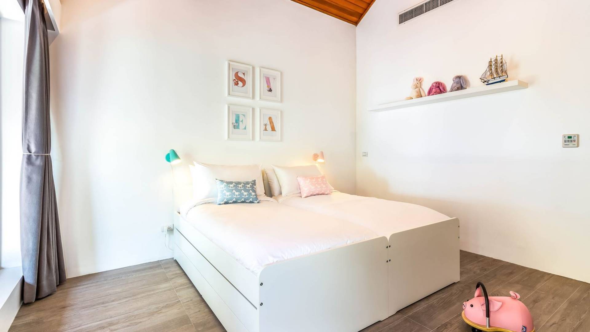 Due camere matrimoniali con bagno privato si trovano nella parte anteriore della casa e con finestre dal pavimento al soffitto significa una vista mozzafiato direttamente sull'oceano dal comfort del tuo letto. Altre due camere da letto, entrambe con bagno privato, sono arretrate rispetto al giardino e dotate di letti king size e splendidamente decorate con le immagini degli arcipelaghi scandinavi. La camera dei bambini è dotata di due letti singoli con letti scorrevoli sotto, che si trasformano in 4 letti singoli per un'esperienza di pigiama party. Questa camera è inoltre dotata di TV e PlayStation (su richiesta), dove i bambini possono ritirarsi al tramonto. Una stanza studio in più con un letto matrimoniale a scomparsa significa che Villa Sand può ospitare comodamente fino a 10 adulti o 8 adulti e 6 bambini. La camera extra è anche un'aggiunta perfetta per tutte le famiglie che desiderano portare con sé una tata. Tutte le camere sono dotate di aria condizionata e ventilatori a soffitto.