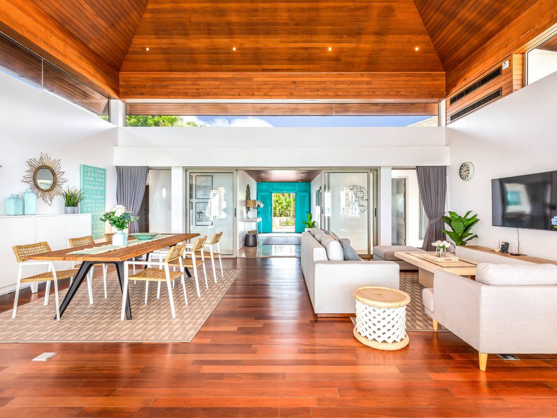Le ampie e luminose zone giorno di Villa Sand offrono un ambiente elegante per rilassarsi o divertirsi. Il soggiorno interno con vetrate a tutta altezza può ospitare 10 persone attorno al tavolo da pranzo, mentre l'area divano è l'ideale per rilassarsi a guardare la smart TV da 65 pollici. La villa ha un account NETFLIX collegato e c'è WIFI gratuito in tutta la casa.