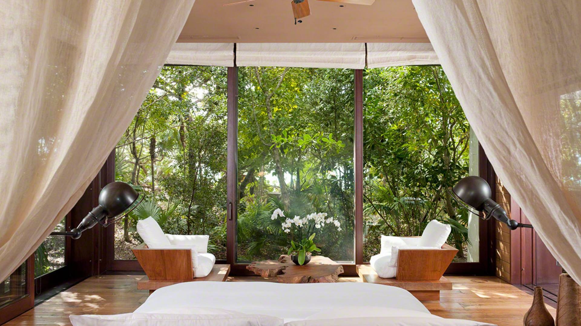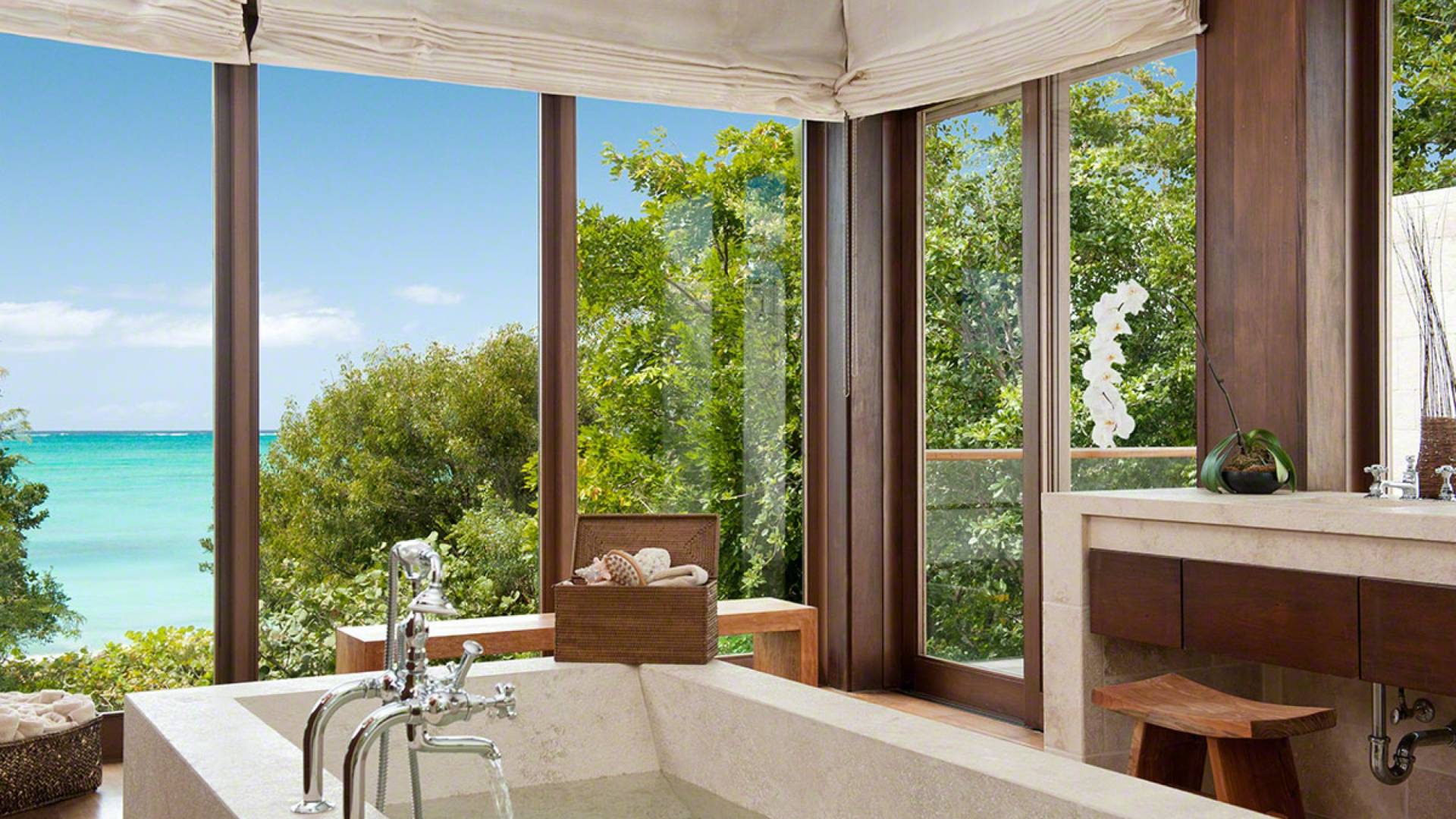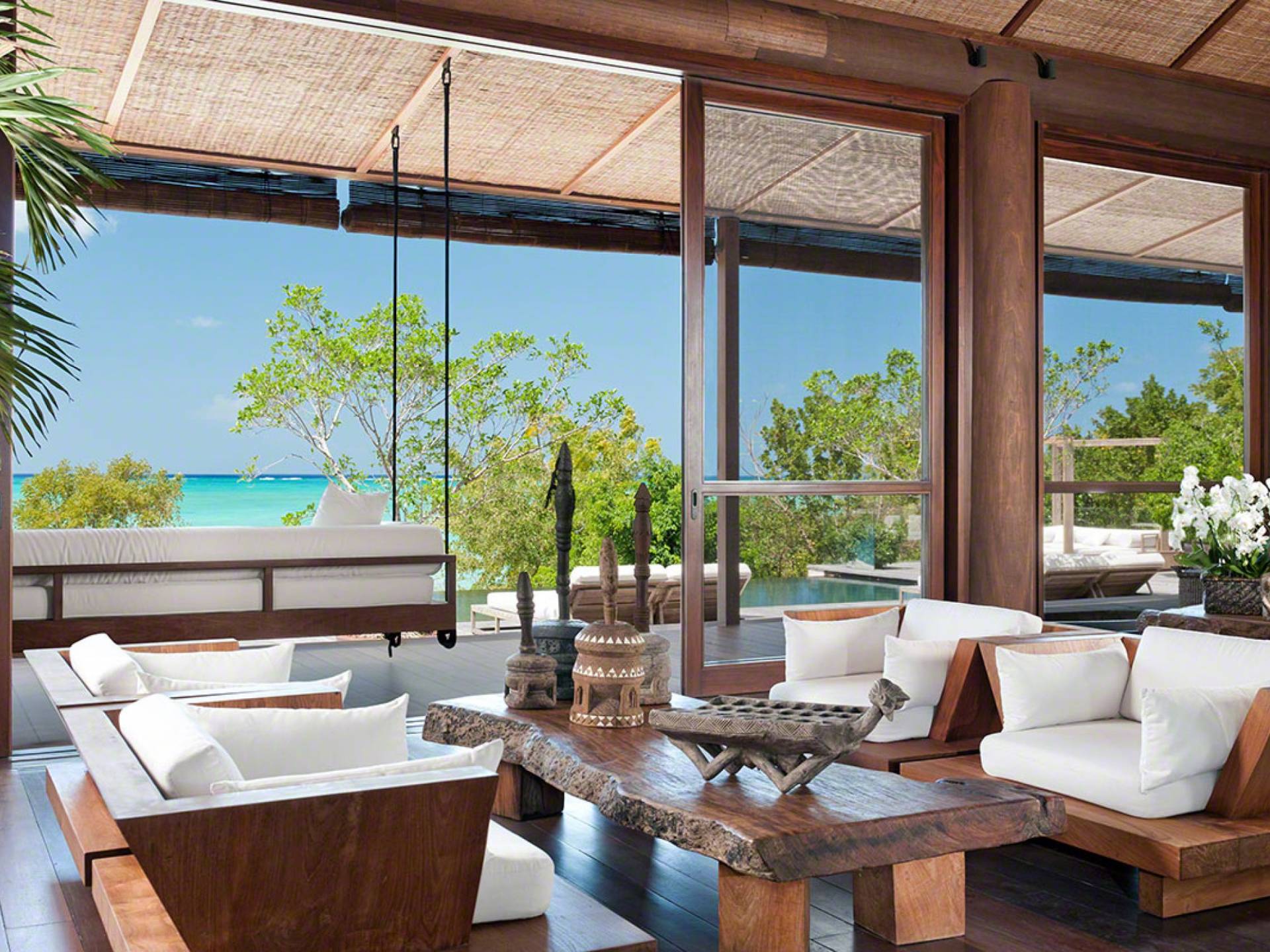 The Sanctuary Estate è il massimo degli affitti di ville caraibiche, che comprende la casa principale con tre camere da letto, più due ville per gli ospiti con quattro camere da letto che possono essere affittate singolarmente o insieme. La proprietà trasuda uno spirito pacifico - il segno distintivo della sua designer d'interni Donna Karan - con interni in legno caldo e fresco calcare, punteggiati di oggetti d'antiquariato dai viaggi globali di Karan.