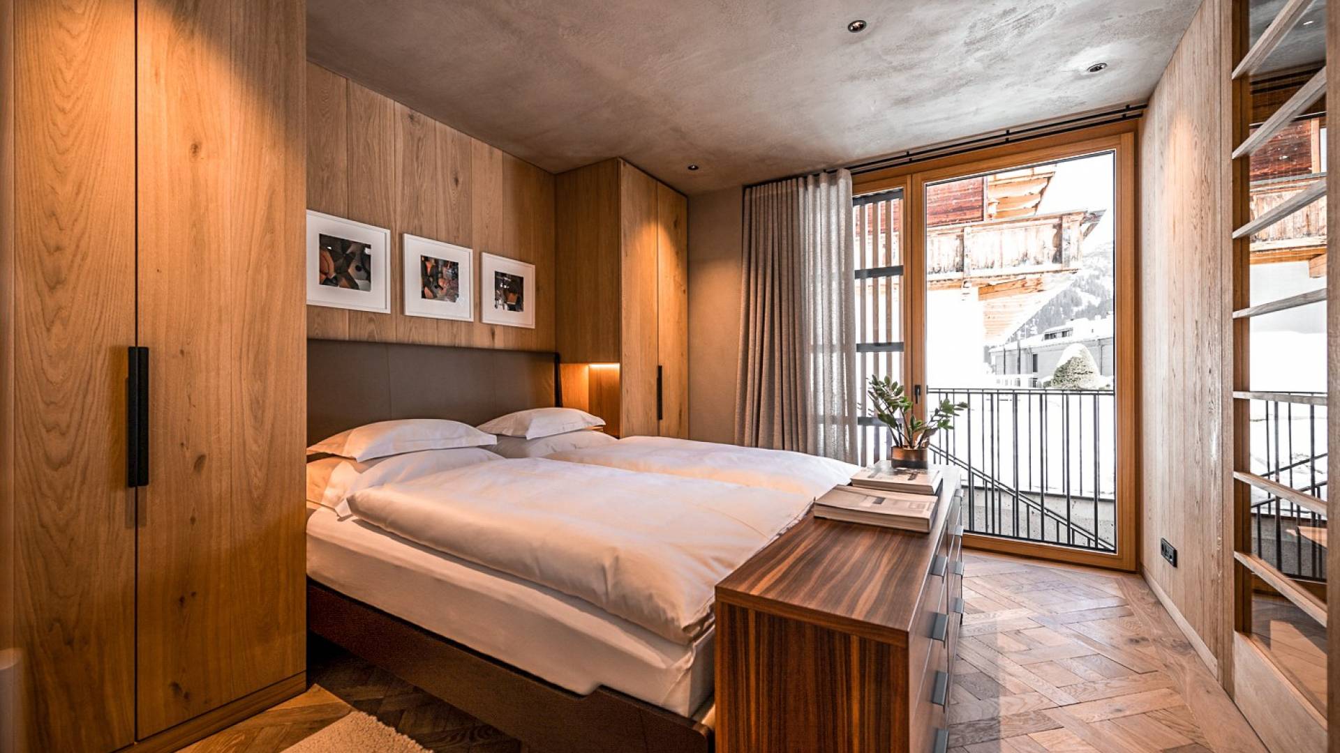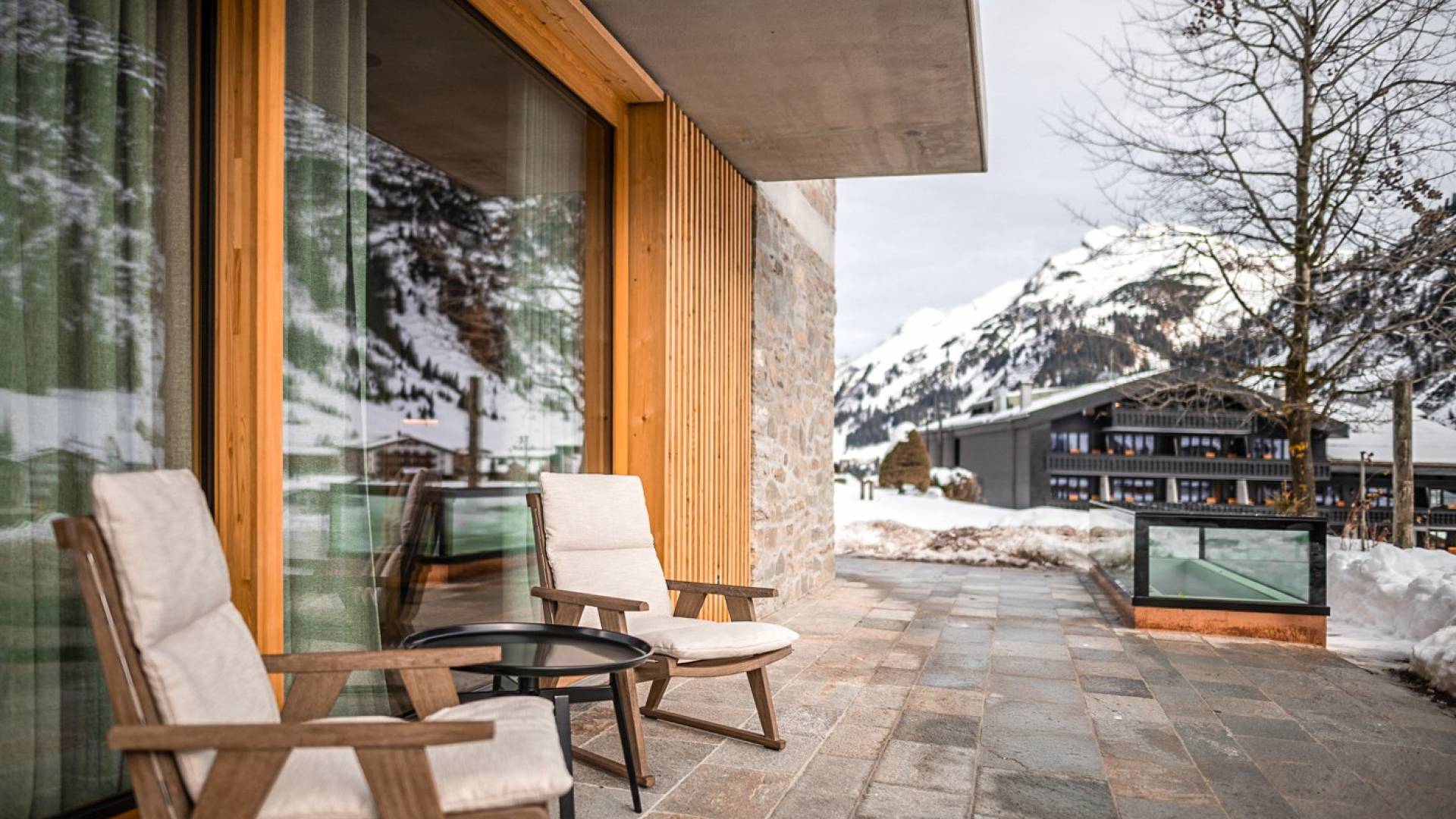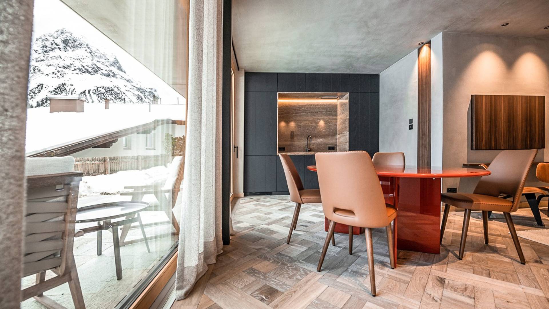 Изысканный современный дизайн интерьера с жилой площадью 65 м² и 2 спальнями с отдельными ванными комнатами. В люксе есть светлая гостиная и столовая, а также просторная терраса с видом на Лех и гору Омесхорн. Гости также могут посещать сауну, паровую баню, комнату отдыха и зал для занятий йогой/фитнесом.