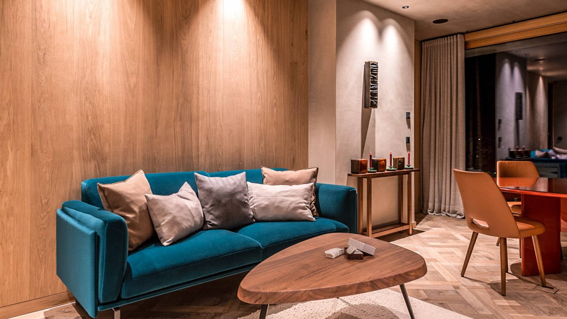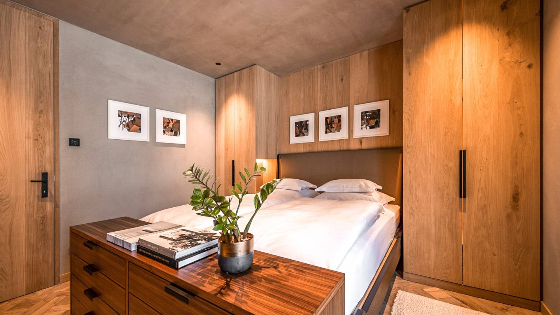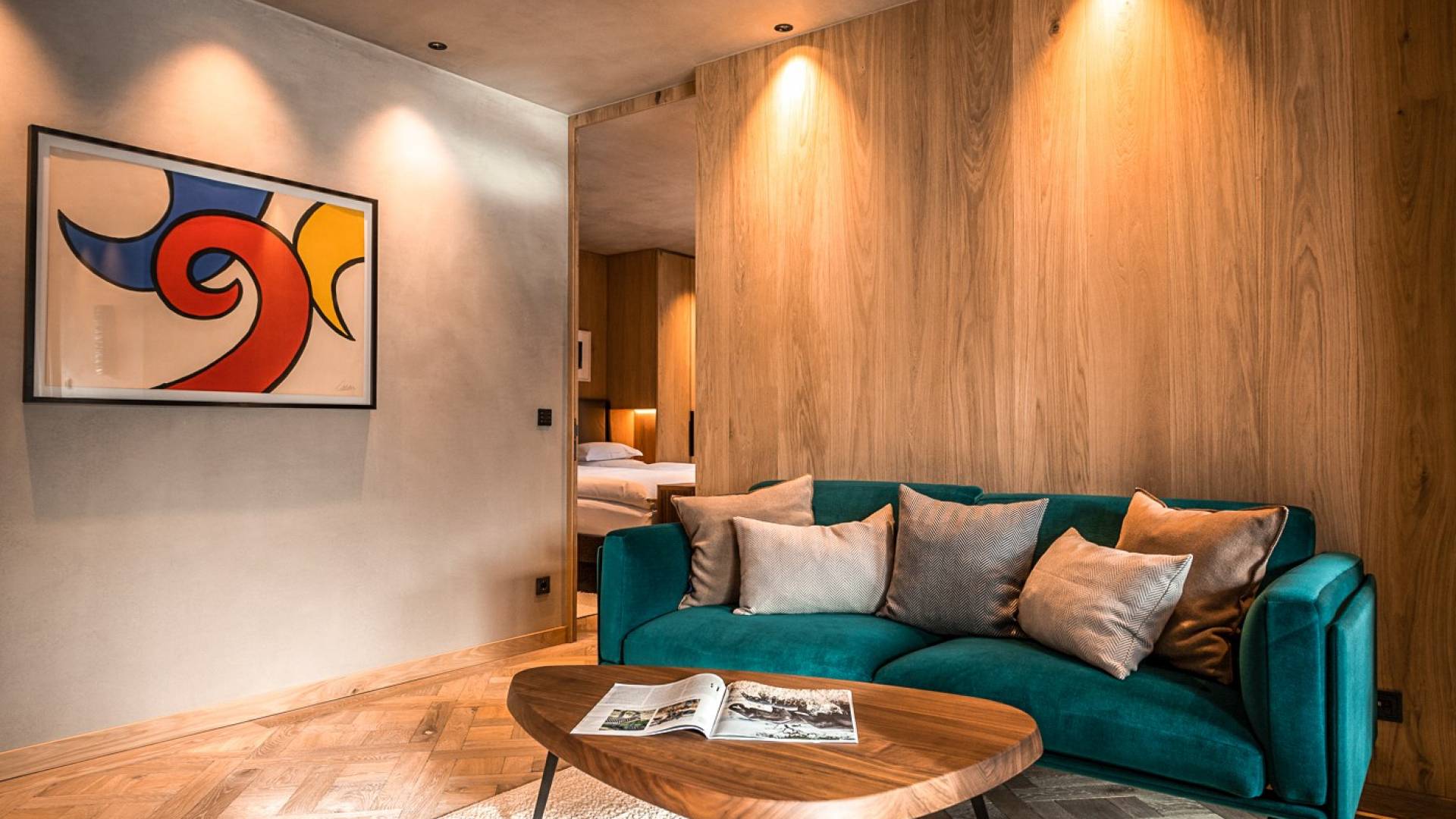 Изысканный современный дизайн интерьера с жилой площадью 65 м² и 2 спальнями с отдельными ванными комнатами. В люксе есть светлая гостиная и столовая, а также просторная терраса с видом на Лех и гору Омесхорн. Гости также могут посещать сауну, паровую баню, комнату отдыха и зал для занятий йогой/фитнесом.