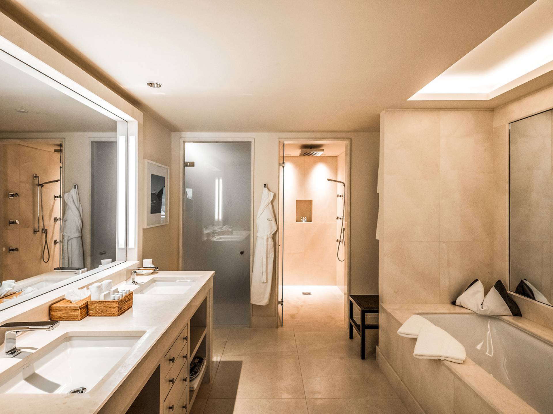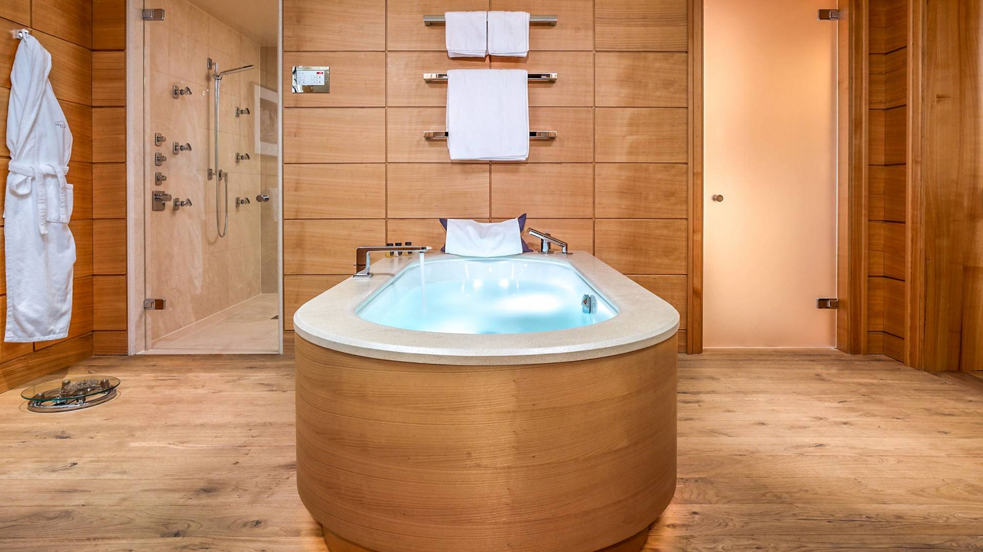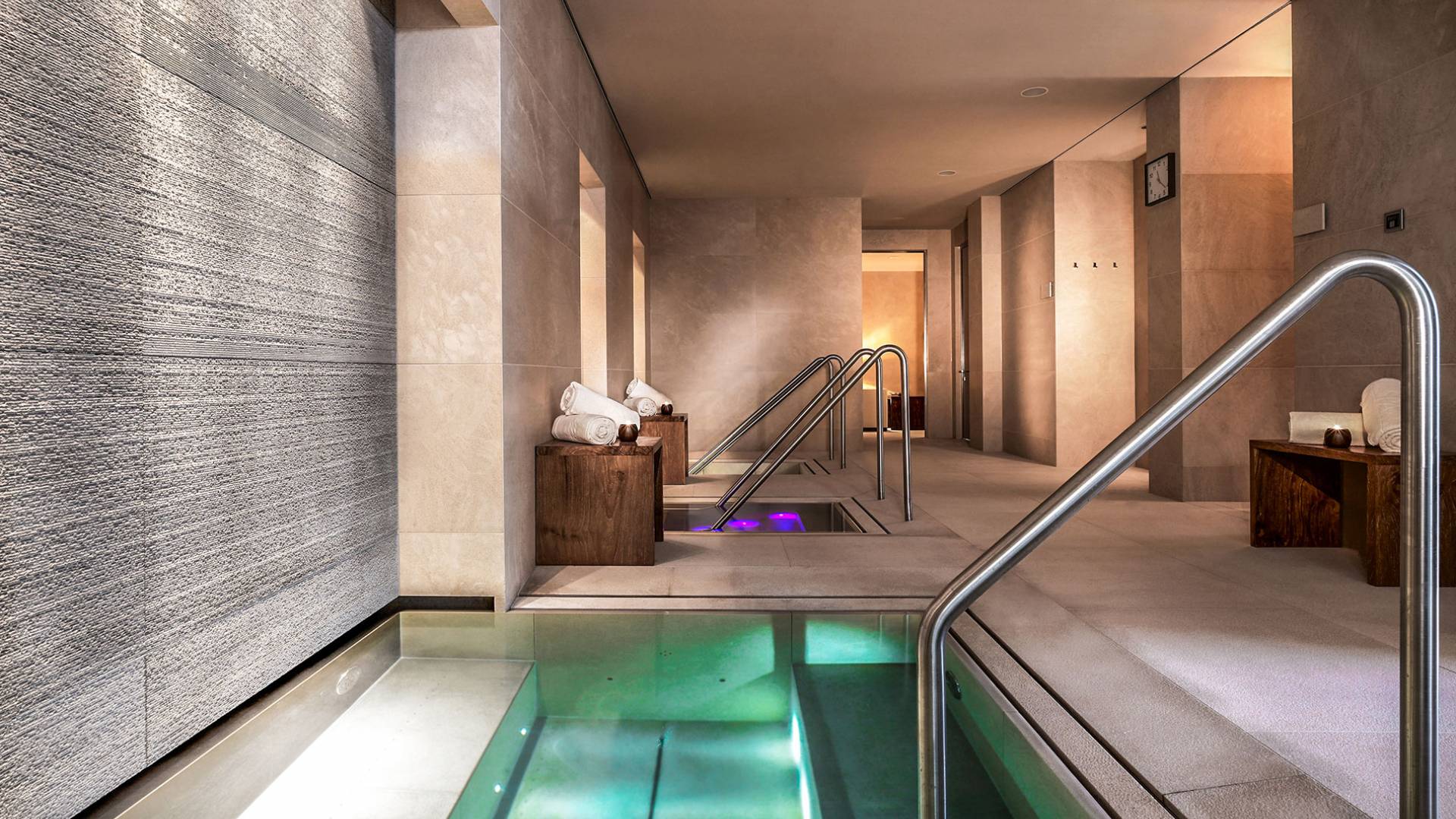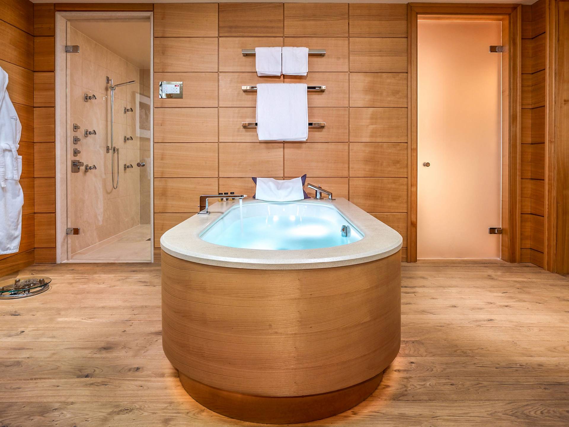 Термальный комплекс включает в себя несколько саун, парные с ароматерапией, ванну с травами и цветами, эмоциональный душ, купель с холодной водой и зону отдыха. Освежающий бар предлагает свежие фрукты, разнообразные сорта чая и полезные закуски. А для обеспечения идеального омолаживающего эффекта спа-салон Aurelio также предлагает спа-процедуры, фитнес-студию с современным оборудованием и личным тренером, крытый бассейн для занятий (длиной 23 метра), а также джакузи, большой термальный бассейн. люкс и тихий уголок для отдыха.
