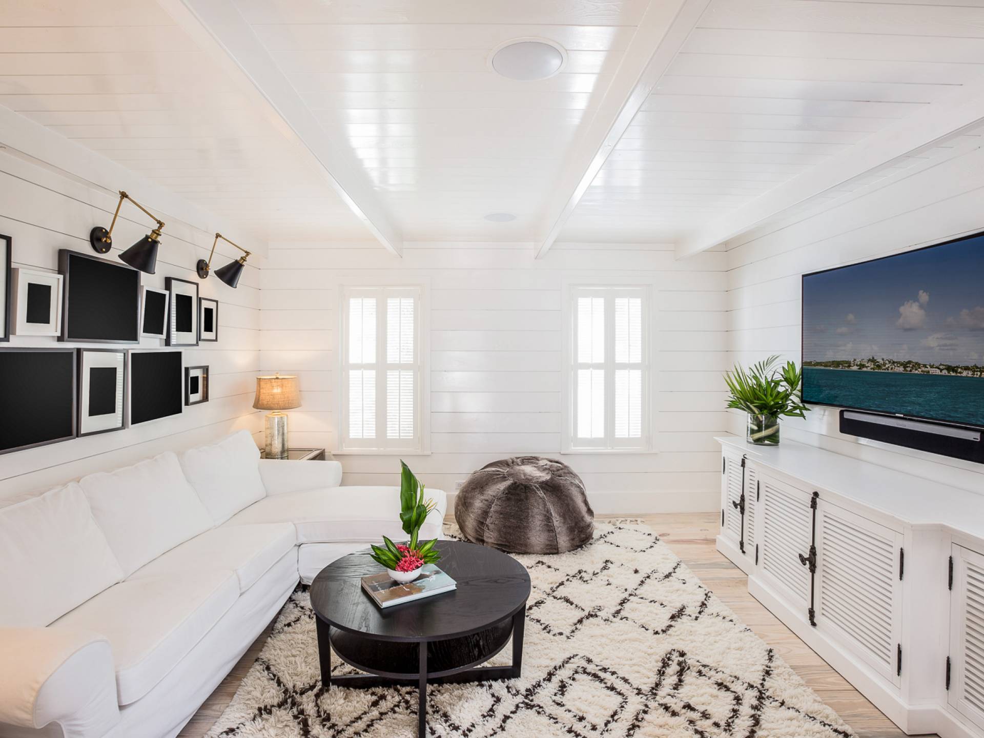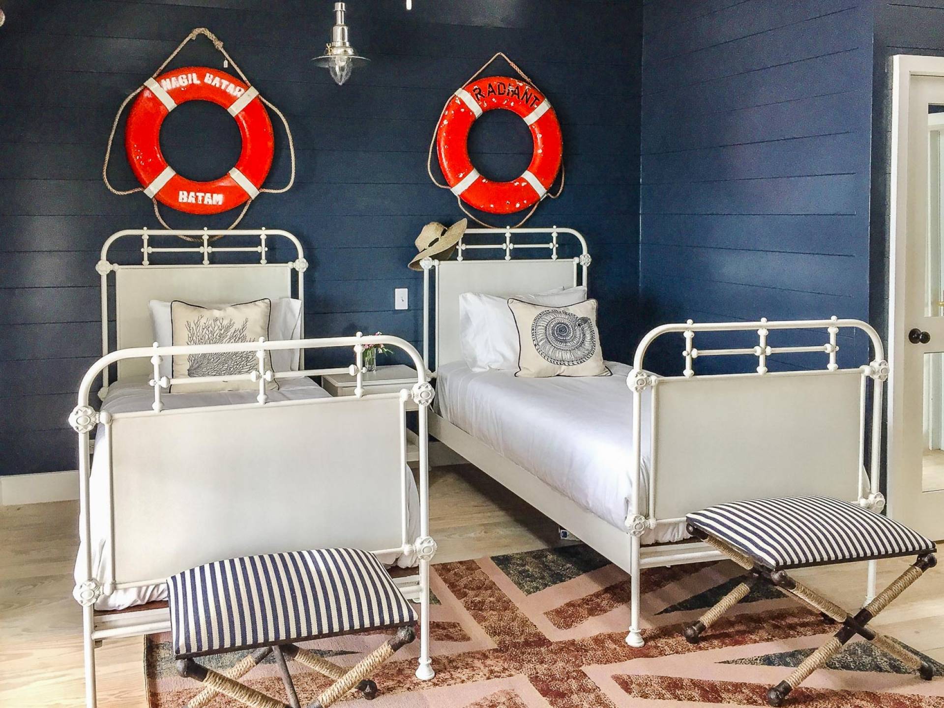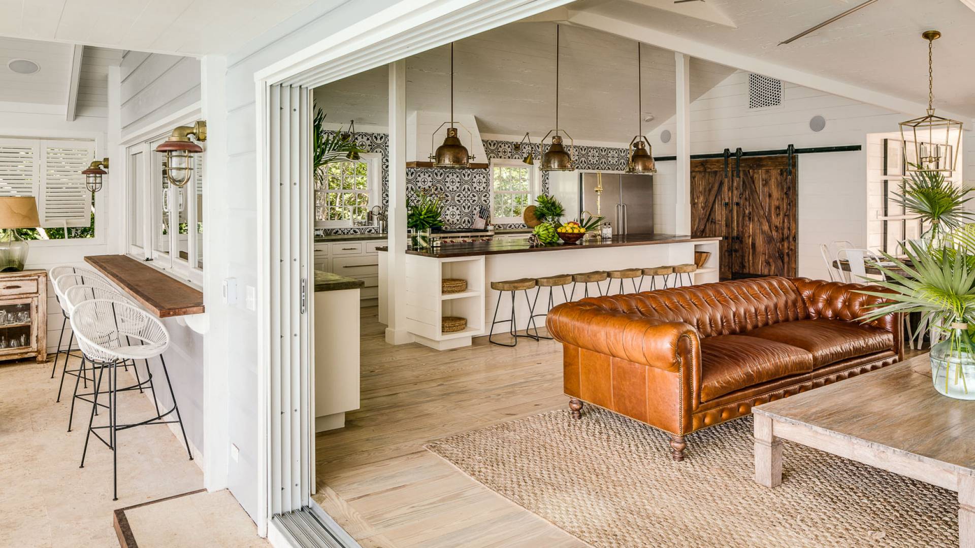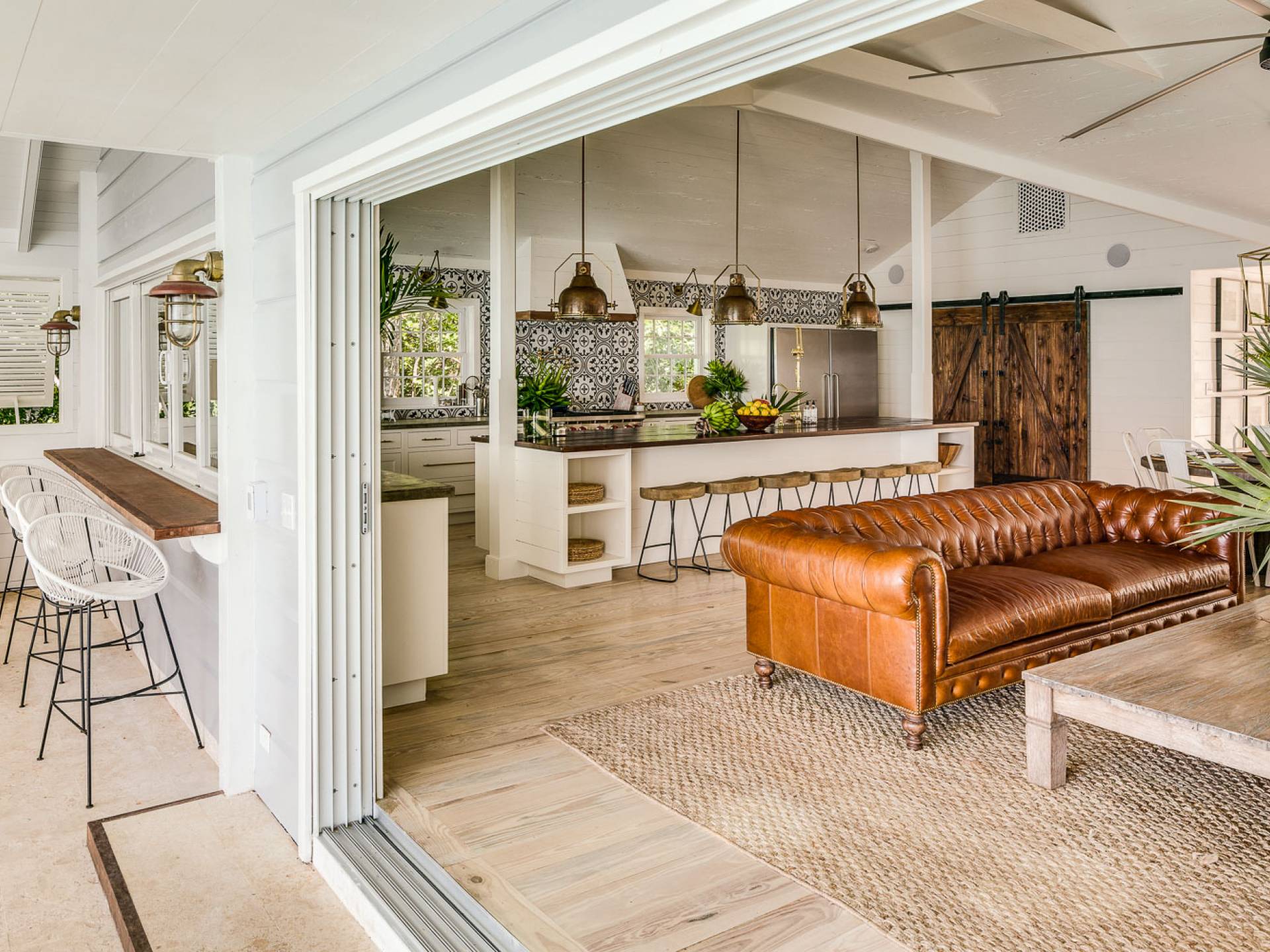 Войдя в King’s View, вы увидите красивый внутренний двор с раскачивающимися кушетками, фонарями Bevolo из Нового Орлеана и прудом с черепахами. Этот оазис ведет прямо в большую большую комнату с изысканной кухней, укомплектованной газовой плитой Wolf, наполнителем для кастрюль, краном Waterstone и многим другим. Два кожаных дивана честерфилд от Roger + Chris по бокам гостиной. За обеденным столом могут разместиться восемь человек, а на четырнадцатифутовом острове, украшенном подлинными утилизированными корабельными огнями, могут разместиться еще шесть человек.