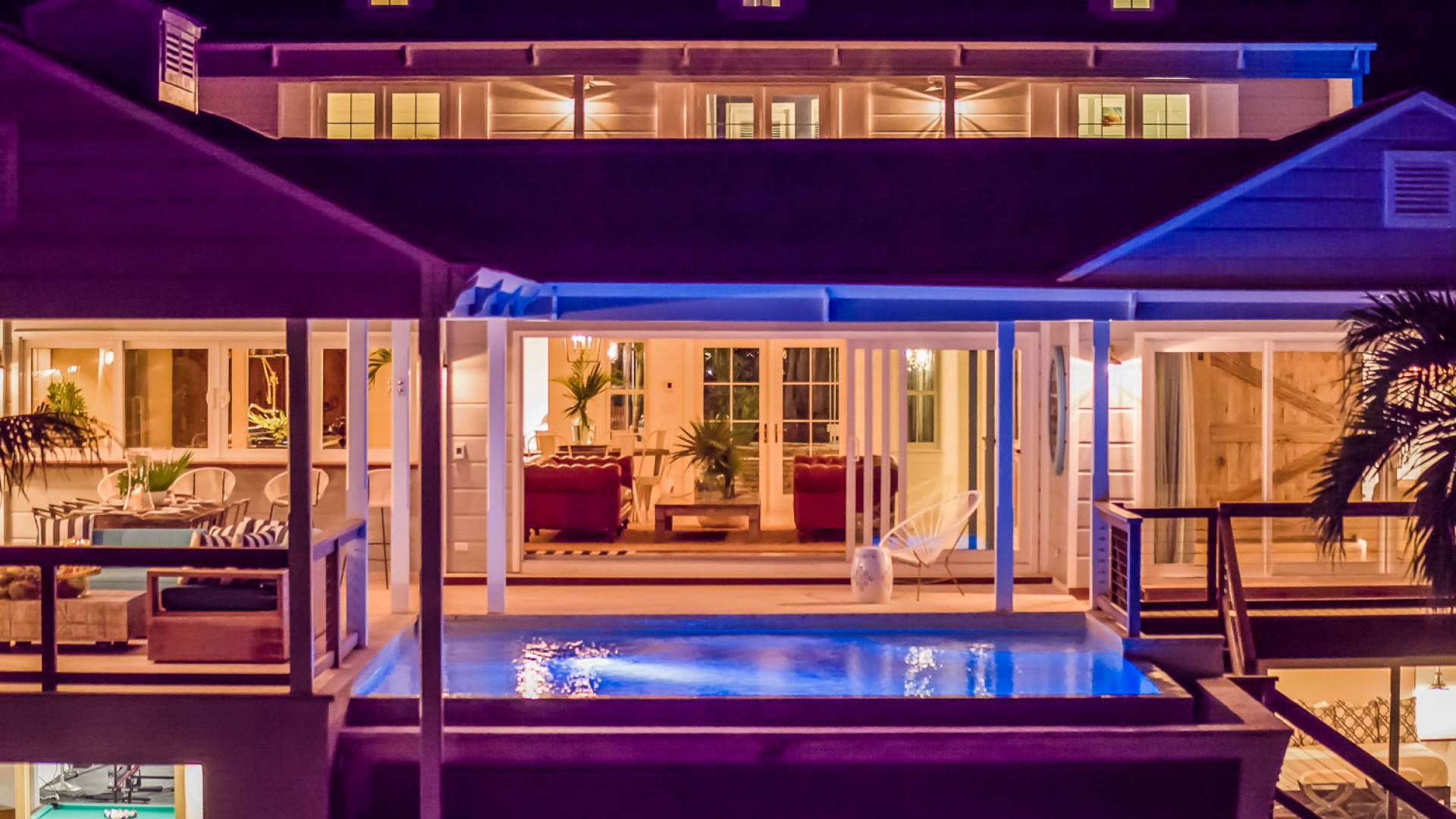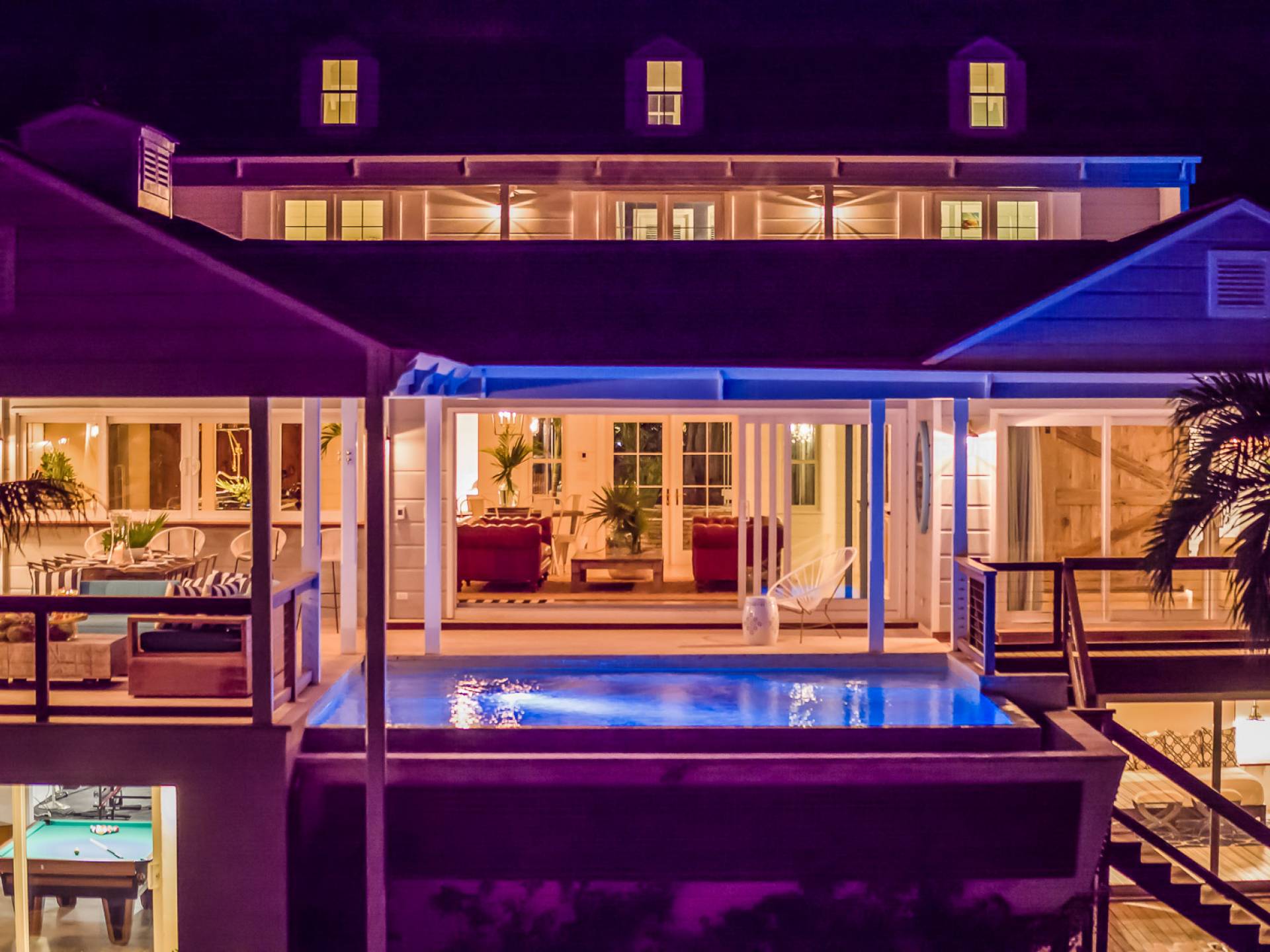 Большой дом с восемью спальнями занимает площадь около 6500 квадратных футов (с кондиционером) внутри и 2000 квадратных футов снаружи. Он предлагает своим гостям безупречное сочетание внутренней и внешней жизни в лучшем виде. В этом недавно построенном доме, построенном его владельцами как «труд любви», каждая деталь была тщательно продумана. Это архитектура в багамском стиле со стенами, покрытыми корабликами, и остроконечными потолками из кипарисов. Этот частный дом может похвастаться непревзойденным фоном для закрытого сада с пальмами, который выходит прямо на частный пляж.