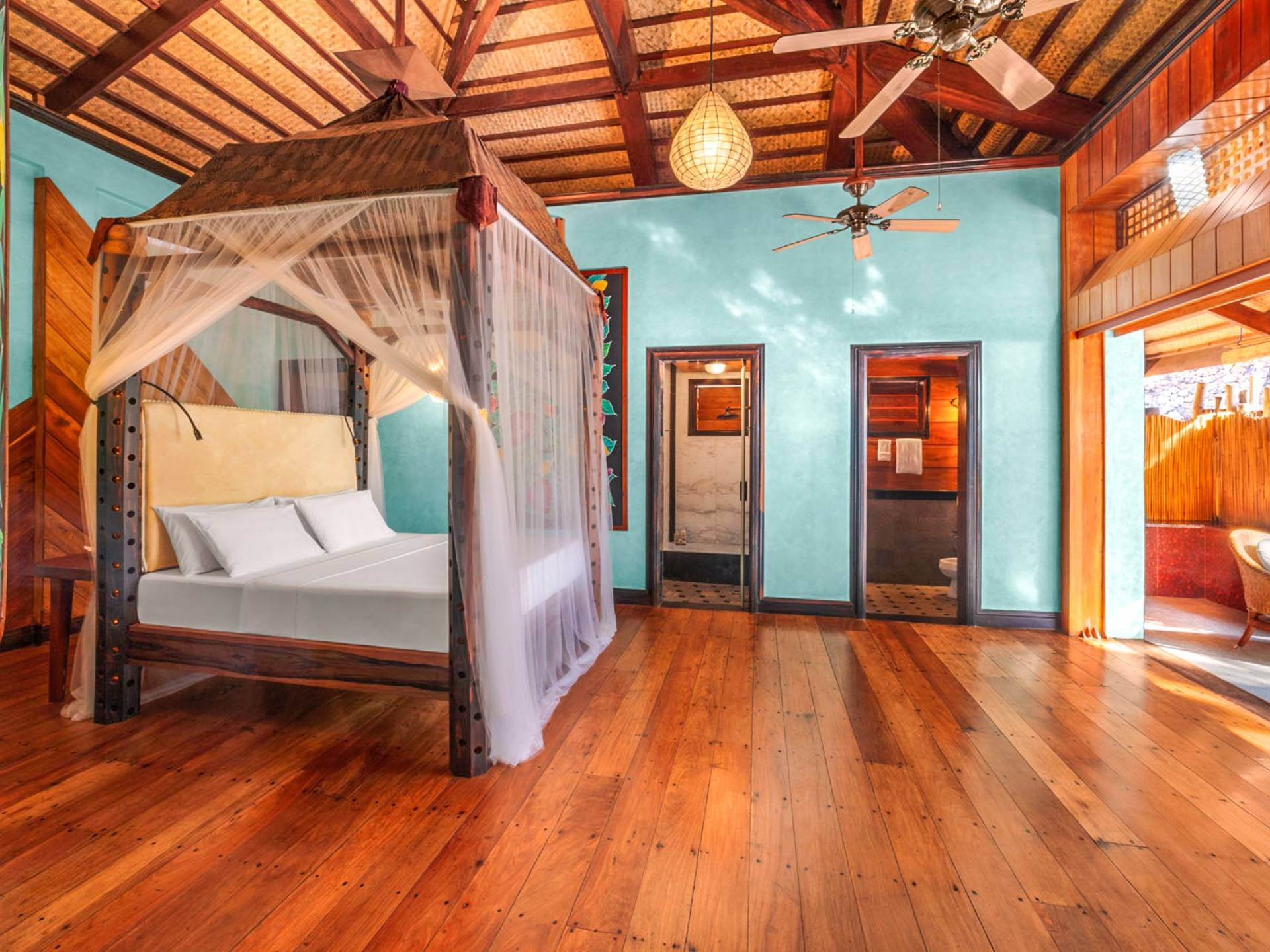 Этот гостевой люкс на частном острове НоаНоа занимает площадь 58 квадратных метров с прекрасными удобствами. Из этого красивого люкса открывается вид на лучшие закаты в регионе Палаван. Гости NoaNoa могут выбрать ценовой диапазон, соответствующий их планам на отпуск. Гостям всегда грустно расставаться. Отсюда открывается потрясающий вид на риф. Также есть красивая ванная комната и большая белая двуспальная кровать. Он романтичный и хорошо оборудованный.