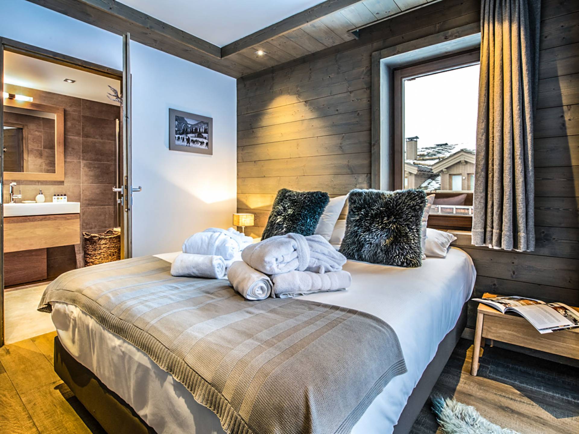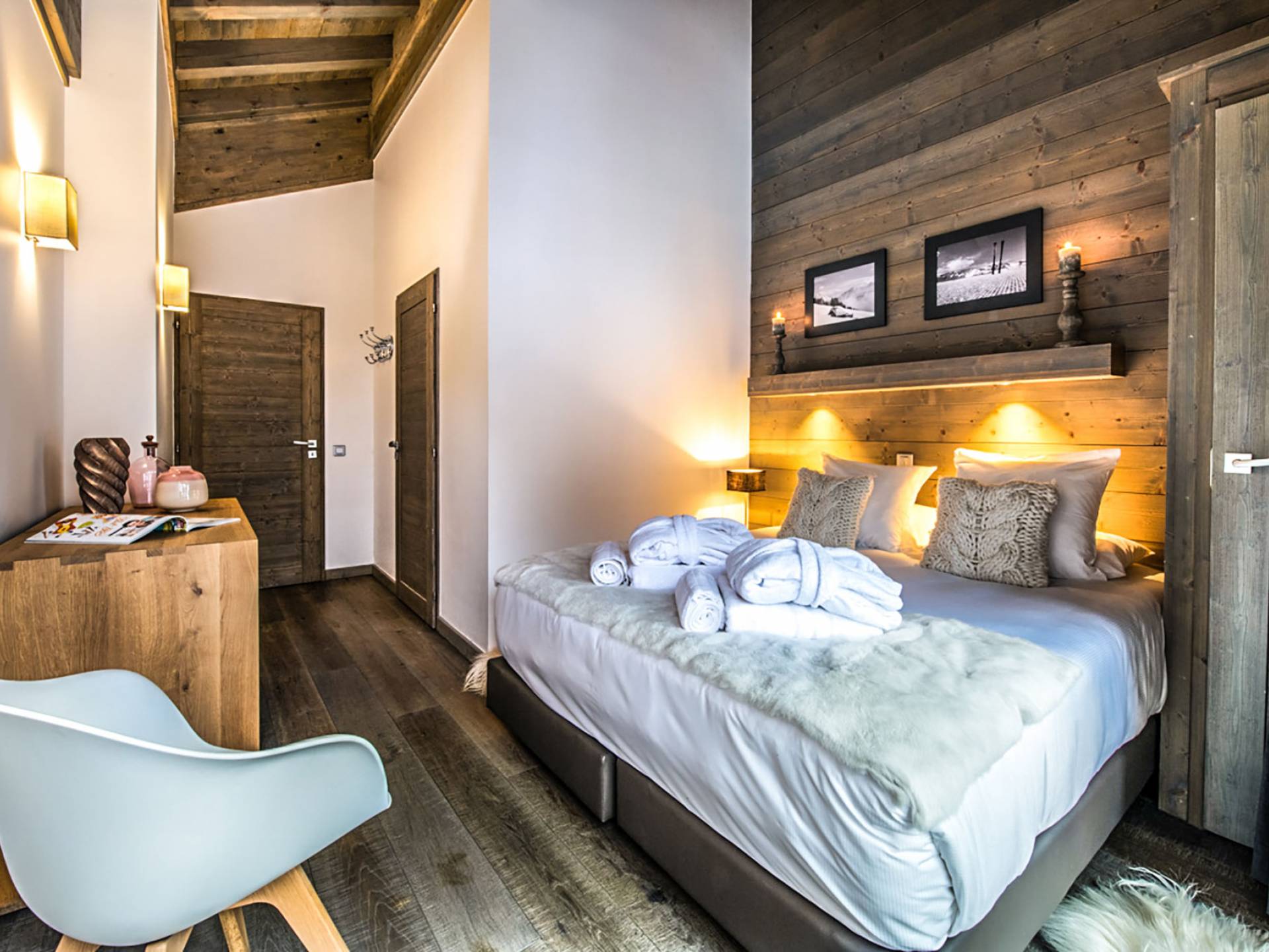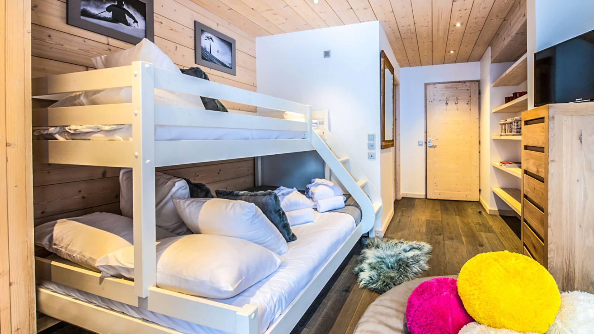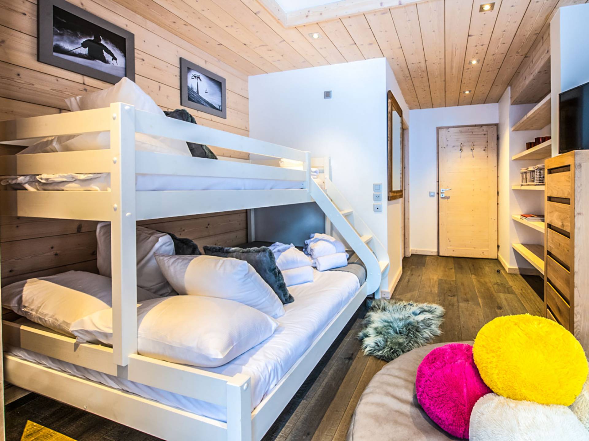 В этих апартаментах есть большая спальня с двуспальной кроватью, гардеробная и уголок для чтения, вторая спальня с двуспальной кроватью, две спальни с двумя односпальными кроватями (возможна двуспальная кровать по запросу) и спальня с односпальной кроватью. , и двухъярусная кровать, идеально подходящая для всей семьи. Во всех спальнях есть ванные комнаты. В просторной гостиной с телевизором и камином также есть обеденная зона, полностью оборудованная кухня и балкон с панорамным видом на горы. Во время отпуска вы можете воспользоваться парковочным местом на частной автостоянке, помещением для хранения лыж и доступом к Wi-Fi.