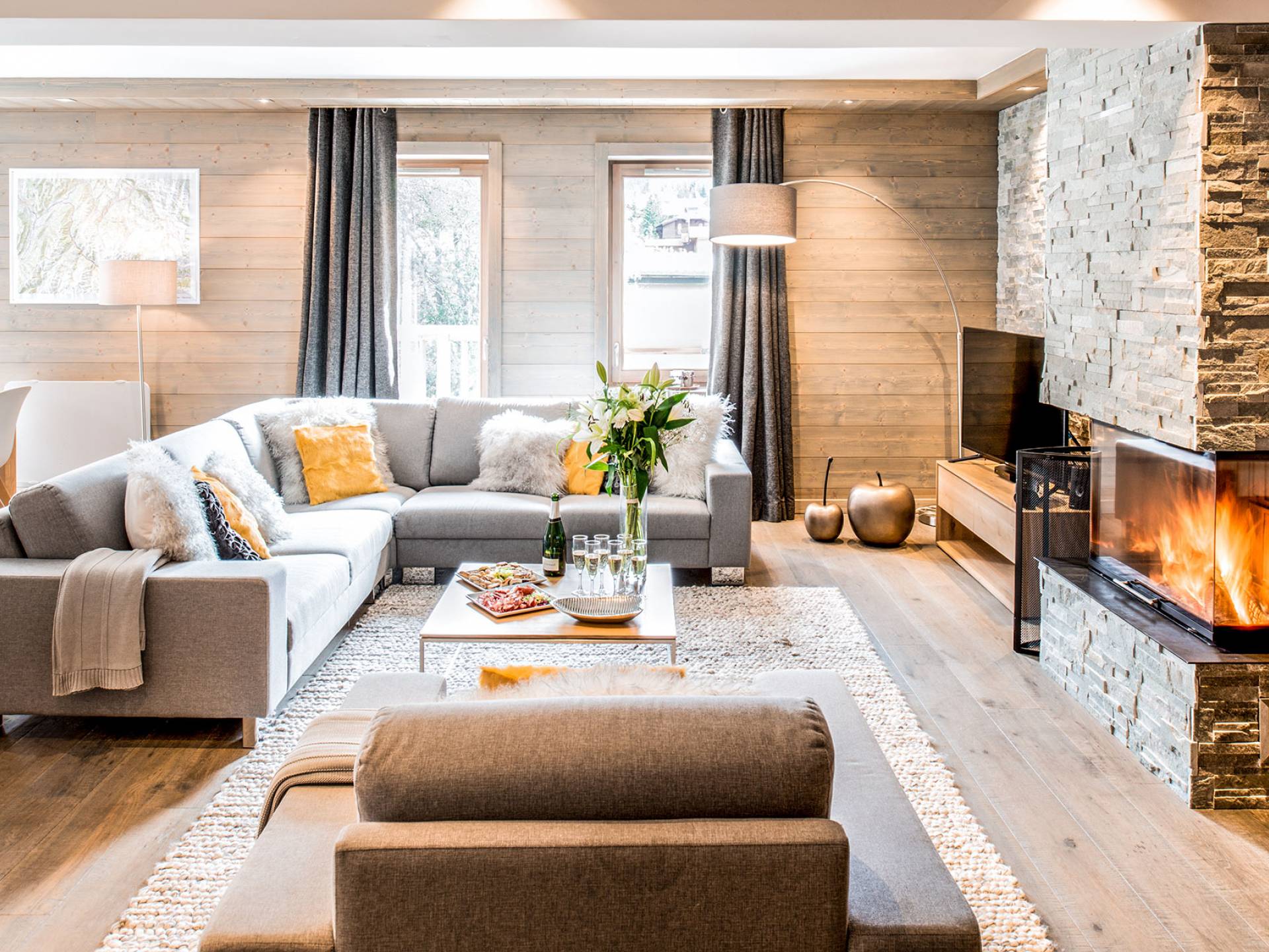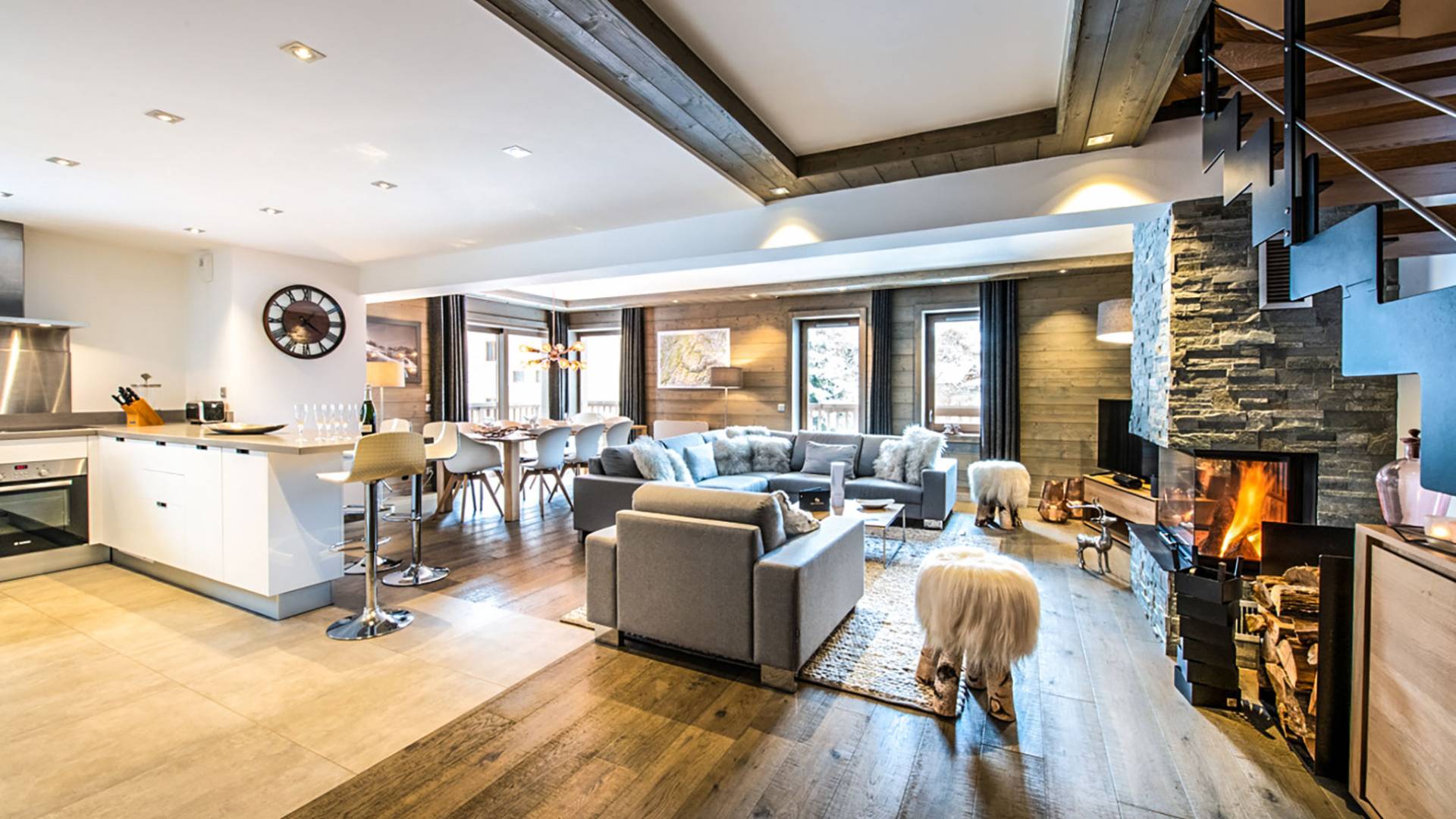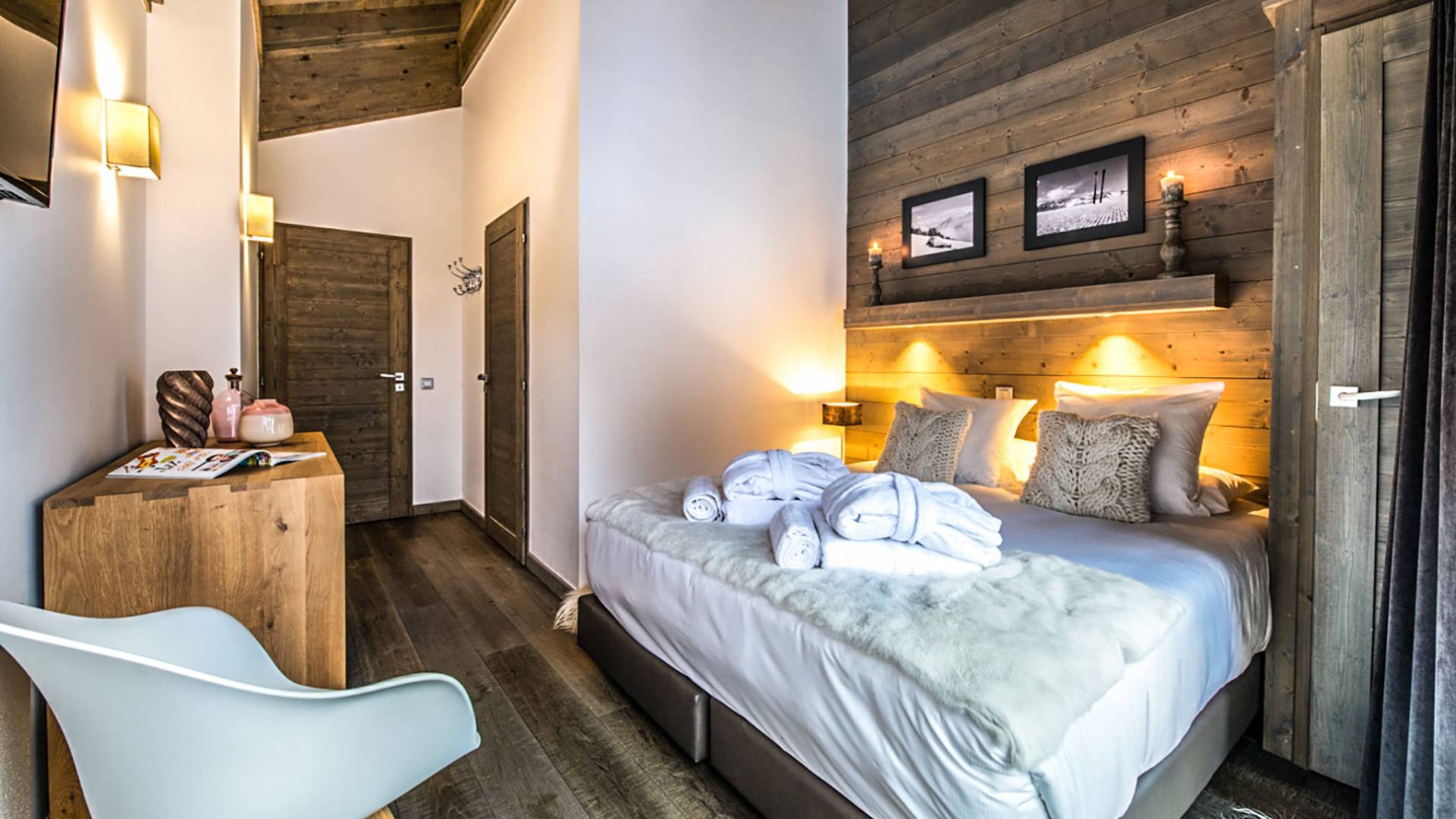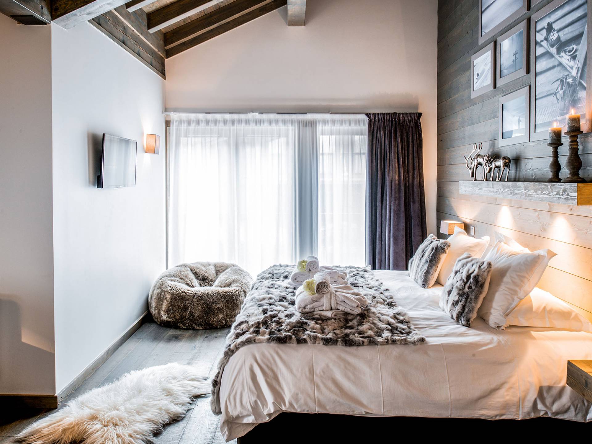 В этих апартаментах есть большая спальня с двуспальной кроватью, гардеробная и уголок для чтения, вторая спальня с двуспальной кроватью, две спальни с двумя односпальными кроватями (возможна двуспальная кровать по запросу) и спальня с односпальной кроватью. , и двухъярусная кровать, идеально подходящая для всей семьи. Во всех спальнях есть ванные комнаты. В просторной гостиной с телевизором и камином также есть обеденная зона, полностью оборудованная кухня и балкон с панорамным видом на горы. Во время отпуска вы можете воспользоваться парковочным местом на частной автостоянке, помещением для хранения лыж и доступом к Wi-Fi.