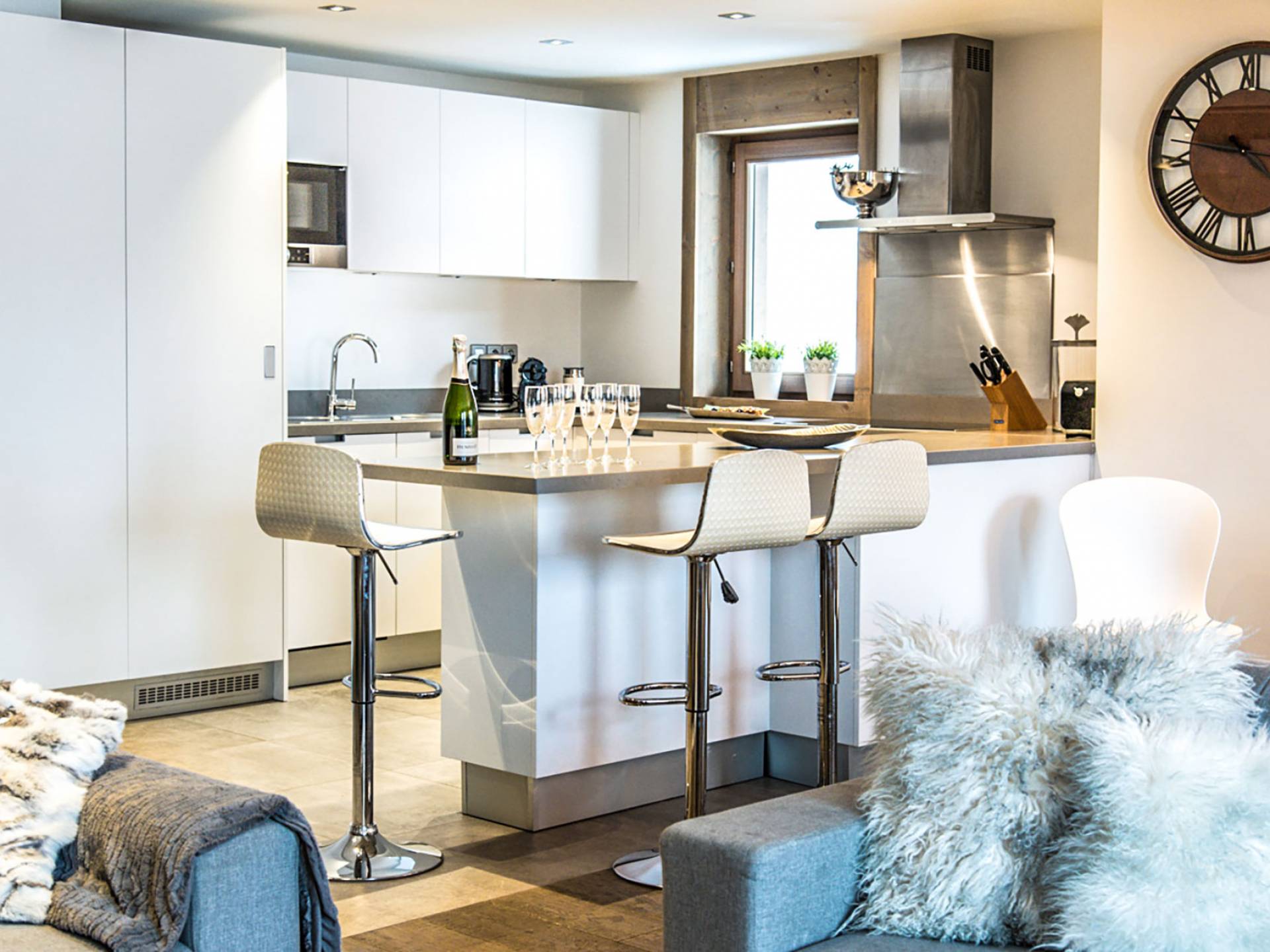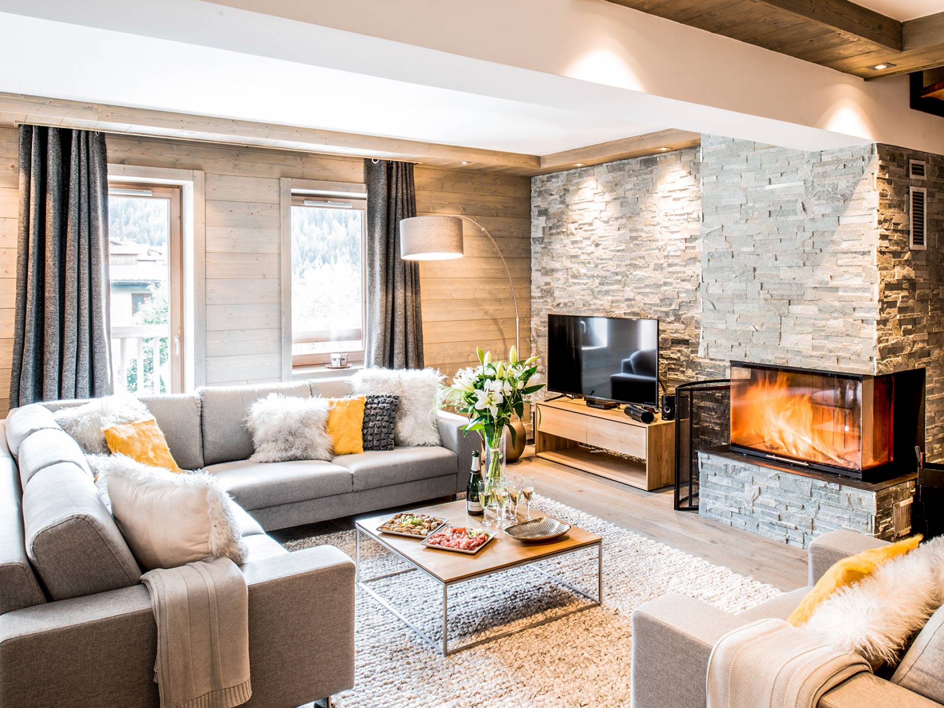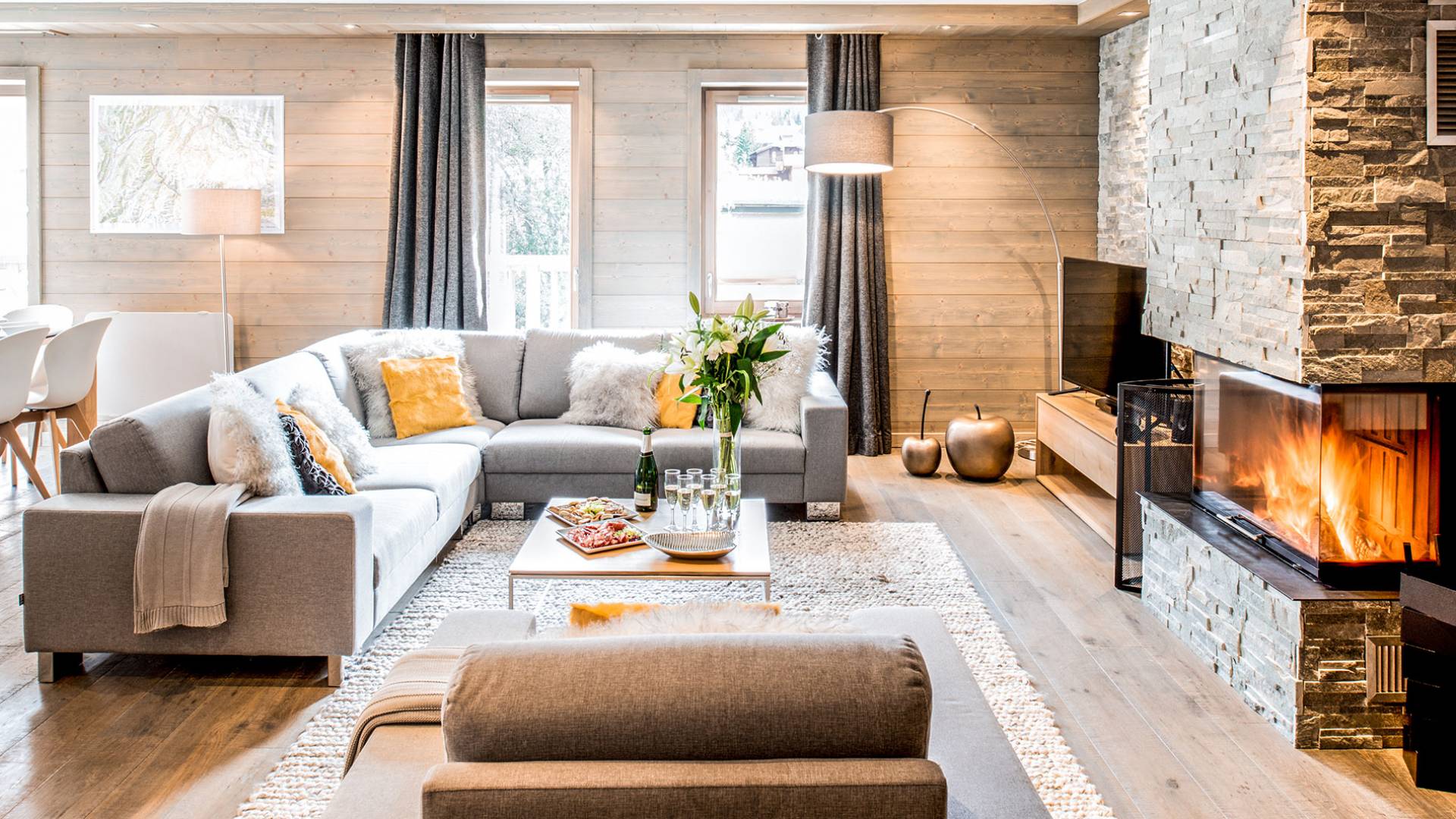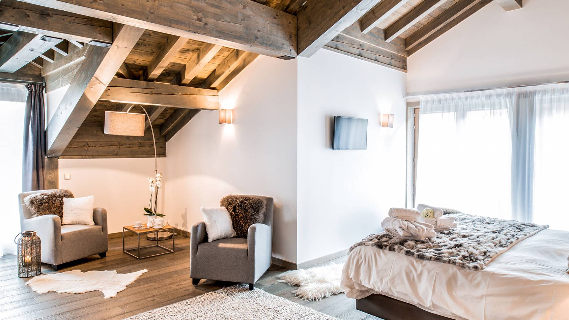 В этих апартаментах есть большая спальня с двуспальной кроватью, гардеробная и уголок для чтения, вторая спальня с двуспальной кроватью, две спальни с двумя односпальными кроватями (возможна двуспальная кровать по запросу) и спальня с односпальной кроватью. , и двухъярусная кровать, идеально подходящая для всей семьи. Во всех спальнях есть ванные комнаты. В просторной гостиной с телевизором и камином также есть обеденная зона, полностью оборудованная кухня и балкон с панорамным видом на горы. Во время отпуска вы можете воспользоваться парковочным местом на частной автостоянке, помещением для хранения лыж и доступом к Wi-Fi.