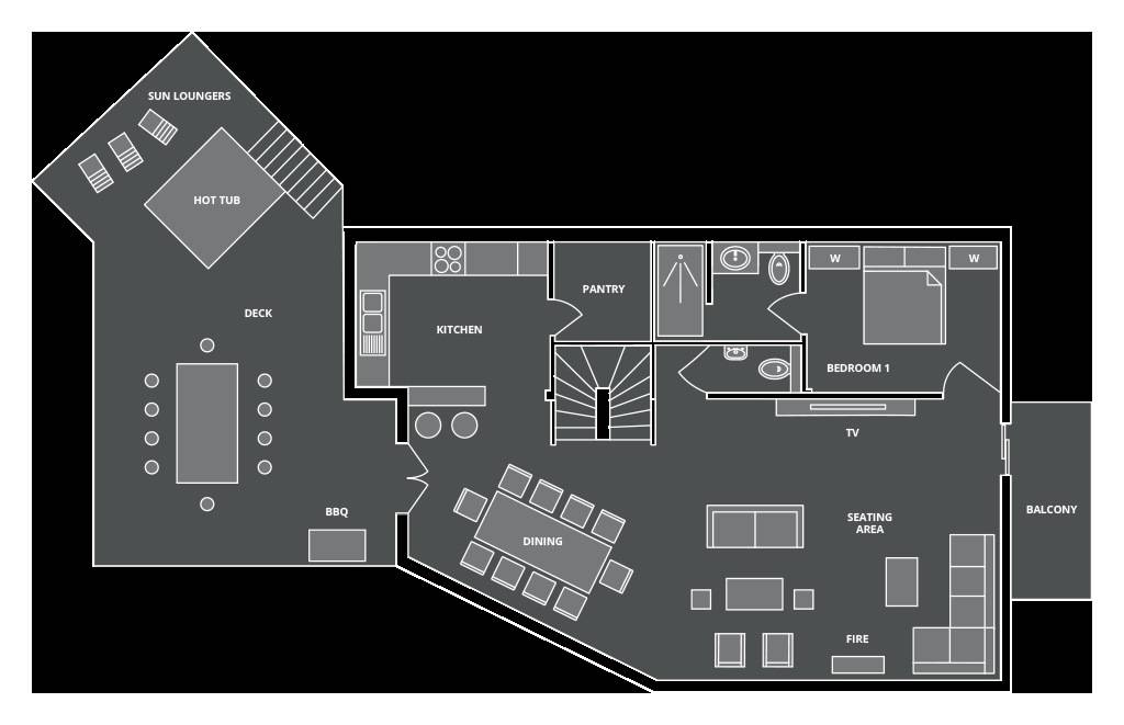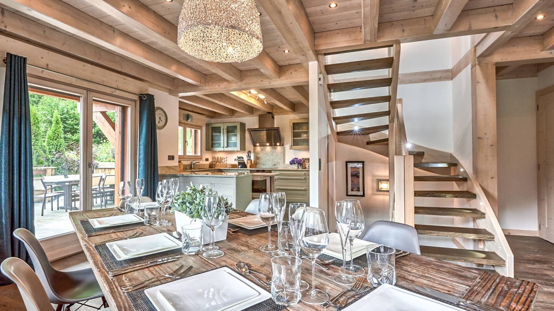 Второй этаж - это большая гостиная и обеденная зона открытой планировки, откуда открывается захватывающий вид из панорамных окон и французских дверей, выходящих на долину. Две зоны отдыха предоставляют достаточно места для всех, чтобы расслабиться, погреться у камина или посмотреть что-нибудь на большом телевизоре. Шале со звуковой системой SONOS © и кухней-столовой открытой планировки идеально подходит для развлечений. Вы можете использовать iPad в шале, а также камеру GoPro, которую можно взять с собой в гору. Кухня прекрасно оборудована большой кладовой, винными холодильниками и двумя духовками, а это значит, что независимо от того, занимаетесь ли вы самообслуживанием или нанимаете шеф-повара Hunter Chalets для приготовления блюд, все будет обслужено.
