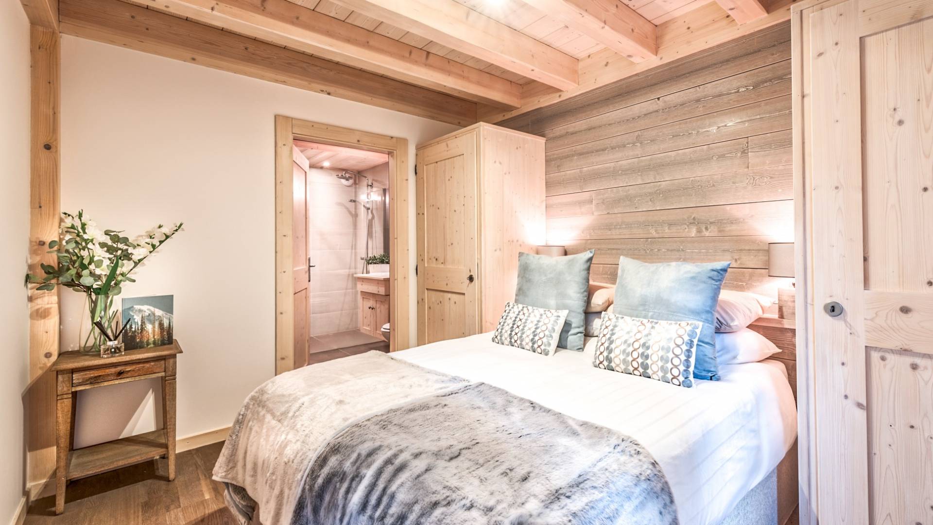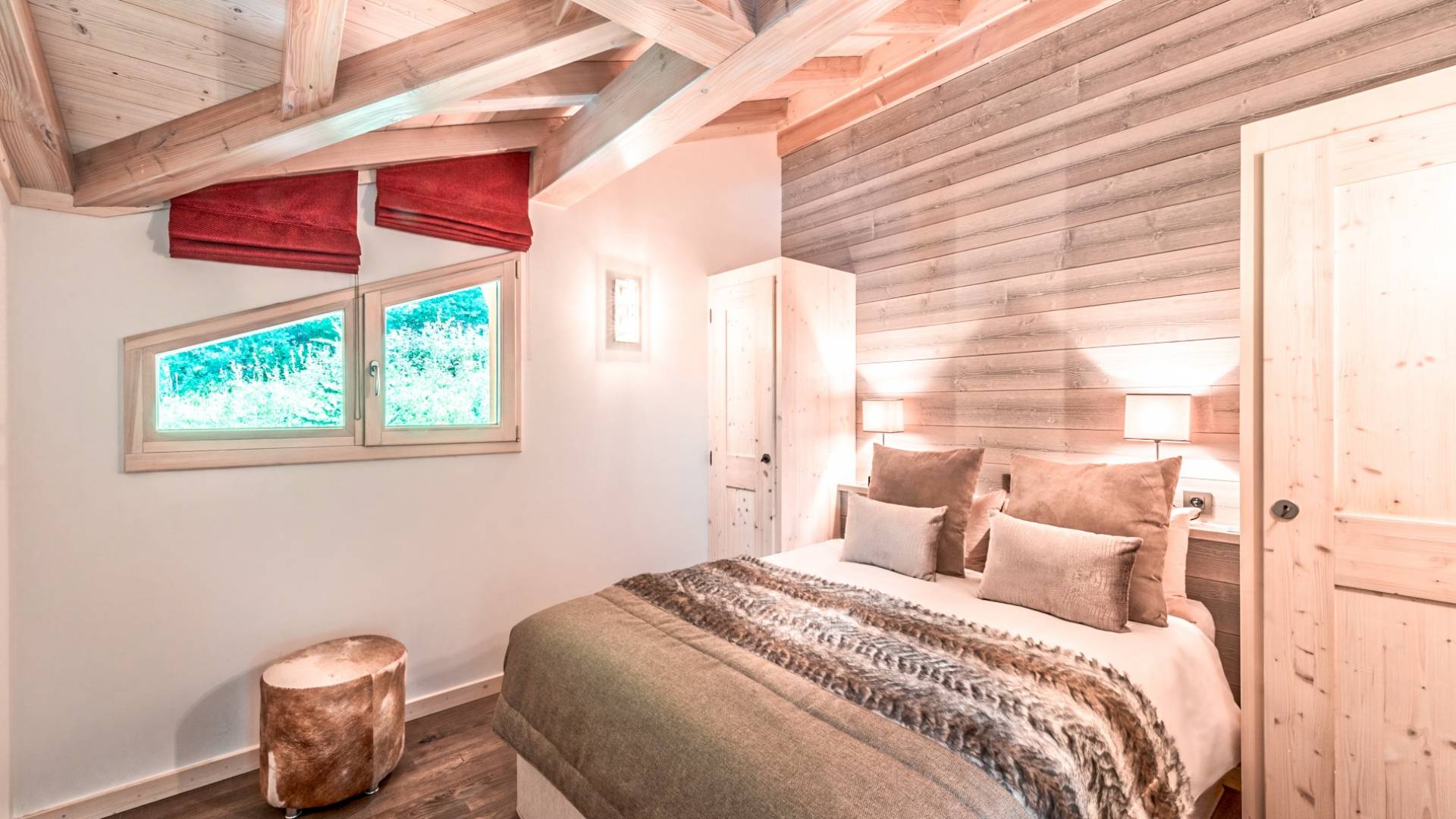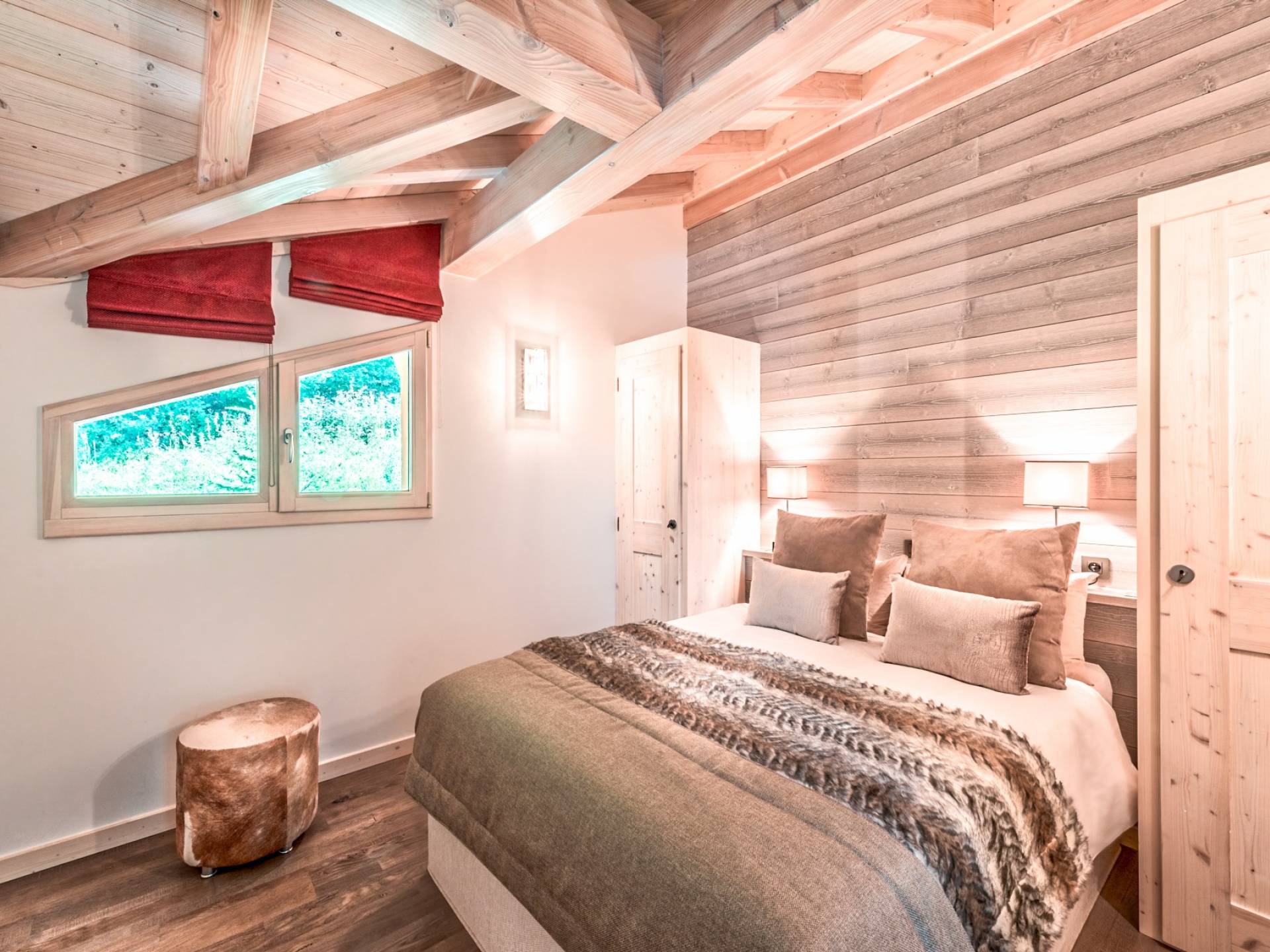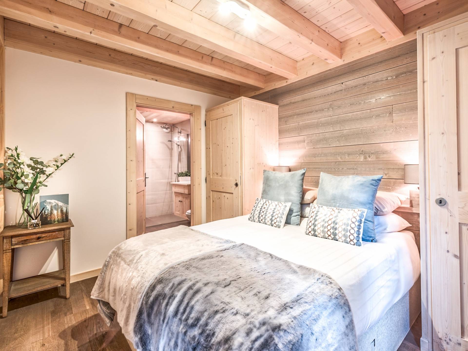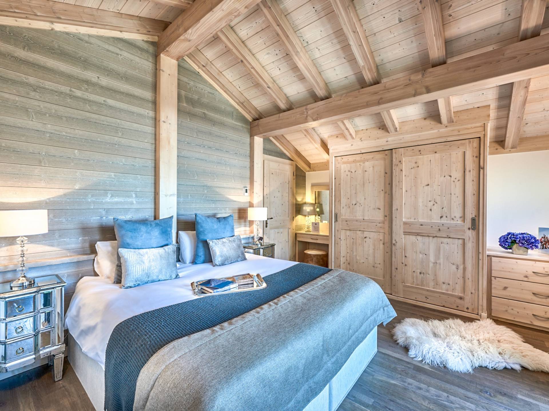 На верхнем уровне шале расположены еще четыре спальни. В главной спальне есть большой балкон и французские окна, что означает, что гости могут наслаждаться прекрасным видом на горнолыжные склоны и деревню Морзин, не вставая с постели. Две спальни, из которых также открывается вид на долину, имеют общую очень большую ванную комнату. Обе спальни имеют выход на балконы и отличное место для хранения вещей. Из третьей спальни с ванной комнатой открывается вид на сад и террасу внизу. Все спальни могут быть сконфигурированы как двухместные или двухместные.