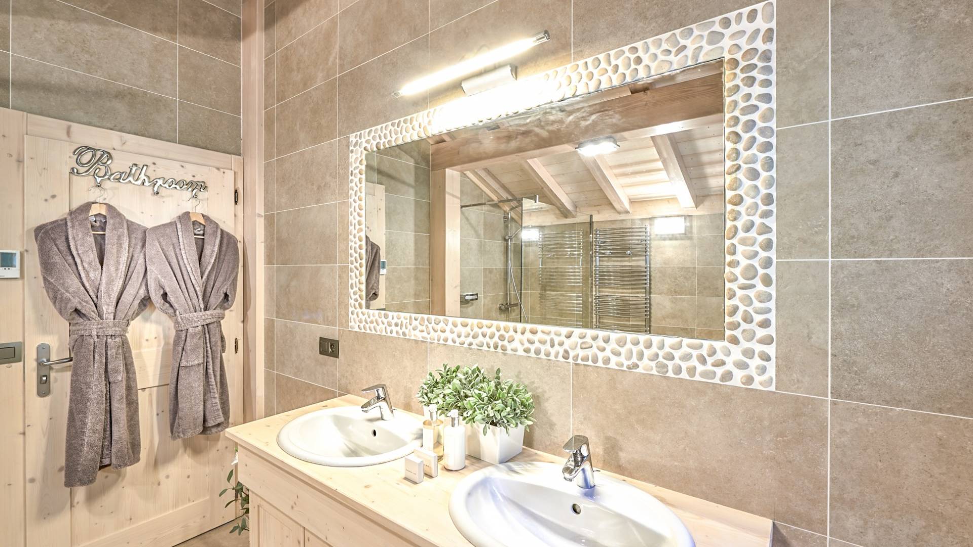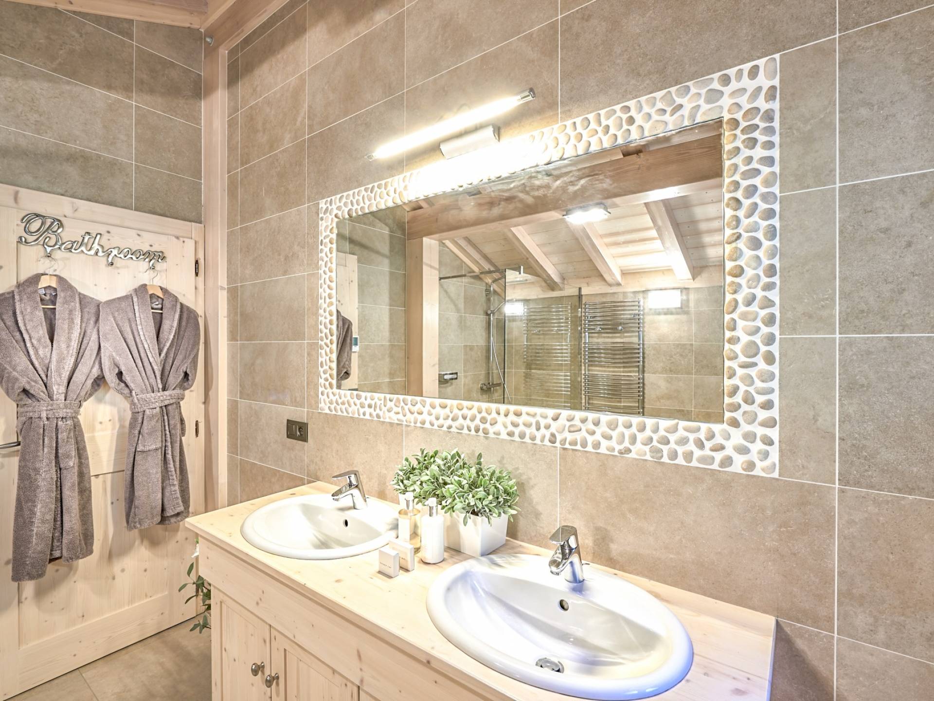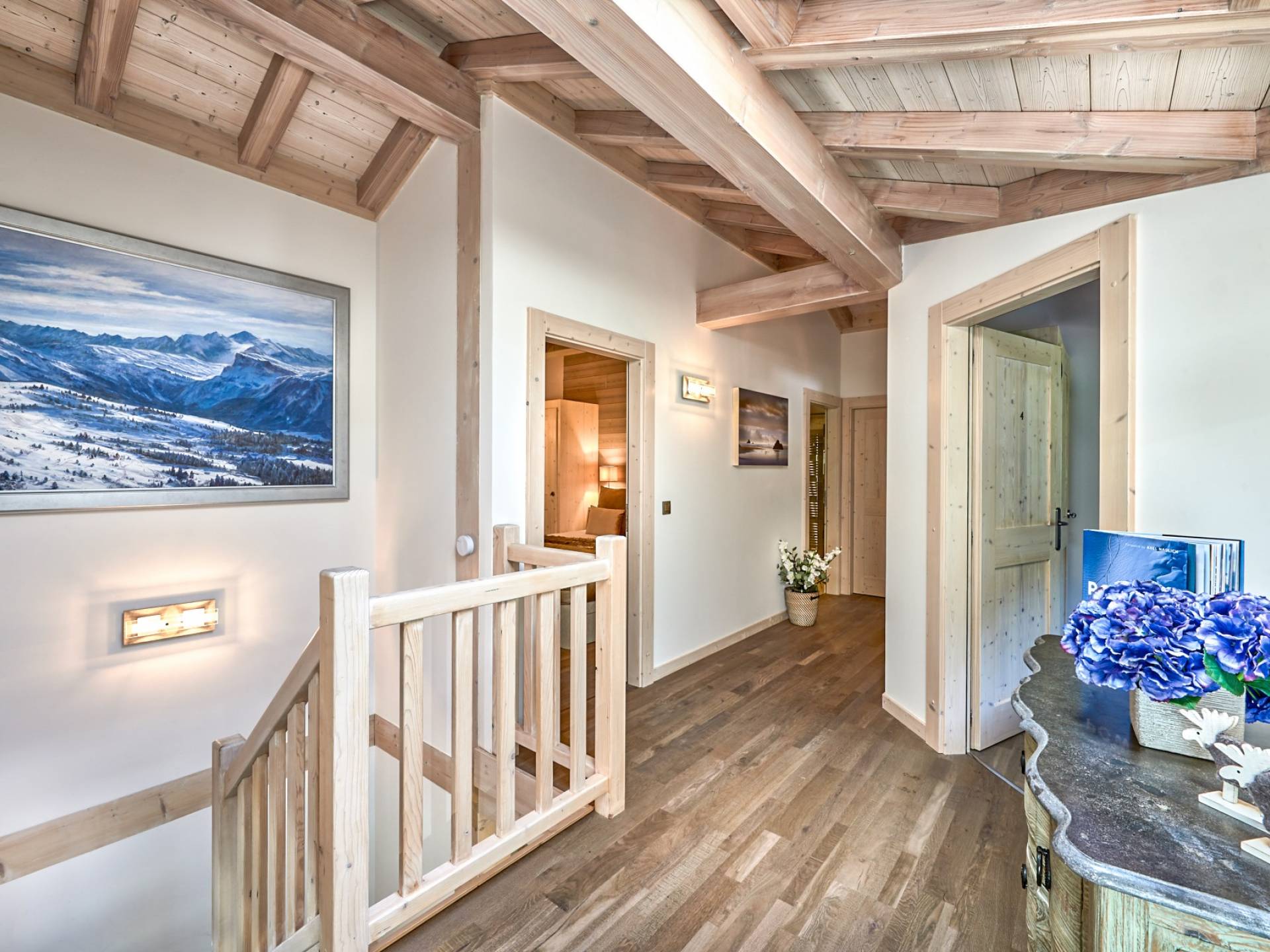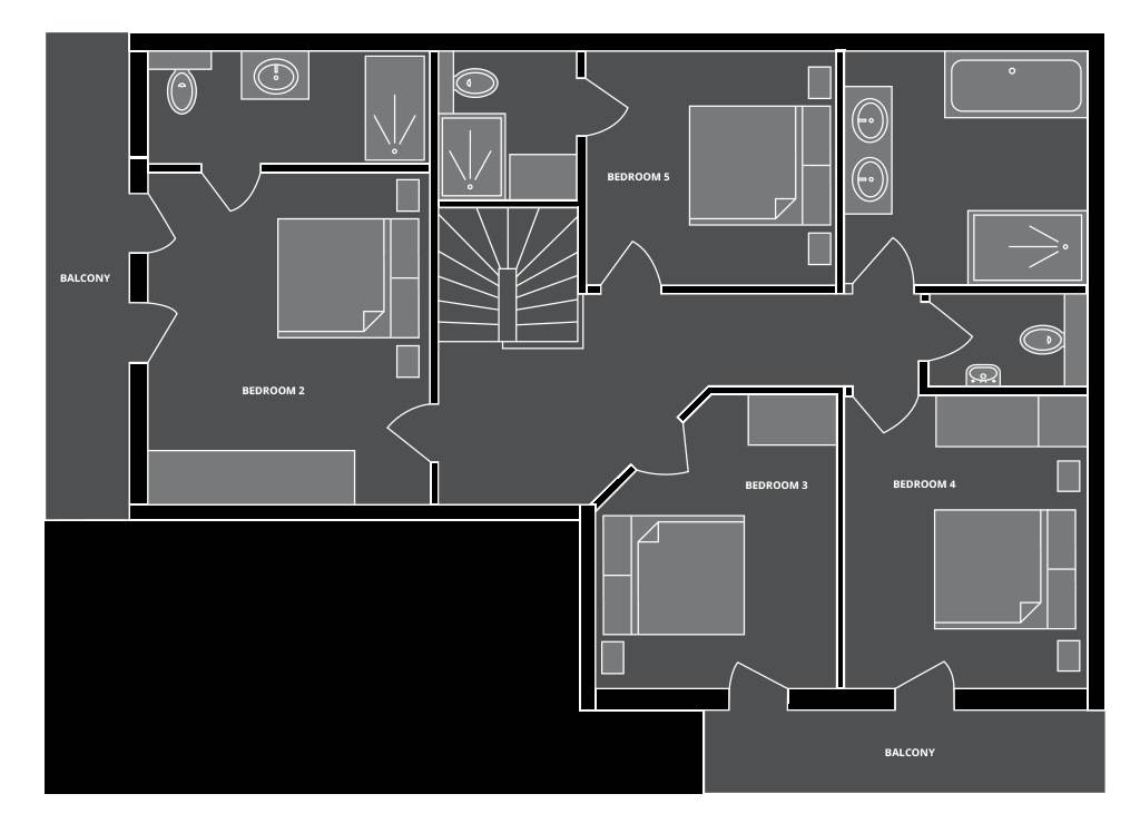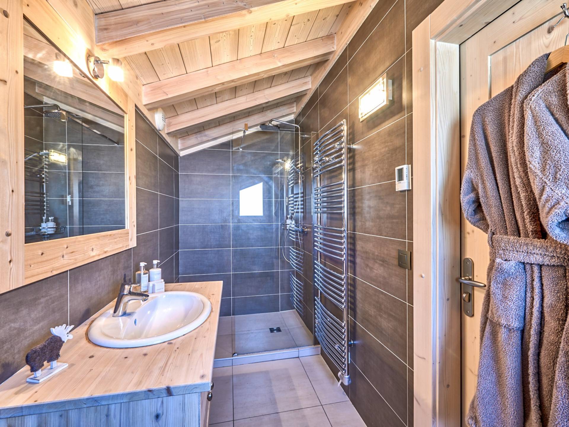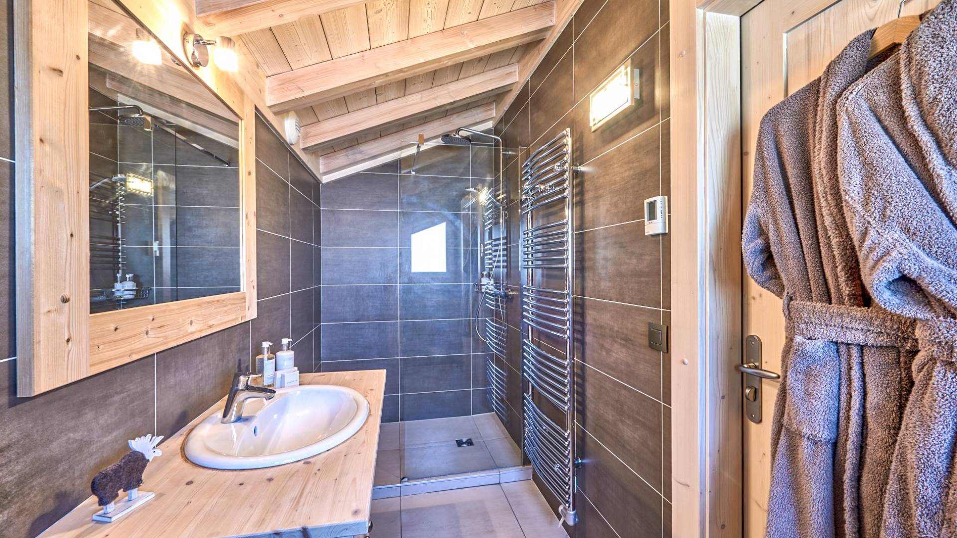 На верхнем уровне шале расположены еще четыре спальни. В главной спальне есть большой балкон и французские окна, что означает, что гости могут наслаждаться прекрасным видом на горнолыжные склоны и деревню Морзин, не вставая с постели. Две спальни, из которых также открывается вид на долину, имеют общую очень большую ванную комнату. Обе спальни имеют выход на балконы и отличное место для хранения вещей. Из третьей спальни с ванной комнатой открывается вид на сад и террасу внизу. Все спальни могут быть сконфигурированы как двухместные или двухместные.