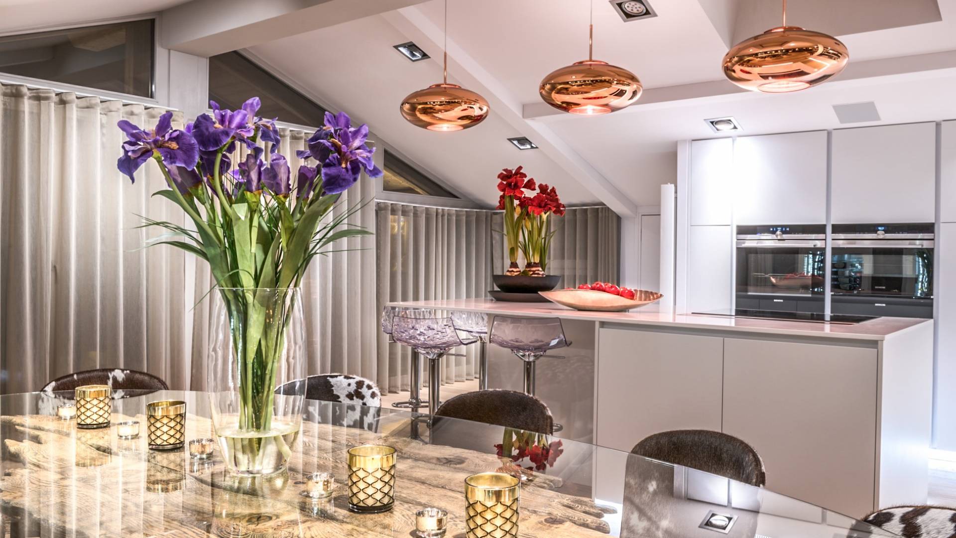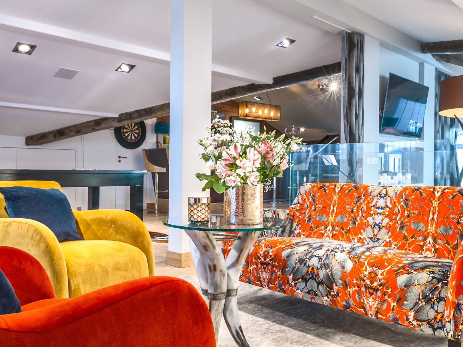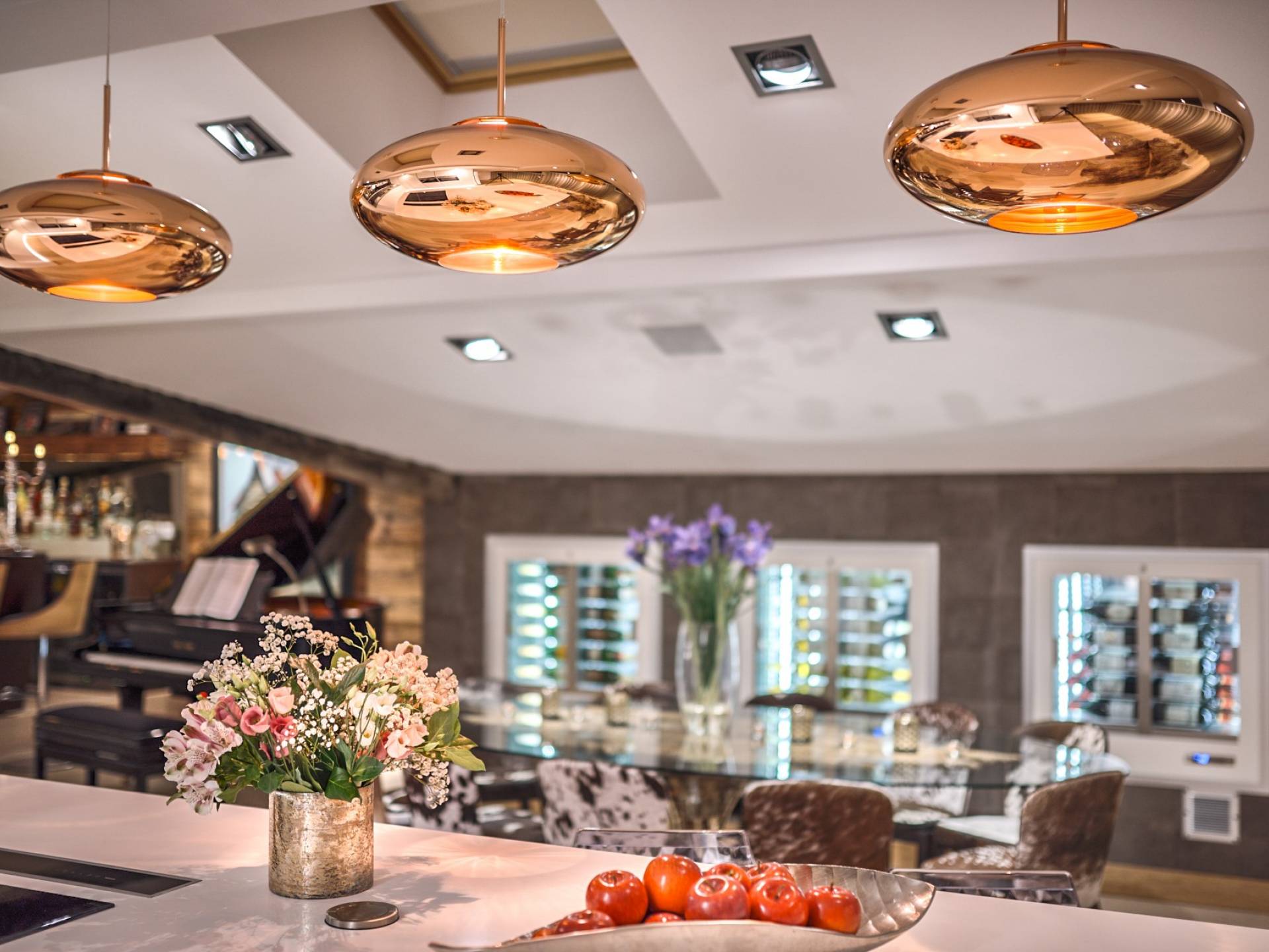 В Урбан-Корниш внимание к деталям повсюду. От дизайнерской мебели до сделанного на заказ бара - пентхаус подходит как для развлечения, так и для отдыха. Верхний этаж представляет собой просторную гостиную, обеденную и развлекательную зону открытой планировки, сосредоточенную вокруг центрального камина. В дальнем конце находится терраса с гидромассажной ванной, сауной и обеденной зоной с баром, откуда открывается вид на деревню и горнолыжные склоны. Обогреватели на крыше означают, что вы можете наслаждаться этой открытой площадкой даже самыми холодными вечерами, а летом она идеально подходит для обедов на свежем воздухе.