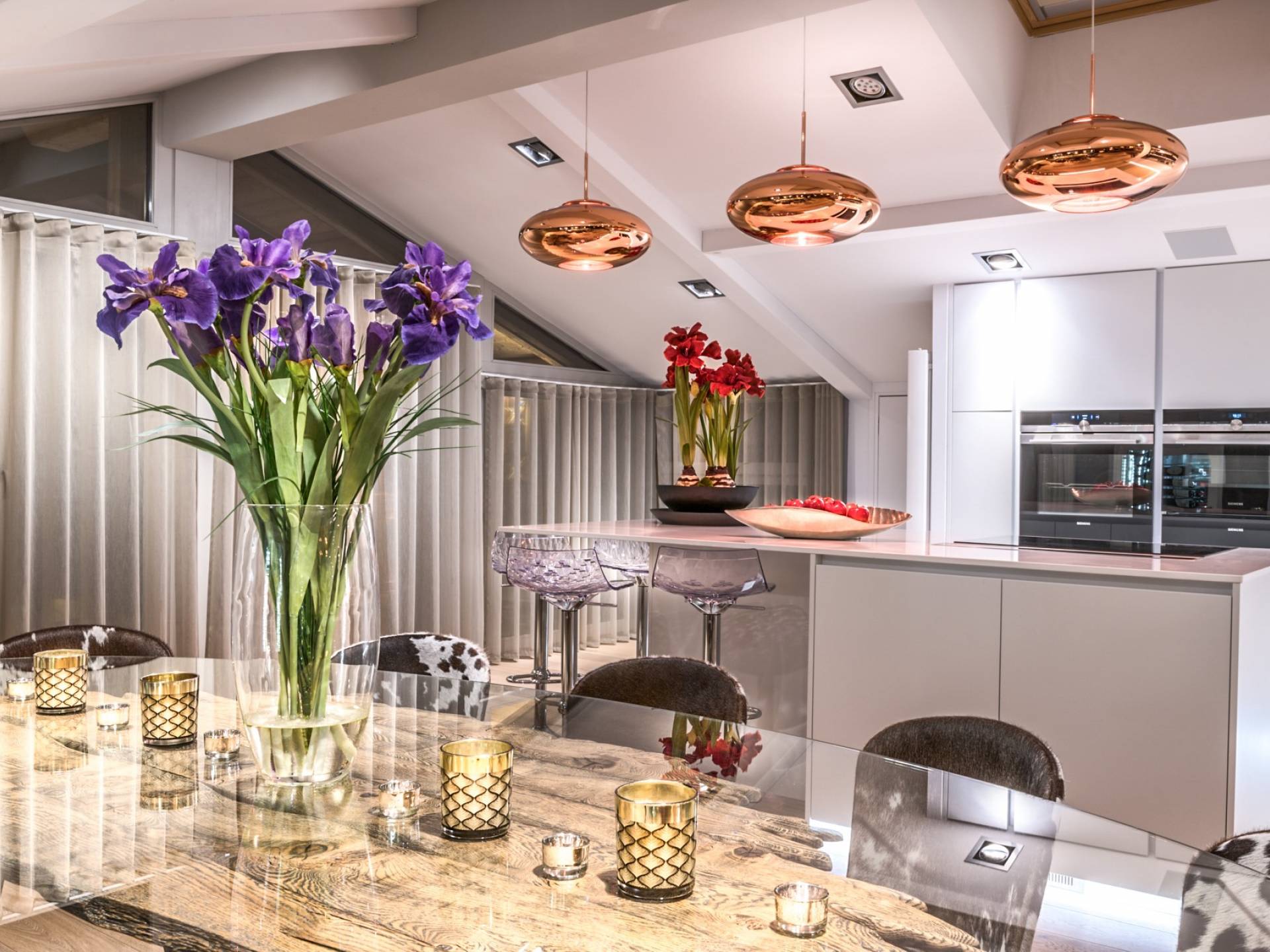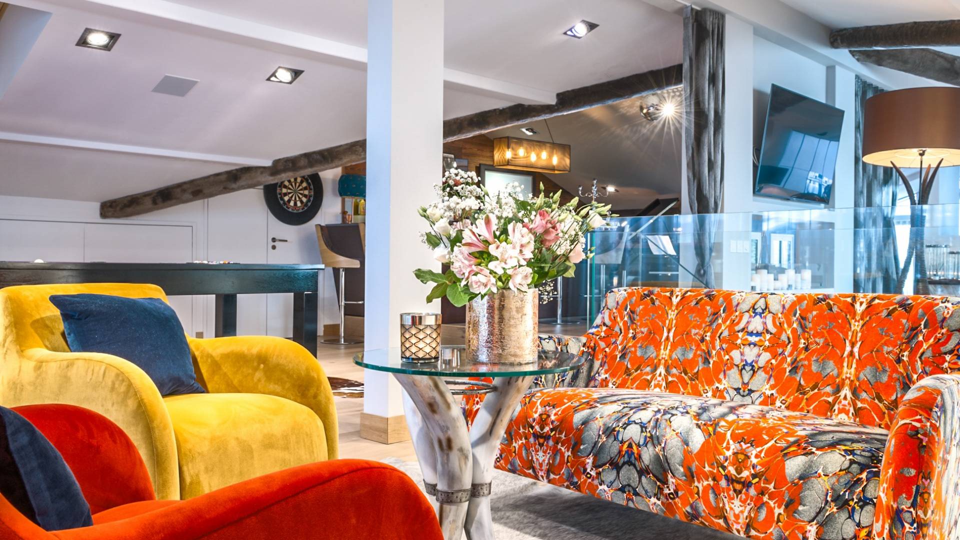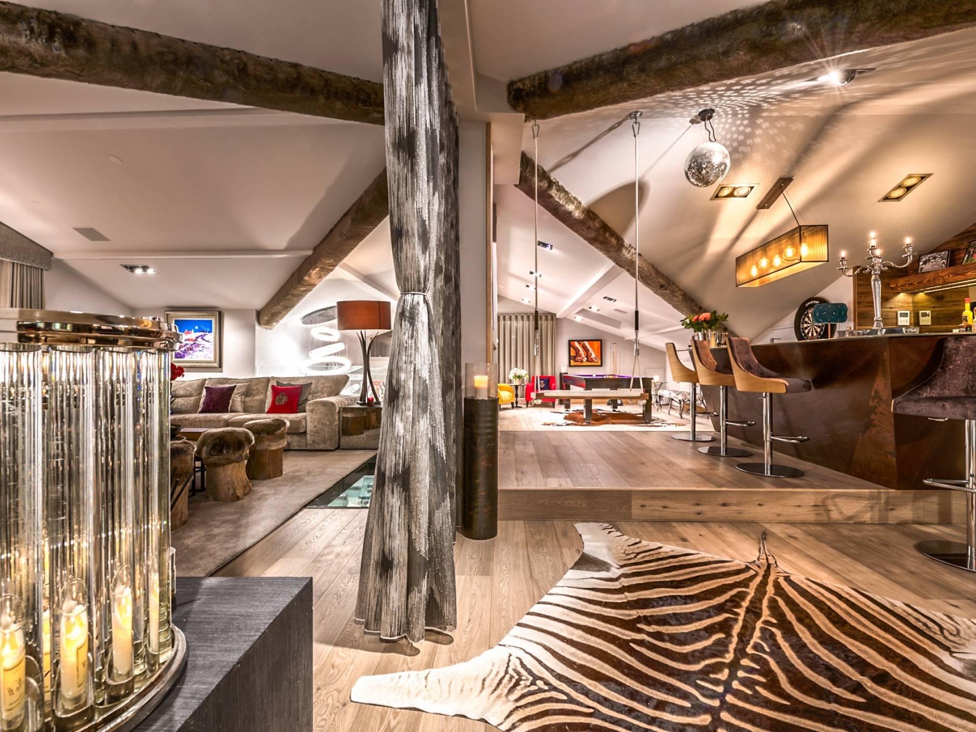 В Урбан-Корниш внимание к деталям повсюду. От дизайнерской мебели до сделанного на заказ бара - пентхаус подходит как для развлечения, так и для отдыха. Верхний этаж представляет собой просторную гостиную, обеденную и развлекательную зону открытой планировки, сосредоточенную вокруг центрального камина. В дальнем конце находится терраса с гидромассажной ванной, сауной и обеденной зоной с баром, откуда открывается вид на деревню и горнолыжные склоны. Обогреватели на крыше означают, что вы можете наслаждаться этой открытой площадкой даже самыми холодными вечерами, а летом она идеально подходит для обедов на свежем воздухе.
