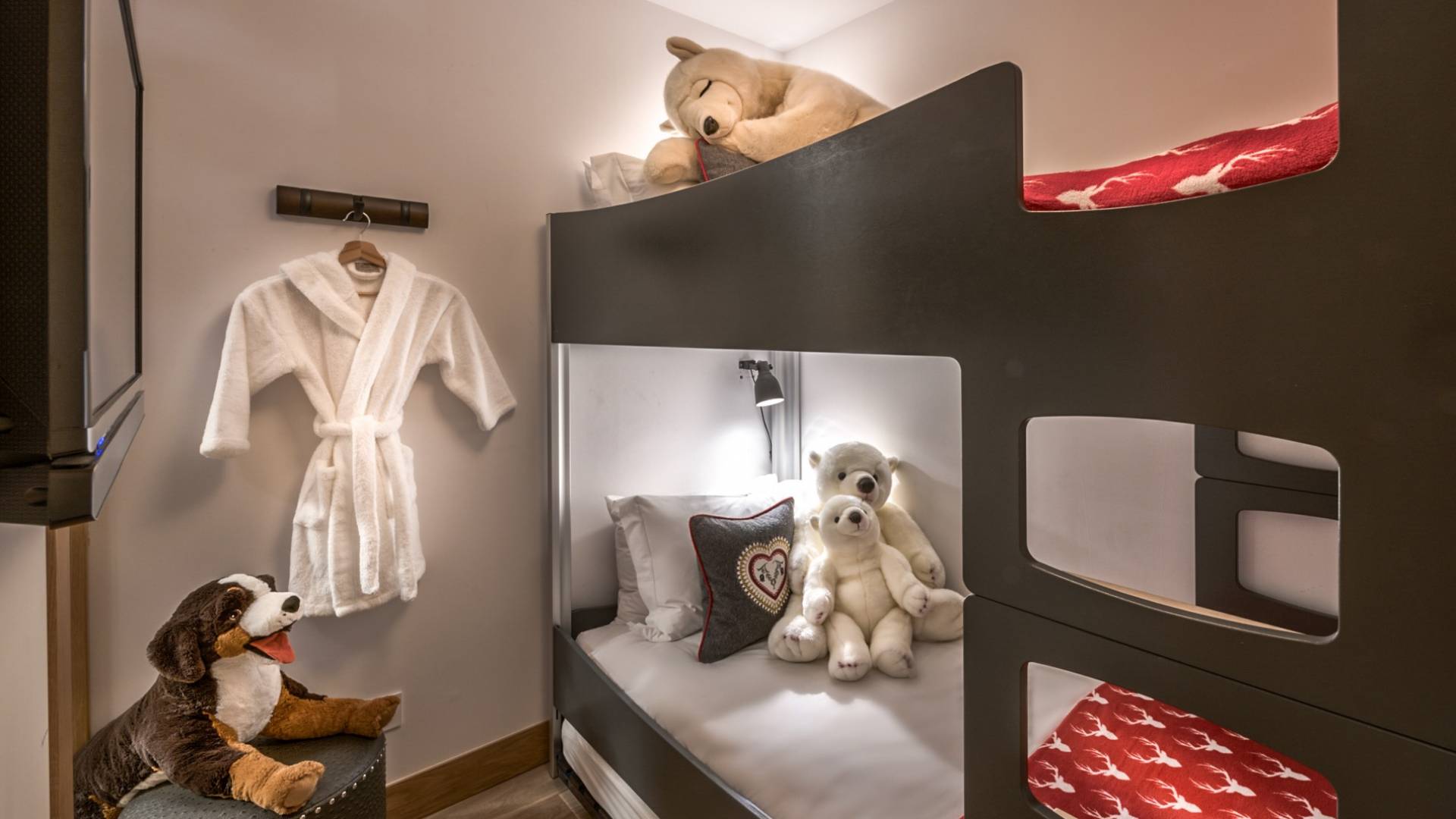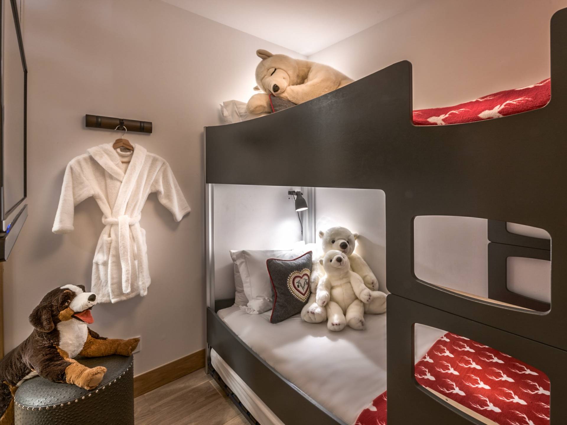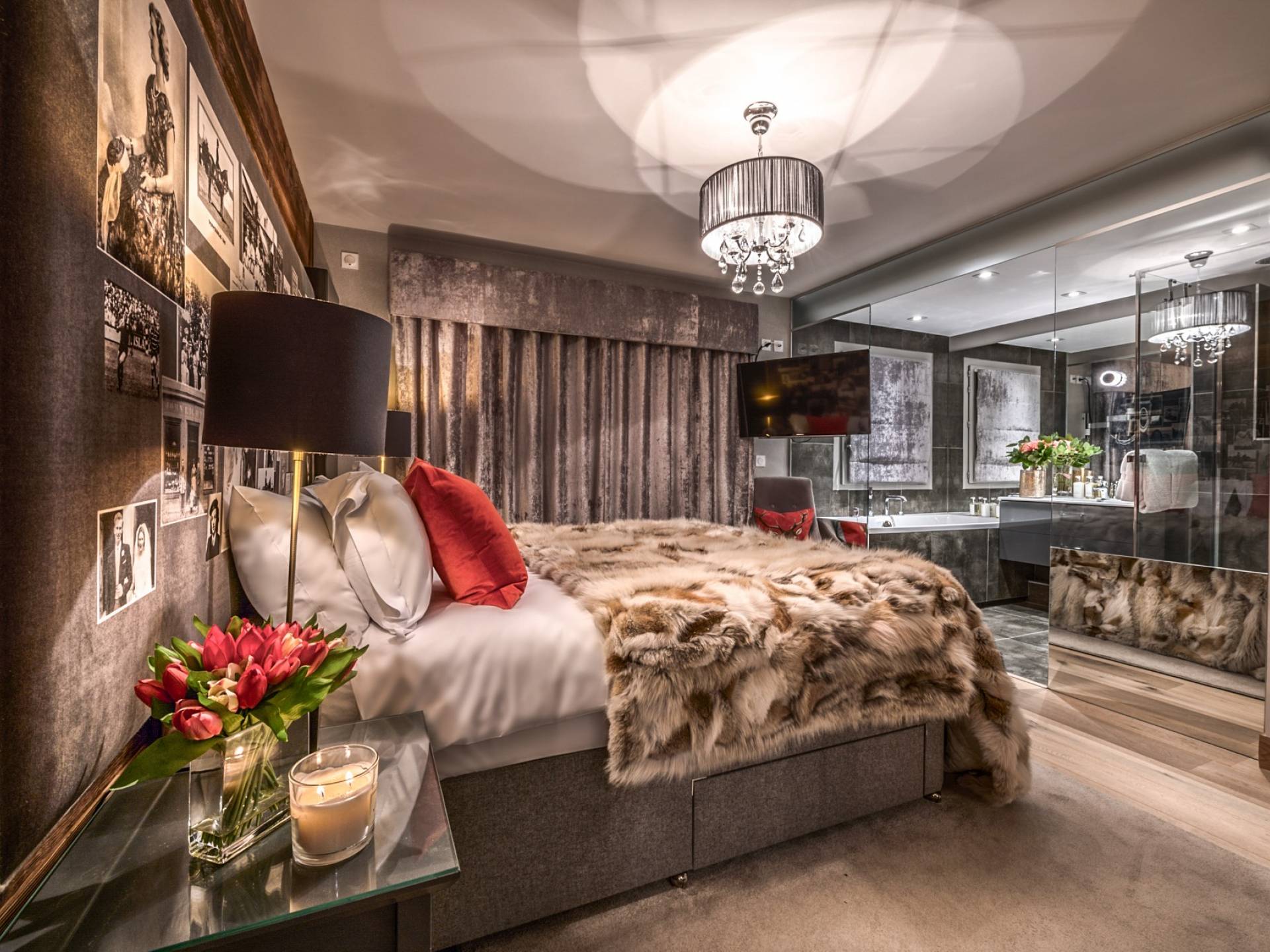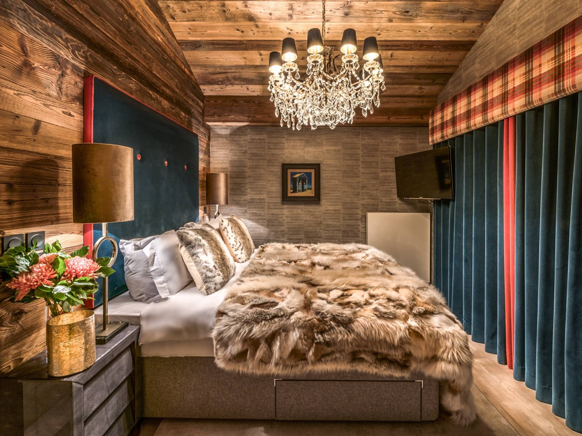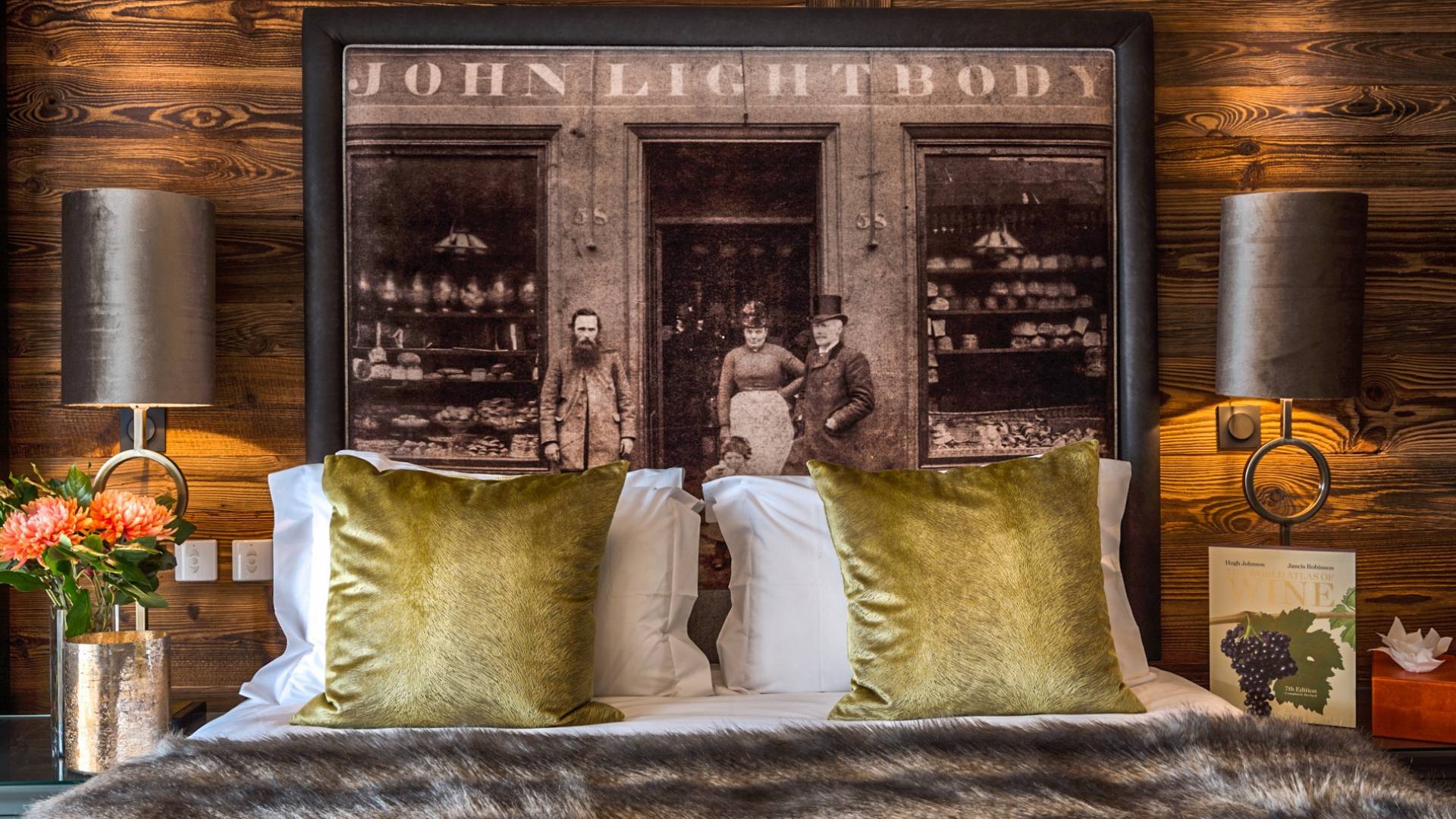 Три большие спальни с ванными комнатами могут быть преобразованы в номера с 2 отдельными кроватями или номера с кроватью размера «super king-size», и каждая из них была спроектирована так, чтобы красиво напоминать о наследии семьи владельца. Изготовленные на заказ бархатные изголовья кровати демонстрируют их историю и являются самостоятельным произведением искусства. Каждый номер имеет индивидуальный дизайн и атмосферу бутика, что создает идеальный горный рай для отдыха. Еще две спальни имеют душевые и общий доступ к туалету.