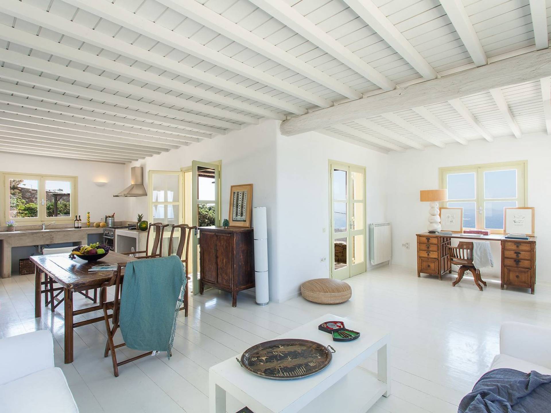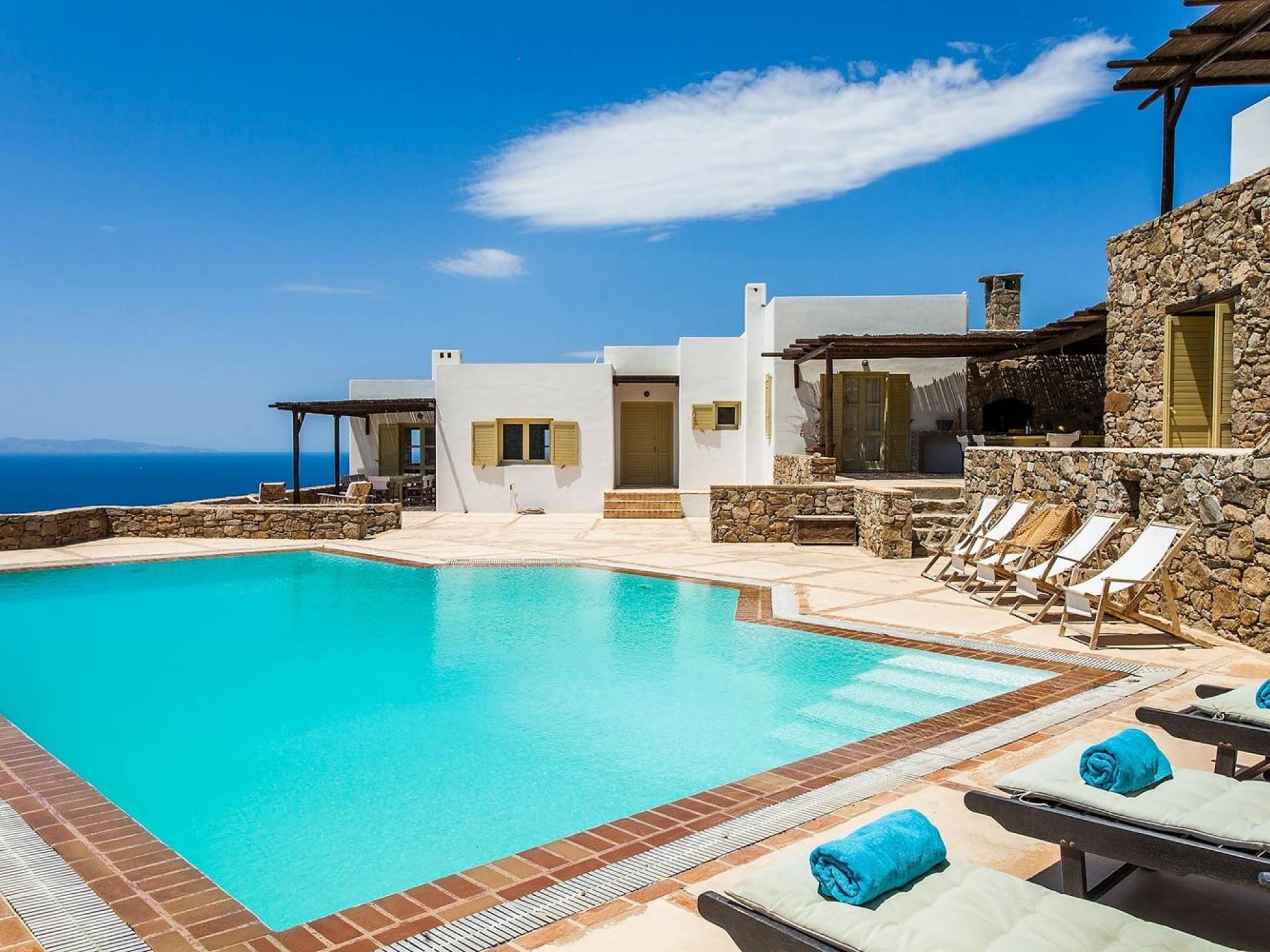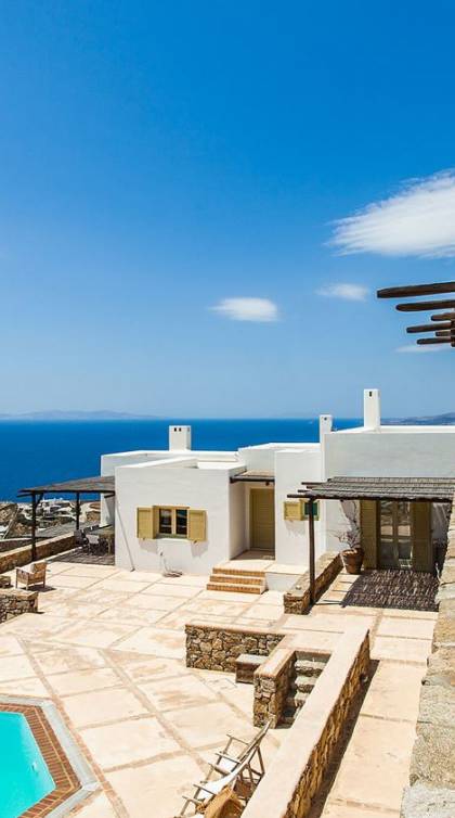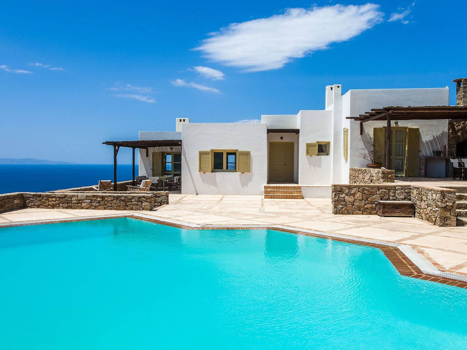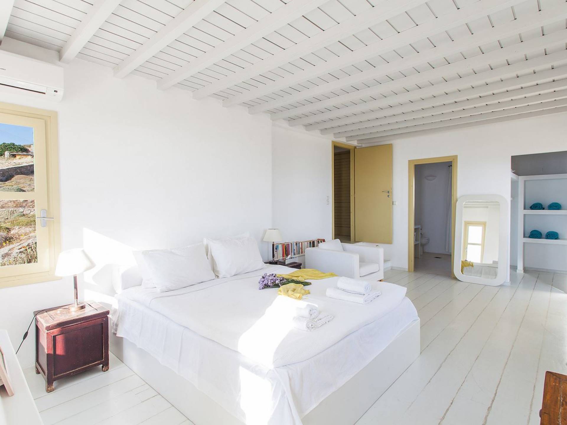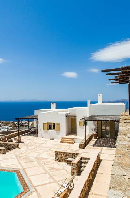 Вилла Элеонора Миконос - это роскошная вилла с 6 спальнями и частным бассейном. Это яркая современная кикладская вилла, расположенная на склоне холма в Фанари, жилом районе к северу от порта Миконос. Состоит из двух отдельных объемов, основного и гостевого дома, предлагает просторные жилые помещения, оформленные с утонченной элегантностью, а также большие открытые площадки с бассейном и прекрасным видом на закат.