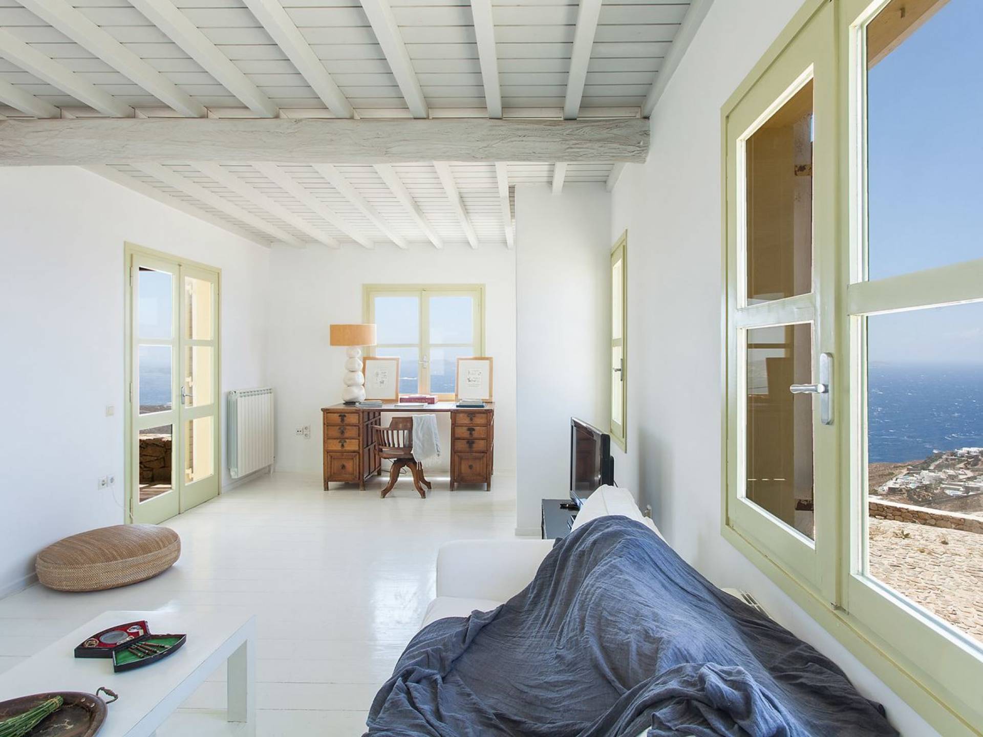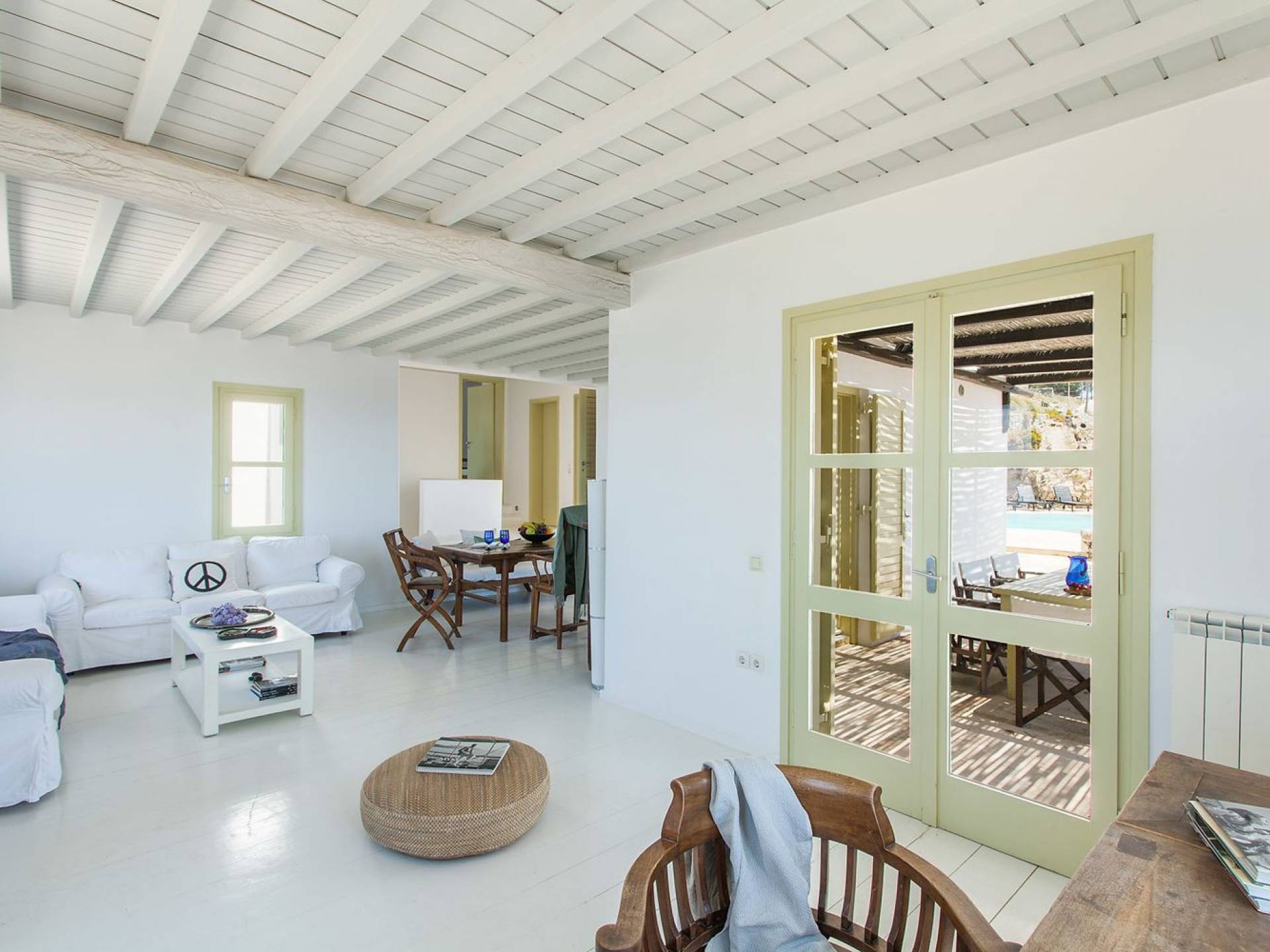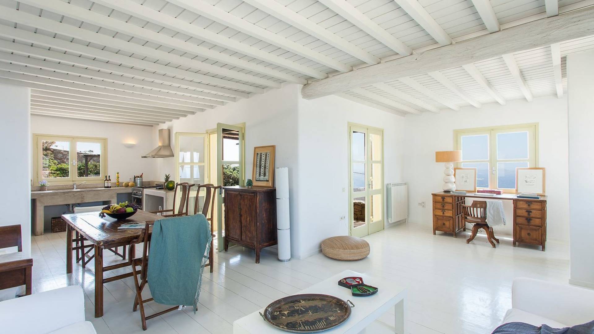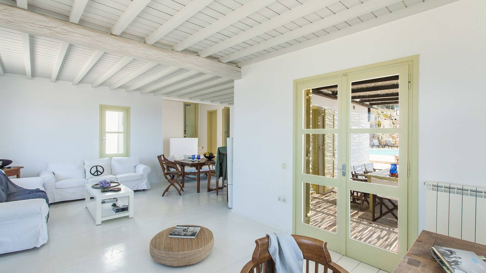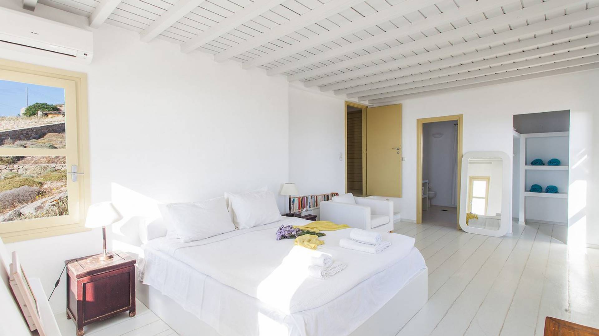 Вилла Элеонора Миконос - это роскошная вилла с 6 спальнями и частным бассейном. Это яркая современная кикладская вилла, расположенная на склоне холма в Фанари, жилом районе к северу от порта Миконос. Состоит из двух отдельных объемов, основного и гостевого дома, предлагает просторные жилые помещения, оформленные с утонченной элегантностью, а также большие открытые площадки с бассейном и прекрасным видом на закат.