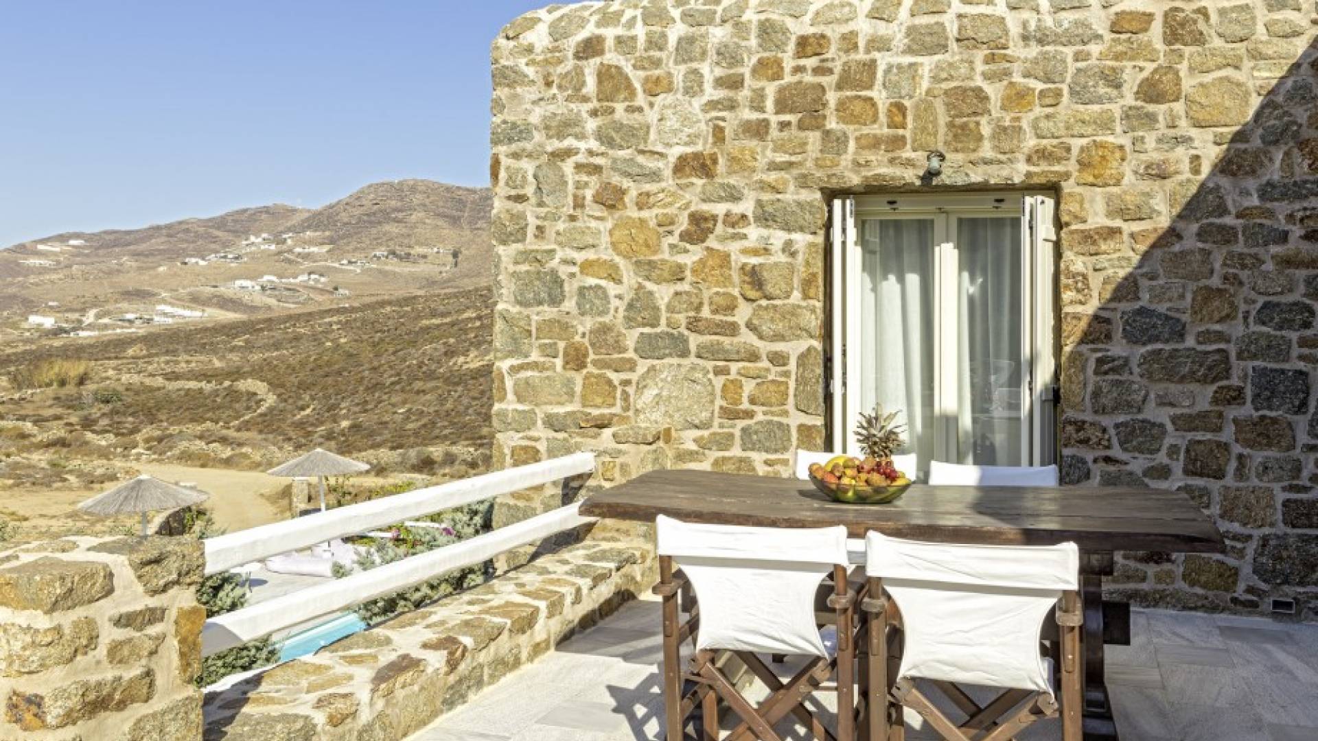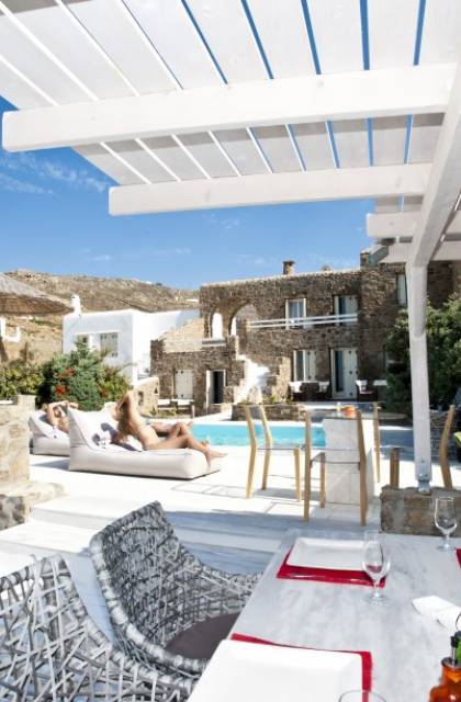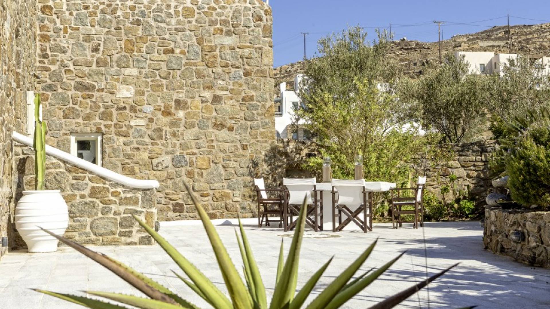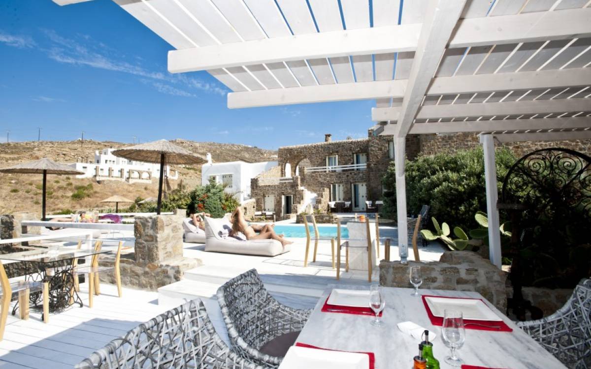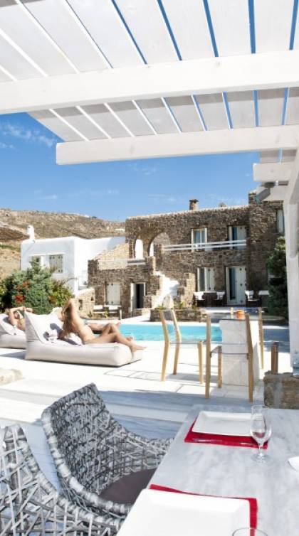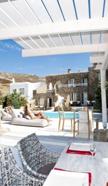 Расположенные среди полей над пляжем Фтелия, Mykonos Dream Villas - это три уединенные, очень большие современные виллы, построенные в 2009 году. Они предлагают фантастический вид на море и сельскую местность с гарантированным спокойствием. Гармоничное сочетание камня, мрамора и дерева создает неповторимую атмосферу открытой площадки. Каменные подоконники обеспечивают определенную степень уединения для вилл и жителей. Внутри красивые антикварные предметы, картины, арки и занавески на шелковой подкладке украшают многие комнаты гармонией и шармом.