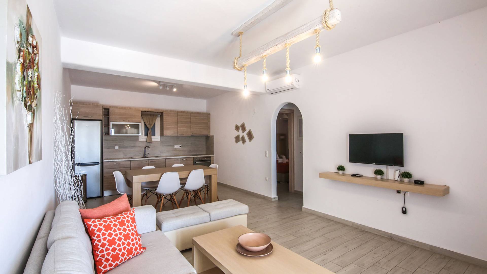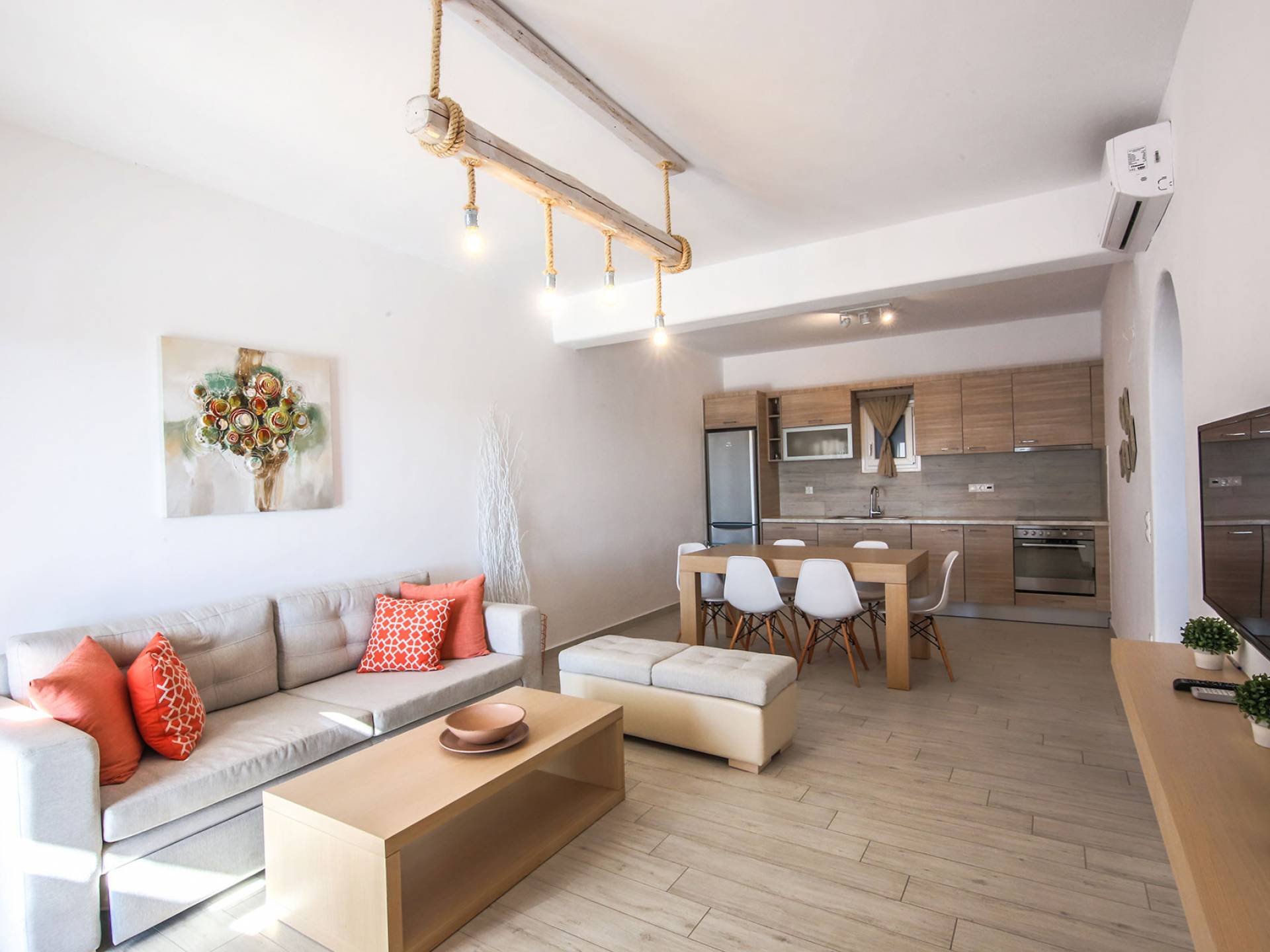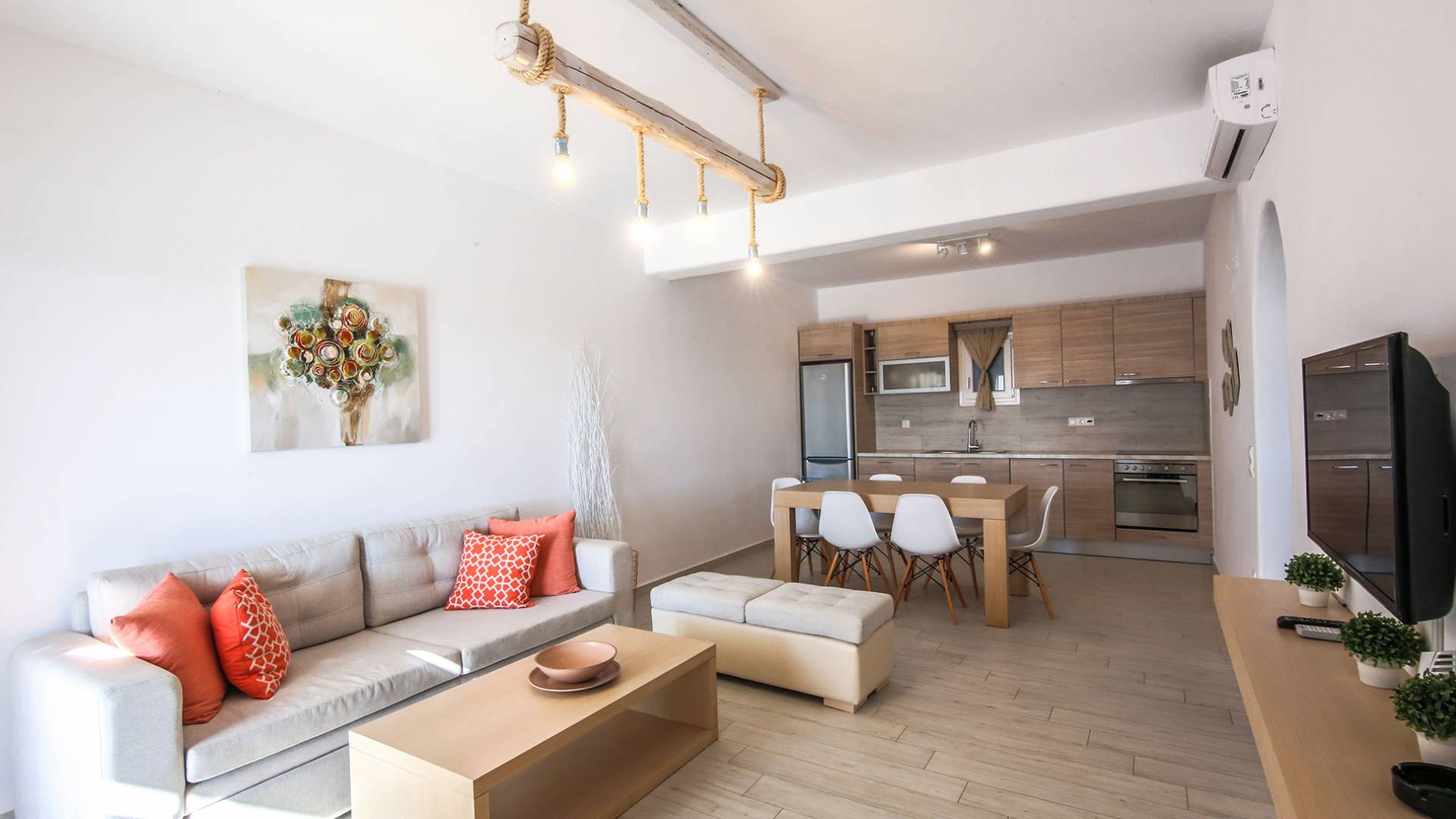 На вилле Evi Mykonos с 2 спальнями есть удобная, стильно меблированная гостиная, полностью оборудованная кухня и большая столовая, которые составляют сказочный микрокосм вашей виллы, на которой могут разместиться до четырех человек. Снаружи бассейн - это отдельная глава в вашей праздничной книге… Огромные шезлонги и белые шторы, усиливающие ощущение острова, чистая вода, сливающаяся с небом и морем, и много света… В сумерках пастельные тона цвета неба, сказочный бассейн, расслабляющий вид на море и миконский бриз создают идеальные условия для самого романтического вечера.
