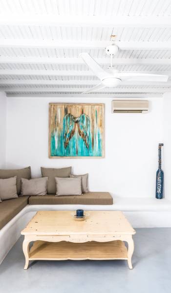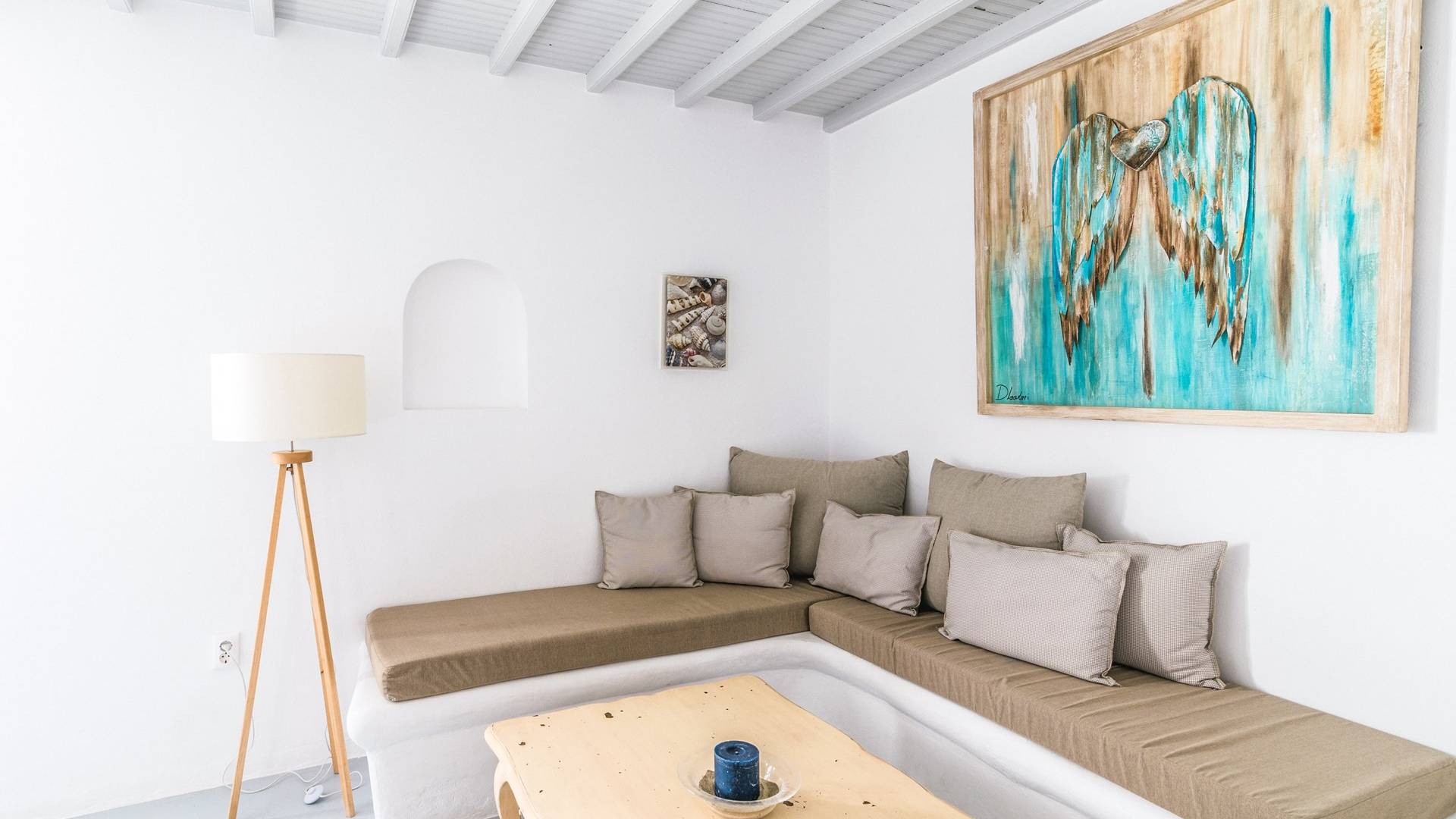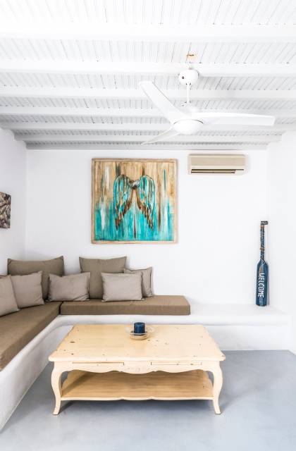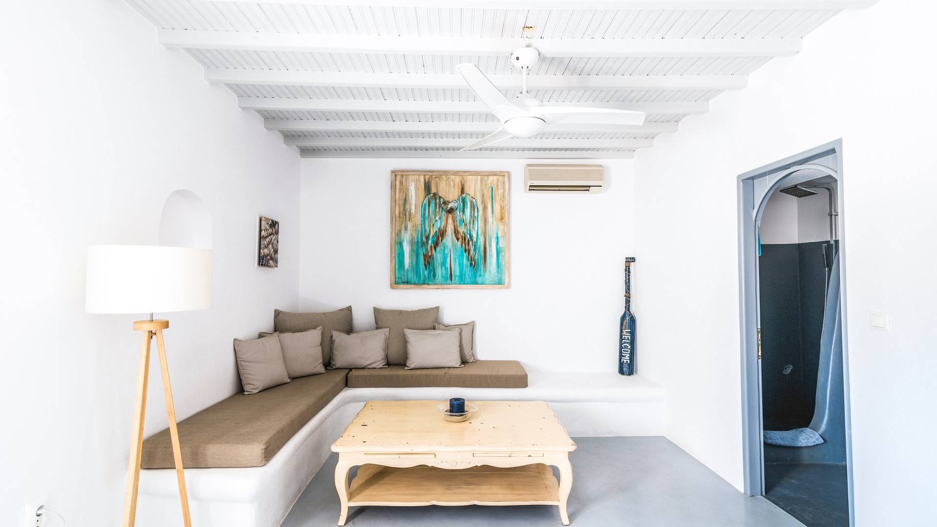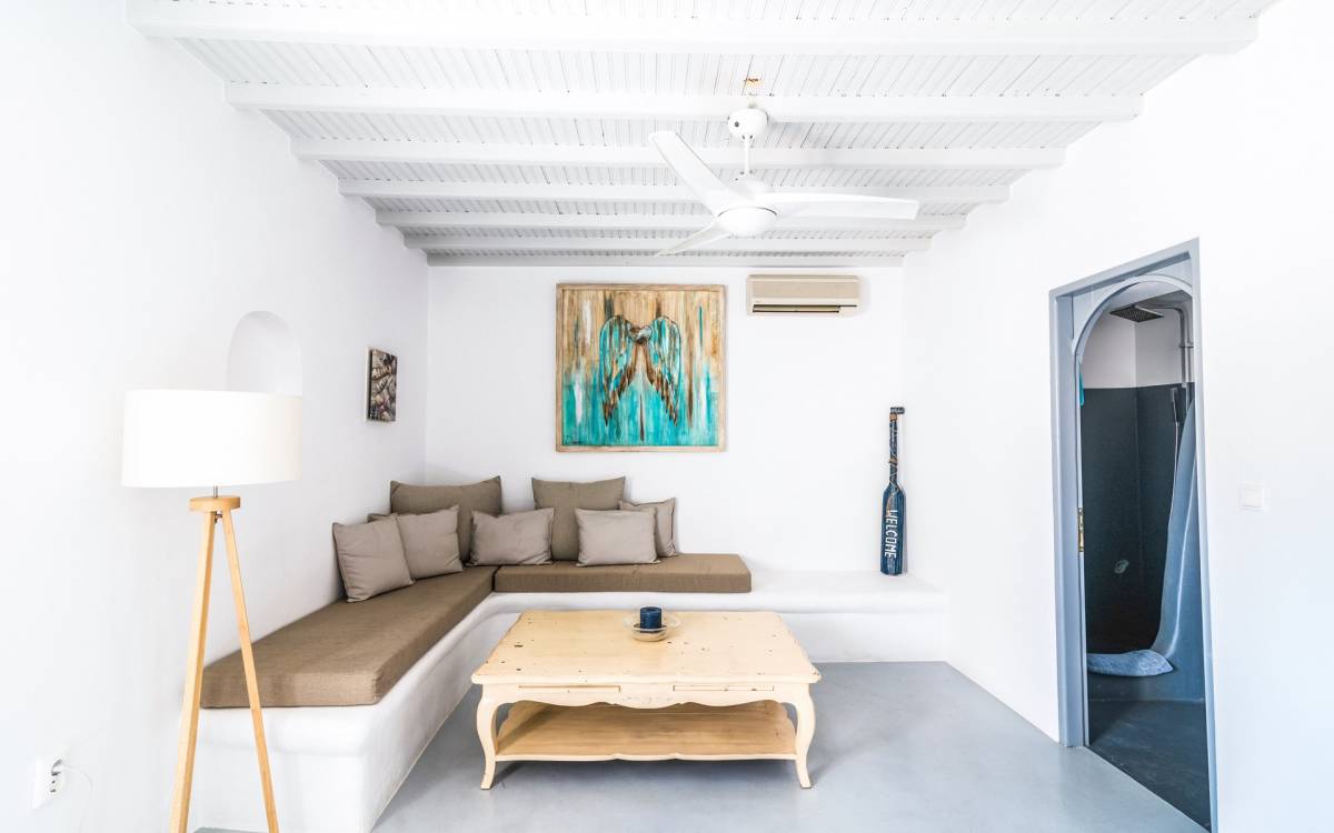 Построенные в стиле настоящей миконской архитектуры, минималистские интерьеры каждого люкса и виллы олицетворяют собой современный дизайн с аутентичными деталями. Побеленные стены, гладкие арки и открытая планировка по всему комплексу создают расслабляющую и успокаивающую атмосферу. Каждый люкс и вилла имеют свой собственный размер и характер, чтобы удовлетворить любые группы.