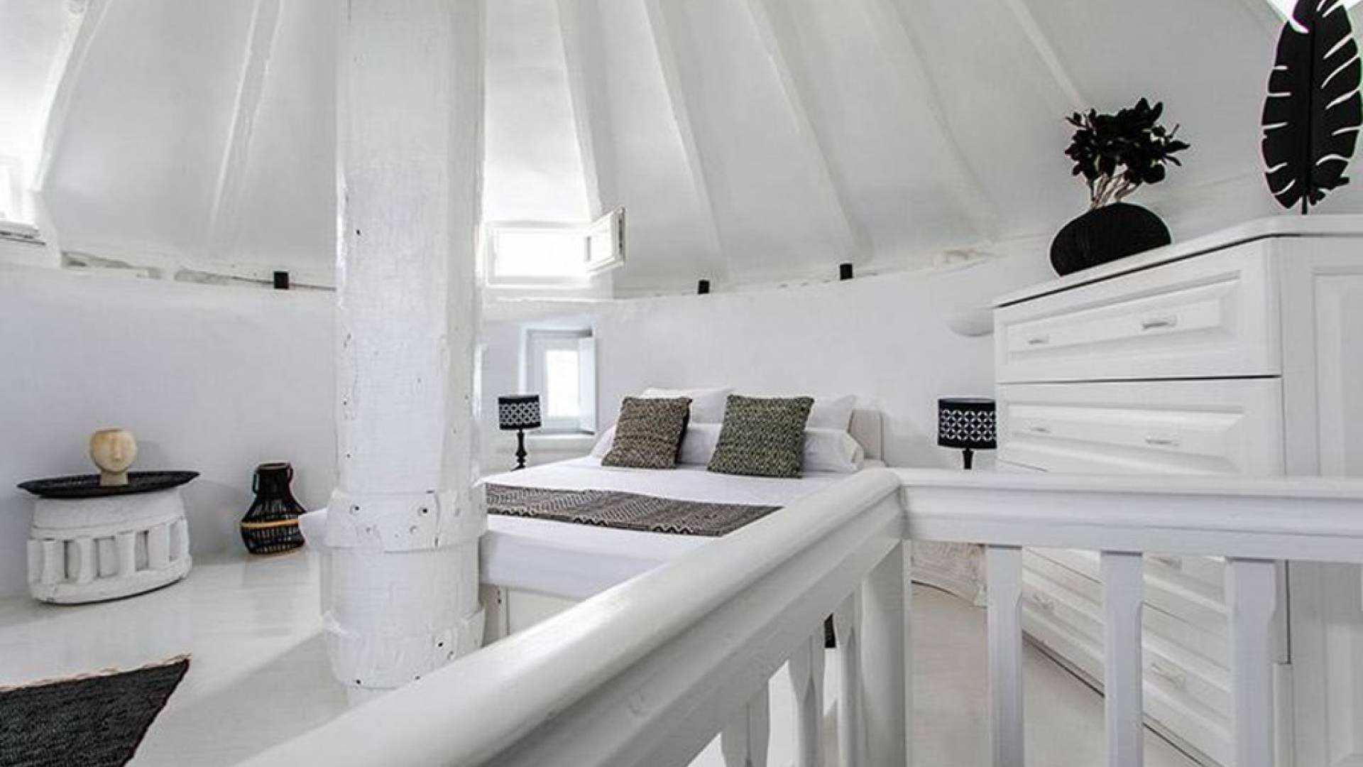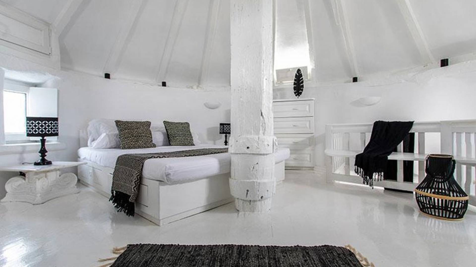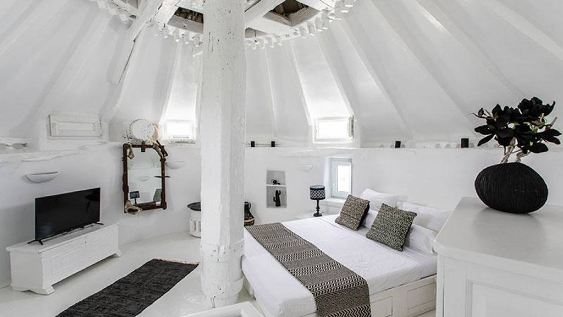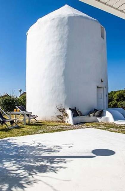 На первом этаже - оборудованная кухня и обеденный стол, санузел с душевой кабиной. Круглые ступени ведут на второй этаж, где находится гостиная, которая также используется как гардеробная, с вместительным гардеробом. По лестнице вверх, ведущей на 2-й этаж, на вершину ветряной мельницы, где в главной спальне находится большая двуспальная кровать. Деревянный киоск за пределами мельницы обеспечивает идеальную тень для ужина на открытом воздухе или коктейльной вечеринки на закате.