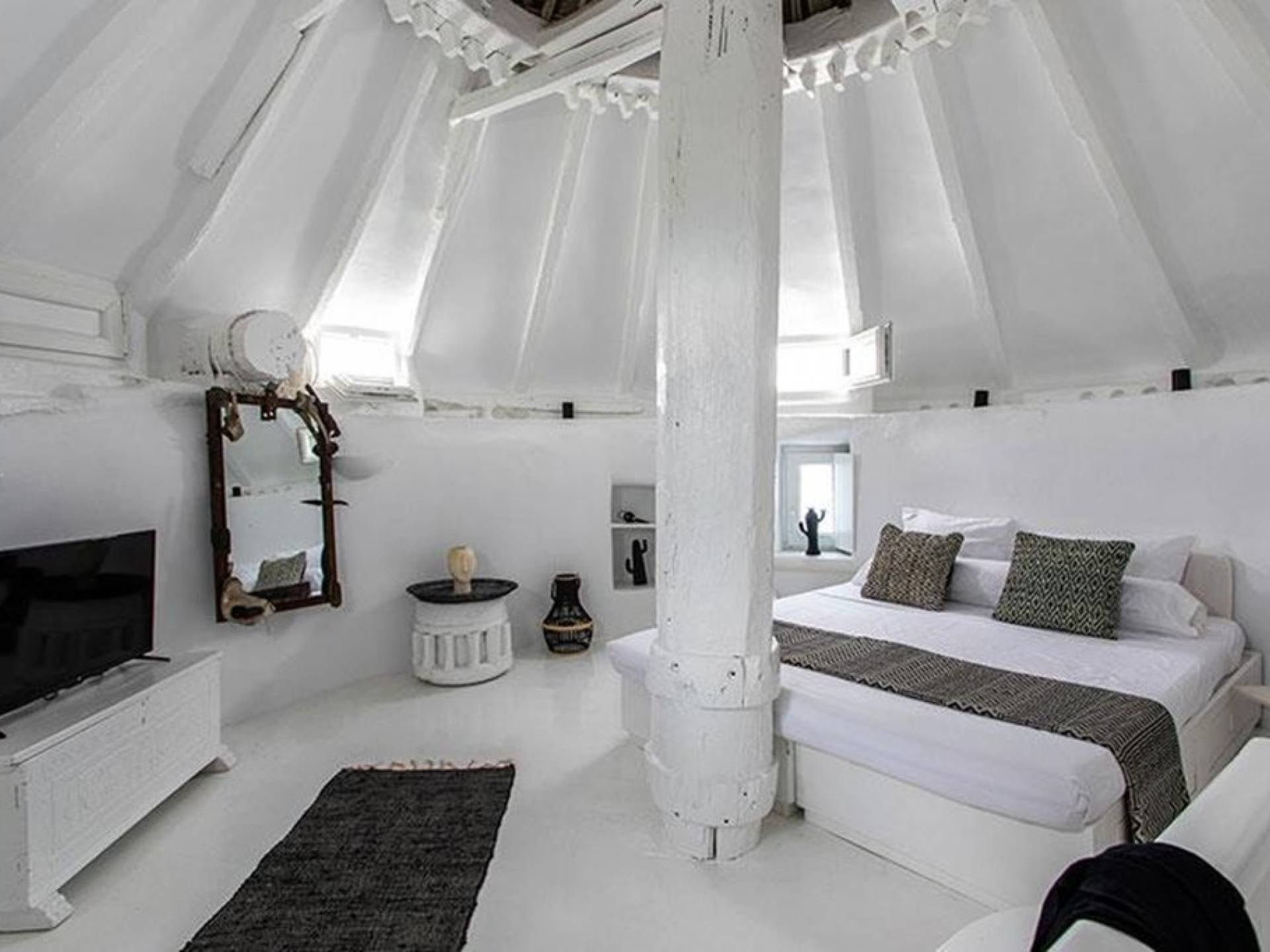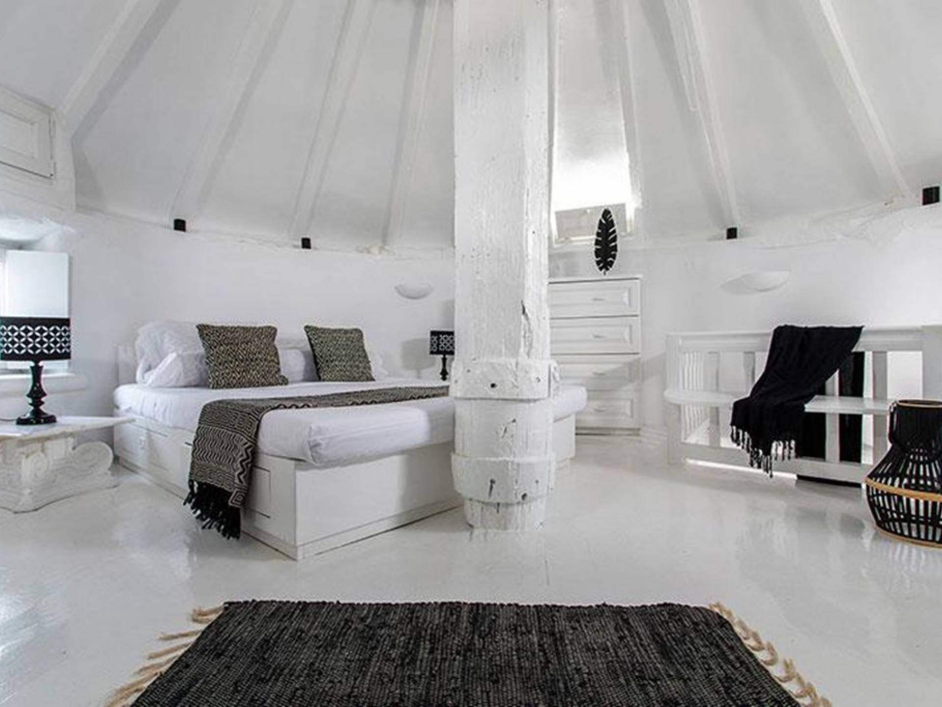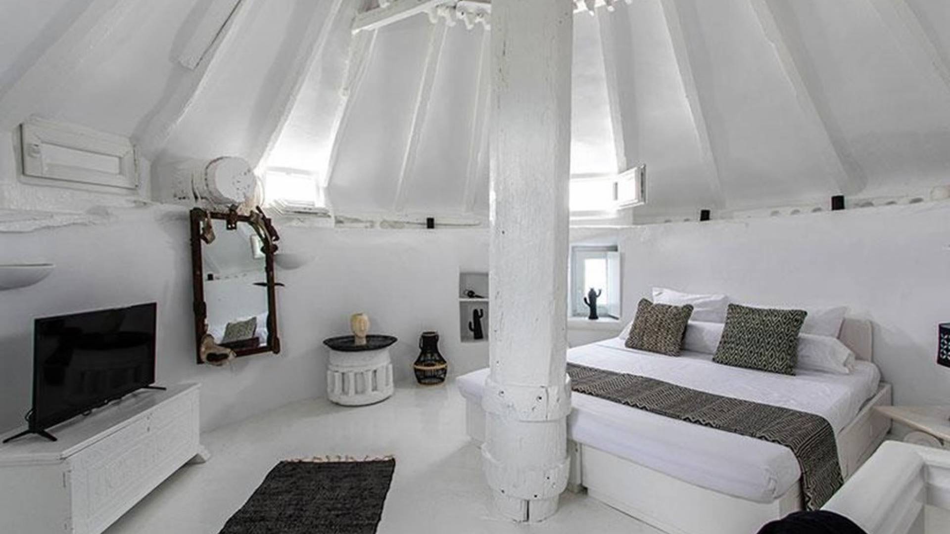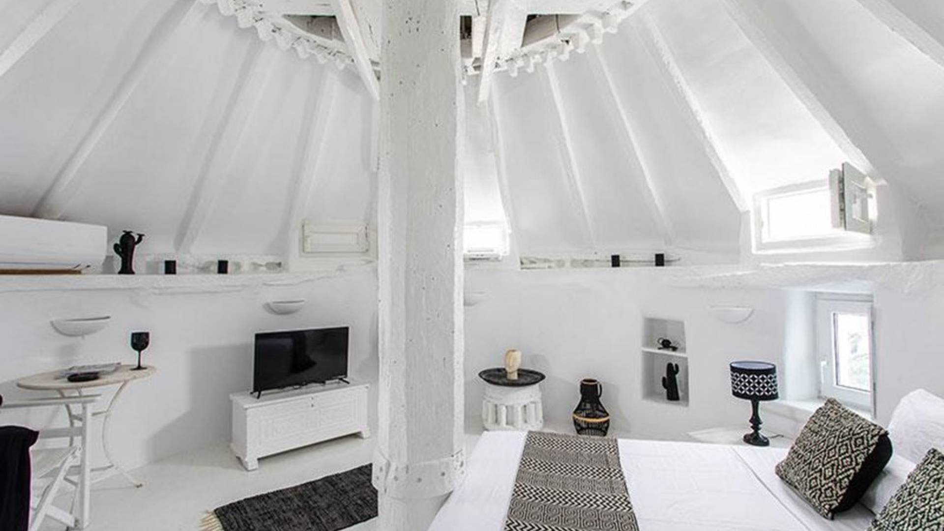 На первом этаже - оборудованная кухня и обеденный стол, санузел с душевой кабиной. Круглые ступени ведут на второй этаж, где находится гостиная, которая также используется как гардеробная, с вместительным гардеробом. По лестнице вверх, ведущей на 2-й этаж, на вершину ветряной мельницы, где в главной спальне находится большая двуспальная кровать. Деревянный киоск за пределами мельницы обеспечивает идеальную тень для ужина на открытом воздухе или коктейльной вечеринки на закате.