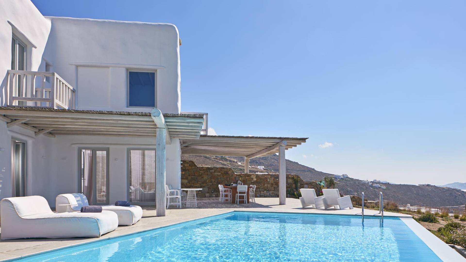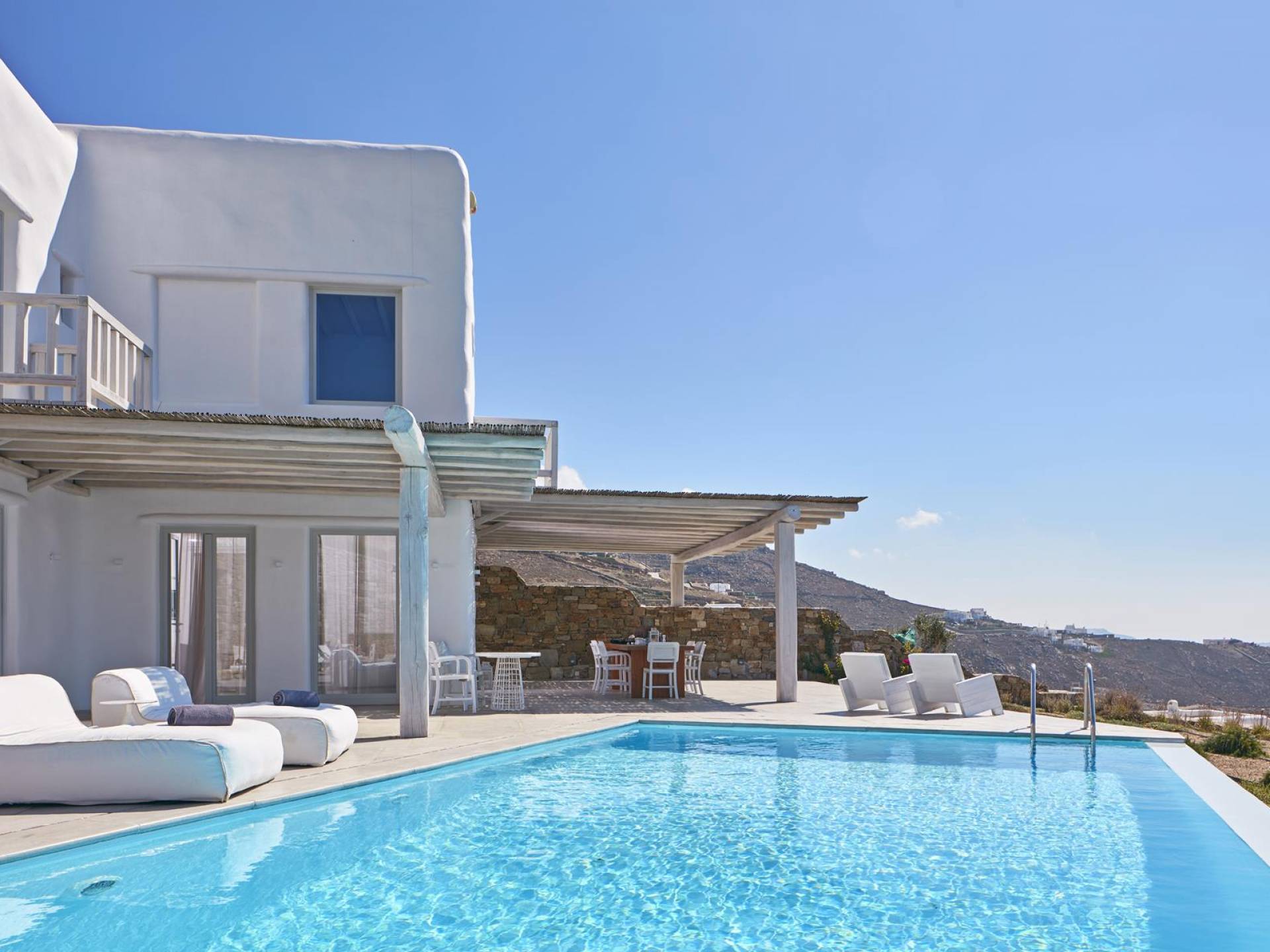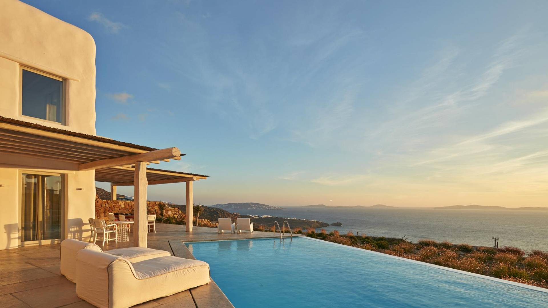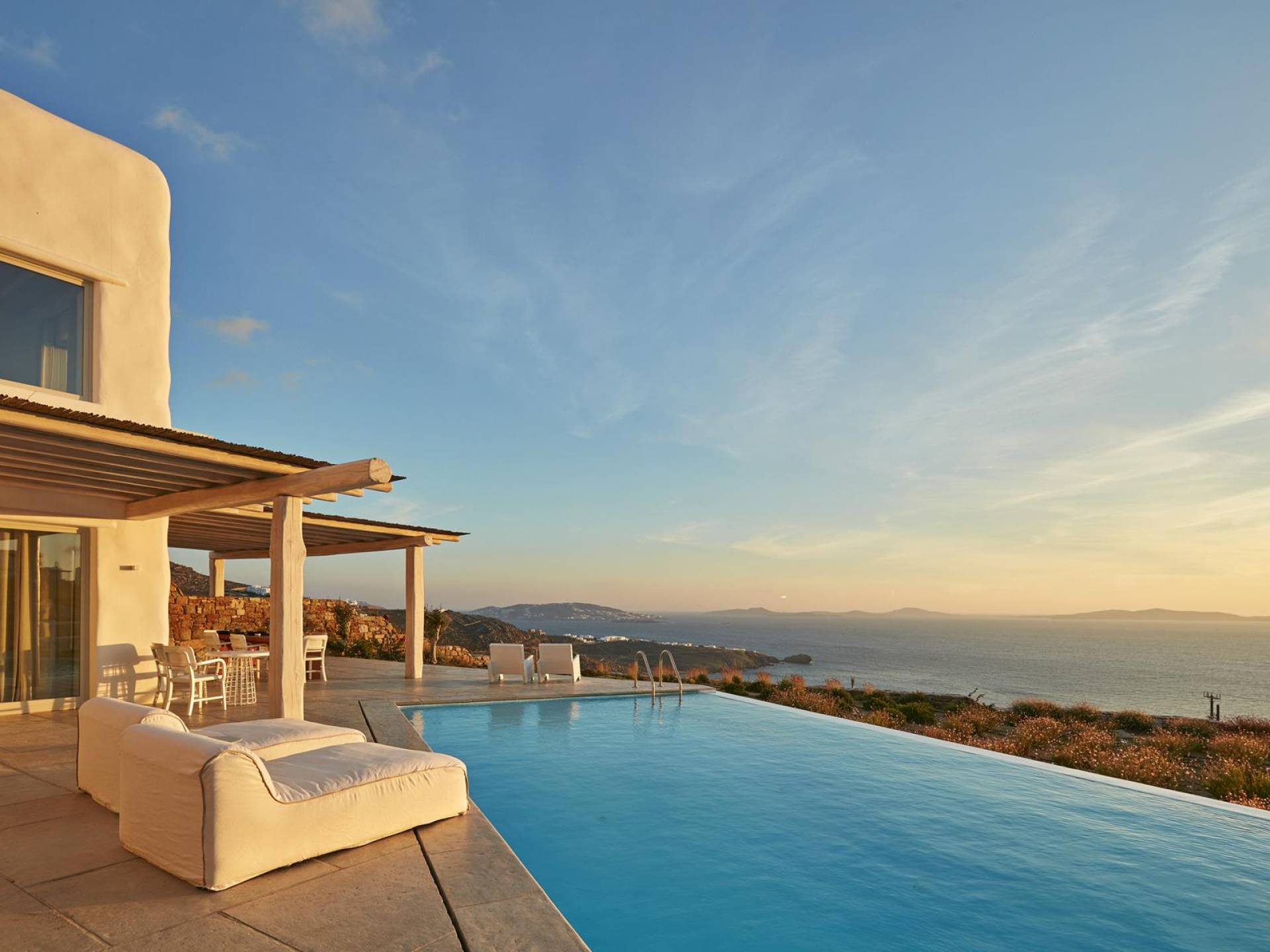 Недавно построенные роскошные виллы Mykonos Ammos расположены в районе Хулакия, в 5 минутах езды от центра города острова и всего в 800 метрах от ближайшего пляжа Агиос Стефанос. Архитектура и дизайн интерьера выполнены в традиционном кикладском стиле и отличаются минималистским шиком, но имеют особый характер. Светлые, просторные и просторные гостиные, удобные обеденные зоны, полностью оборудованные современные кухни и ненавязчиво роскошные спальни с ванными комнатами предлагают элегантность, комфорт, функциональность и чувство благополучия. Подобранная вручную мебель и уникальные декоративные элементы дополняют изысканную, но уютную и непринужденную атмосферу. Все 3 виллы Mykonos Ammos имеют частные бассейны и открытые площадки, защищенные от северных ветров и окруженные средиземноморскими садами, так что вы можете наслаждаться отдыхом в своем собственном раю. Из каждой виллы открывается потрясающий вид на море, так что вы можете смотреть на остров Делос или любоваться великолепным огненным закатом над Эгейским морем.