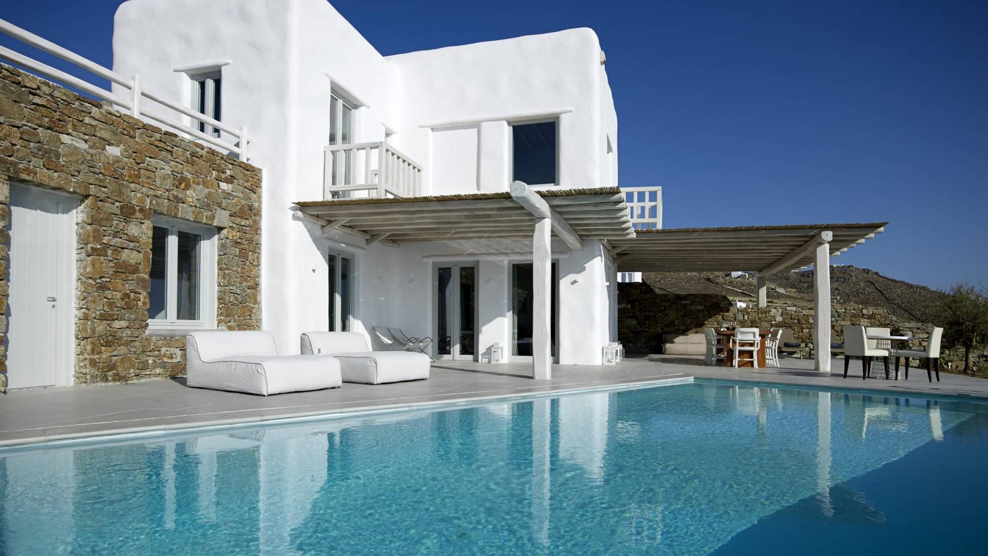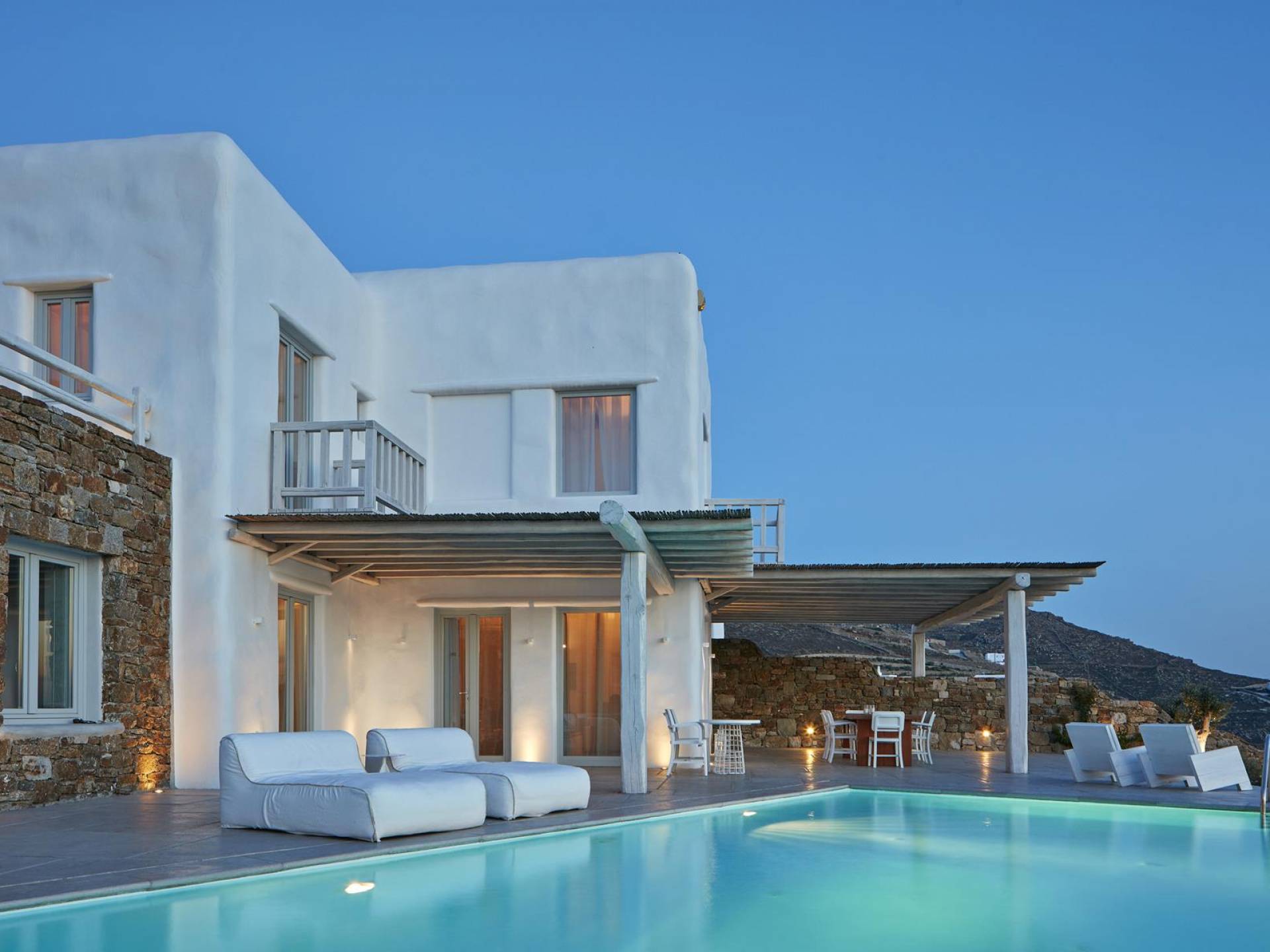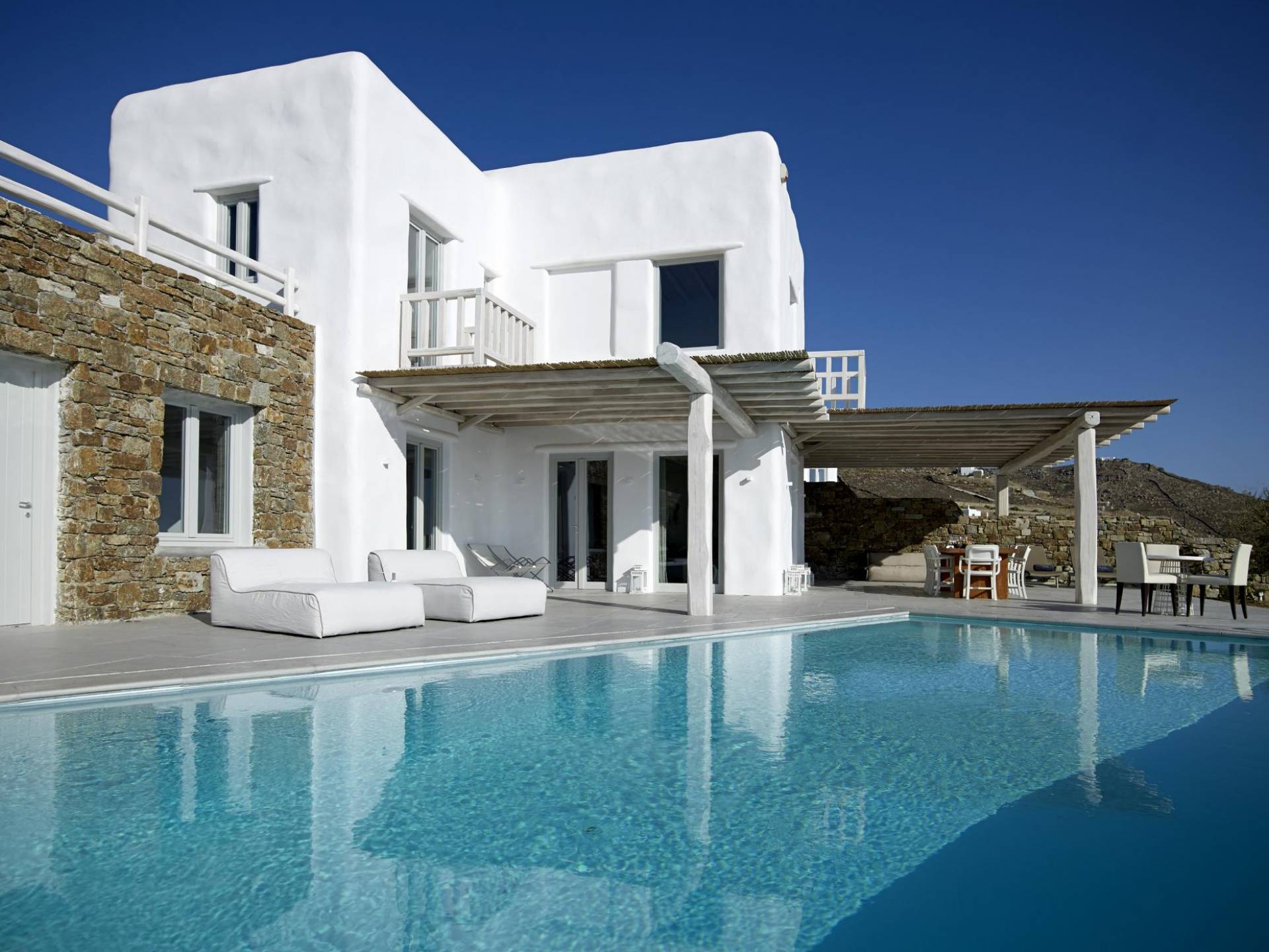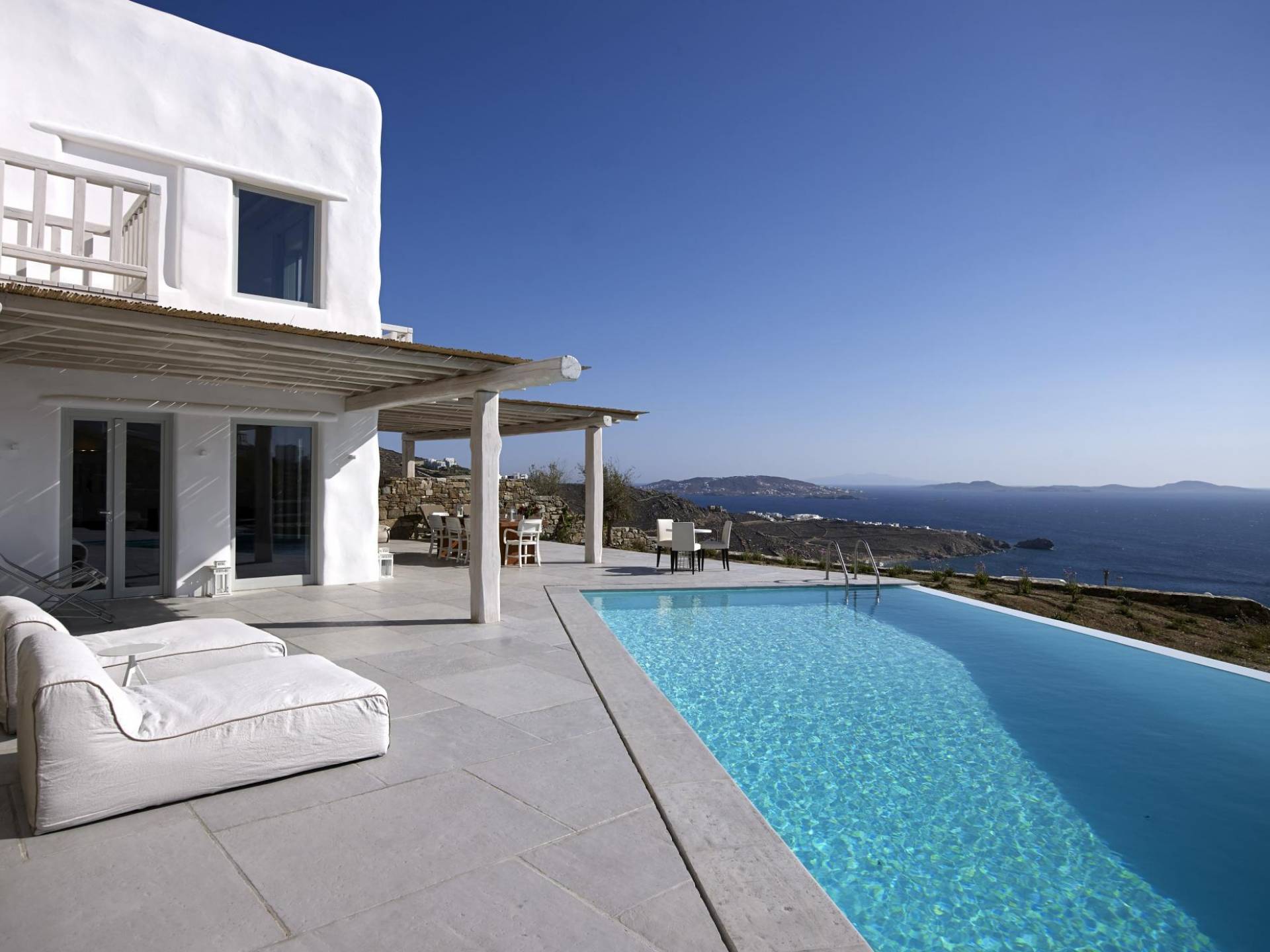 Недавно построенные роскошные виллы Mykonos Ammos расположены в районе Хулакия, в 5 минутах езды от центра города острова и всего в 800 метрах от ближайшего пляжа Агиос Стефанос. Архитектура и дизайн интерьера выполнены в традиционном кикладском стиле и отличаются минималистским шиком, но имеют особый характер. Светлые, просторные и просторные гостиные, удобные обеденные зоны, полностью оборудованные современные кухни и ненавязчиво роскошные спальни с ванными комнатами предлагают элегантность, комфорт, функциональность и чувство благополучия. Подобранная вручную мебель и уникальные декоративные элементы дополняют изысканную, но уютную и непринужденную атмосферу. Все 3 виллы Mykonos Ammos имеют частные бассейны и открытые площадки, защищенные от северных ветров и окруженные средиземноморскими садами, так что вы можете наслаждаться отдыхом в своем собственном раю. Из каждой виллы открывается потрясающий вид на море, так что вы можете смотреть на остров Делос или любоваться великолепным огненным закатом над Эгейским морем.