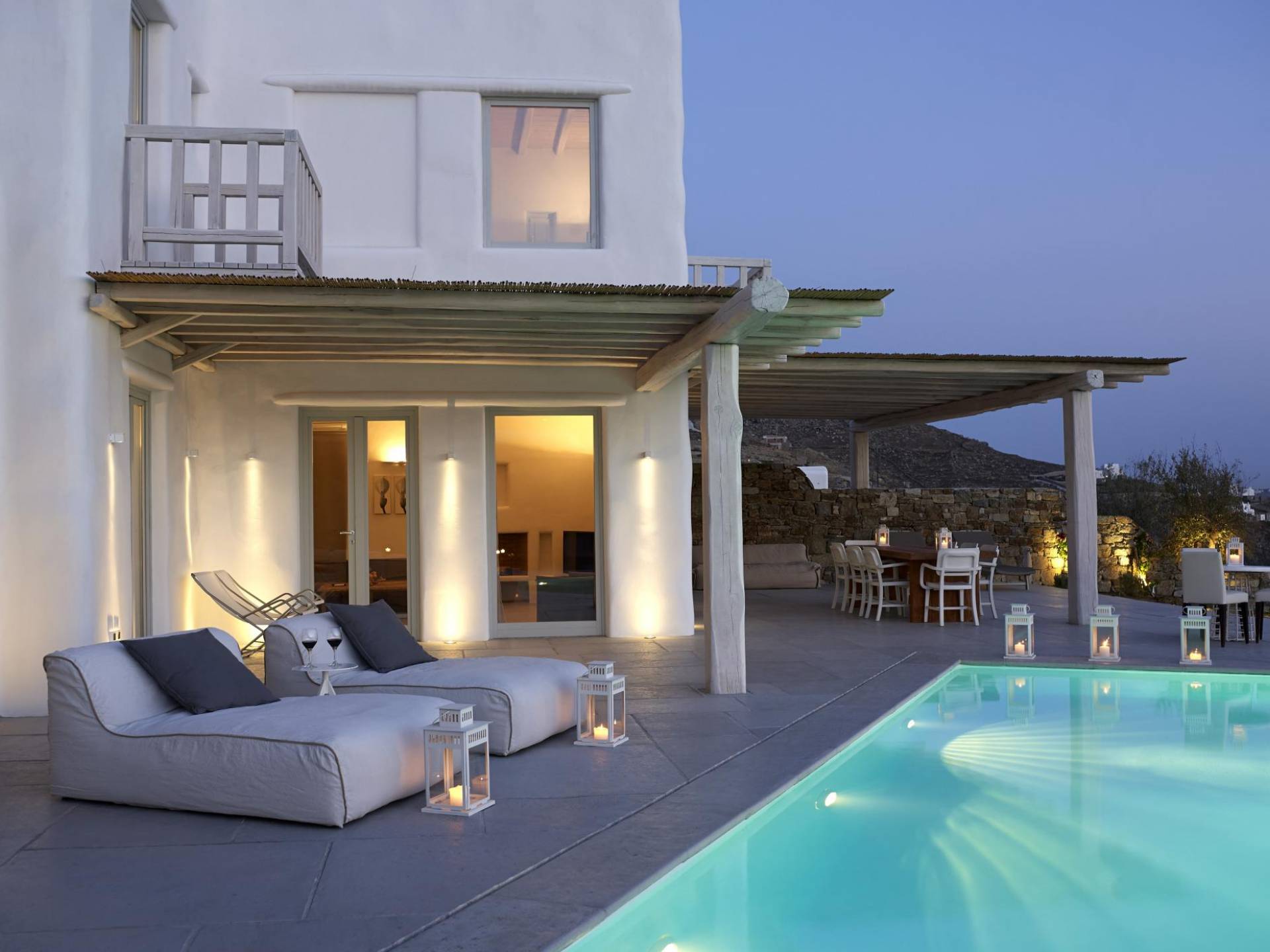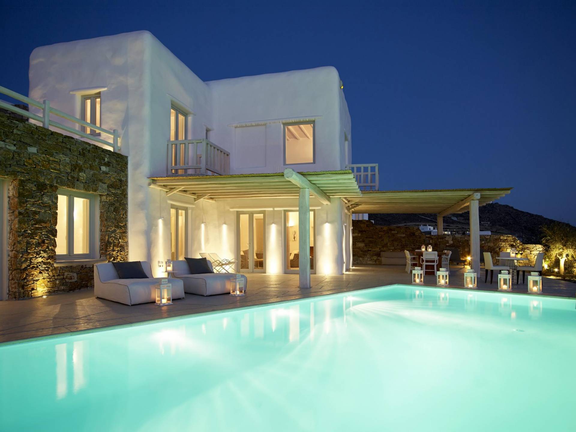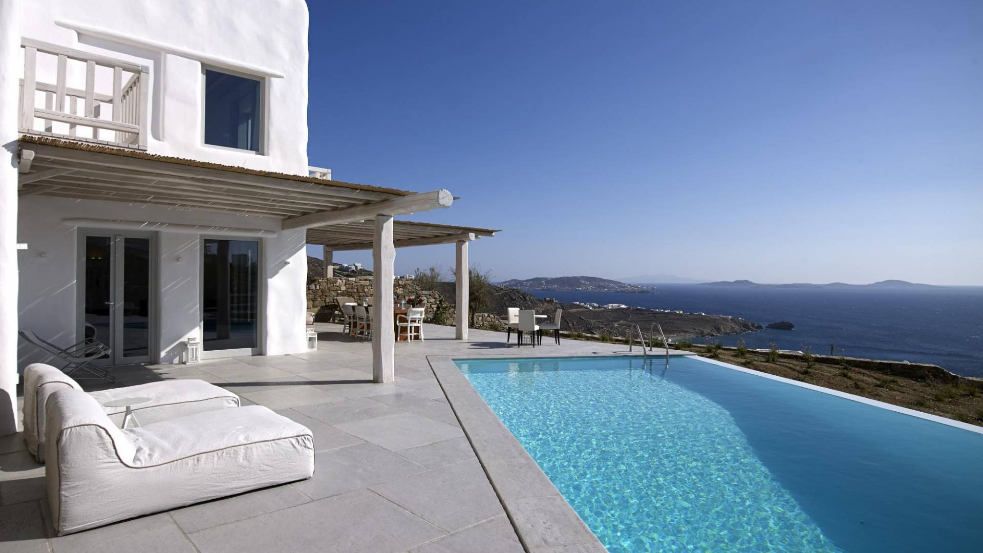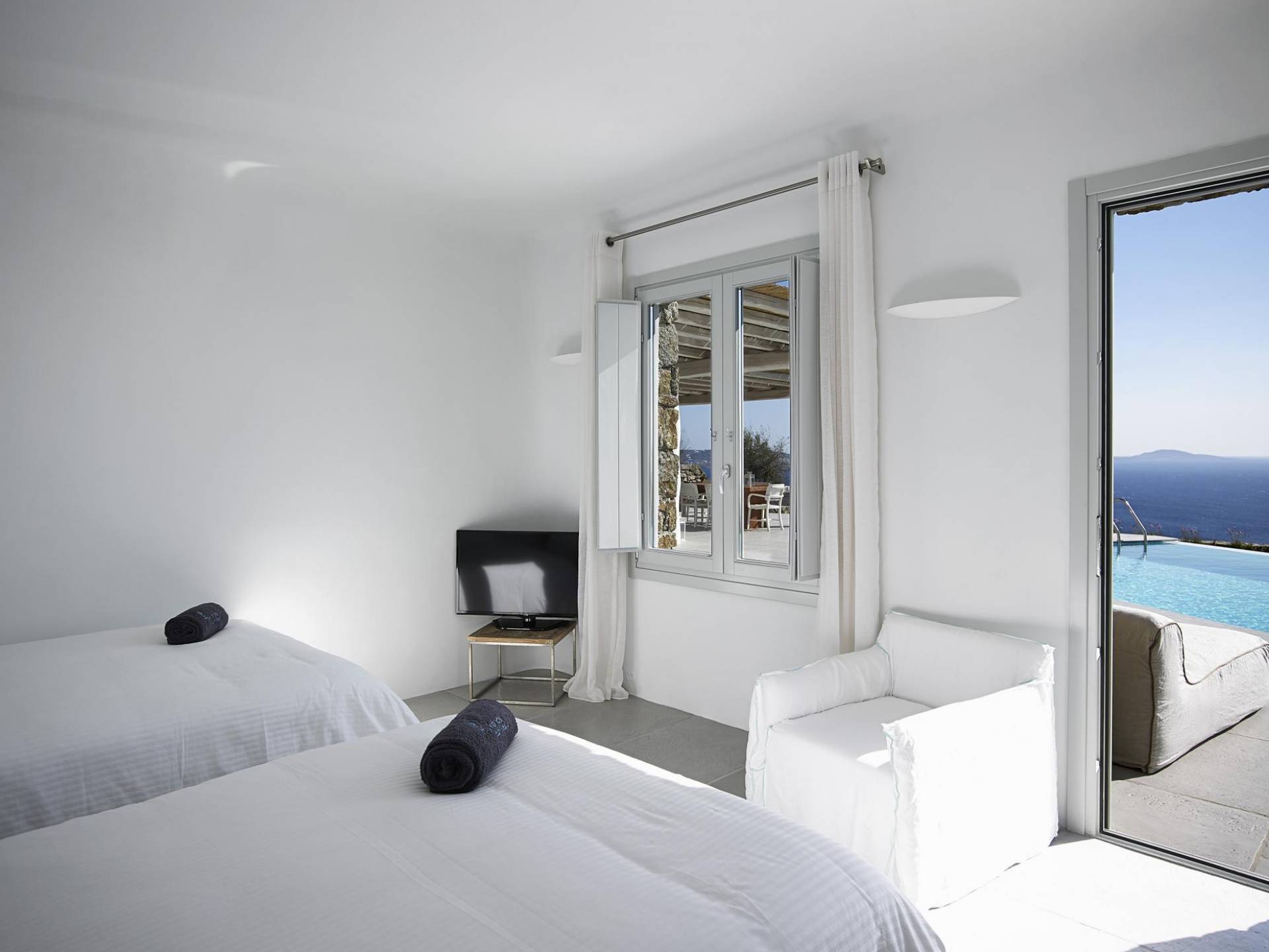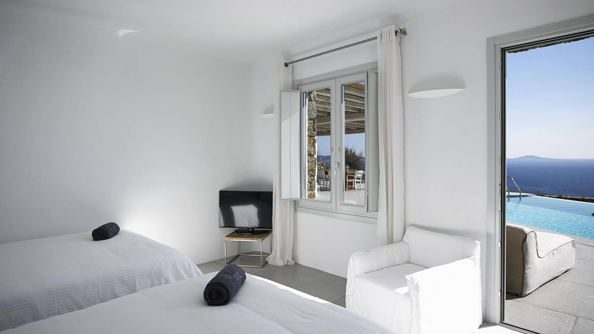 Недавно построенные роскошные виллы Mykonos Ammos расположены в районе Хулакия, в 5 минутах езды от центра города острова и всего в 800 метрах от ближайшего пляжа Агиос Стефанос. Архитектура и дизайн интерьера выполнены в традиционном кикладском стиле и отличаются минималистским шиком, но имеют особый характер. Светлые, просторные и просторные гостиные, удобные обеденные зоны, полностью оборудованные современные кухни и ненавязчиво роскошные спальни с ванными комнатами предлагают элегантность, комфорт, функциональность и чувство благополучия. Подобранная вручную мебель и уникальные декоративные элементы дополняют изысканную, но уютную и непринужденную атмосферу. Все 3 виллы Mykonos Ammos имеют частные бассейны и открытые площадки, защищенные от северных ветров и окруженные средиземноморскими садами, так что вы можете наслаждаться отдыхом в своем собственном раю. Из каждой виллы открывается потрясающий вид на море, так что вы можете смотреть на остров Делос или любоваться великолепным огненным закатом над Эгейским морем.
