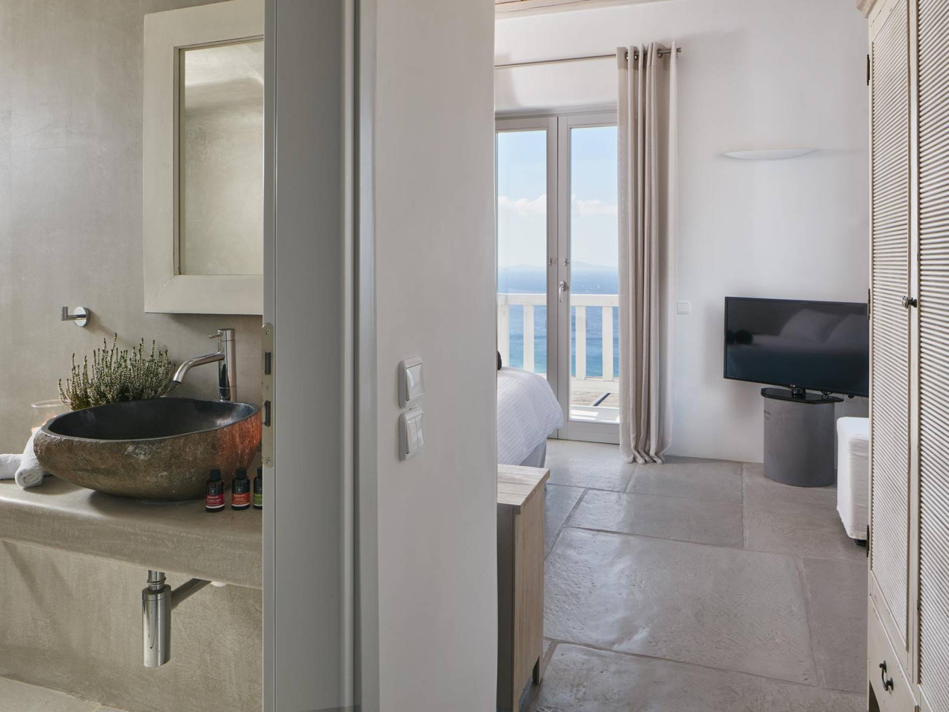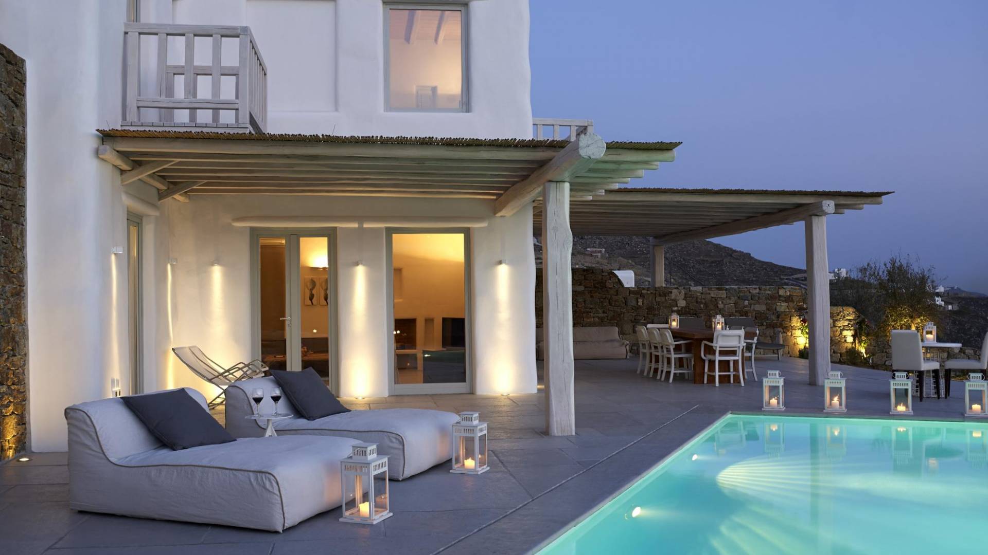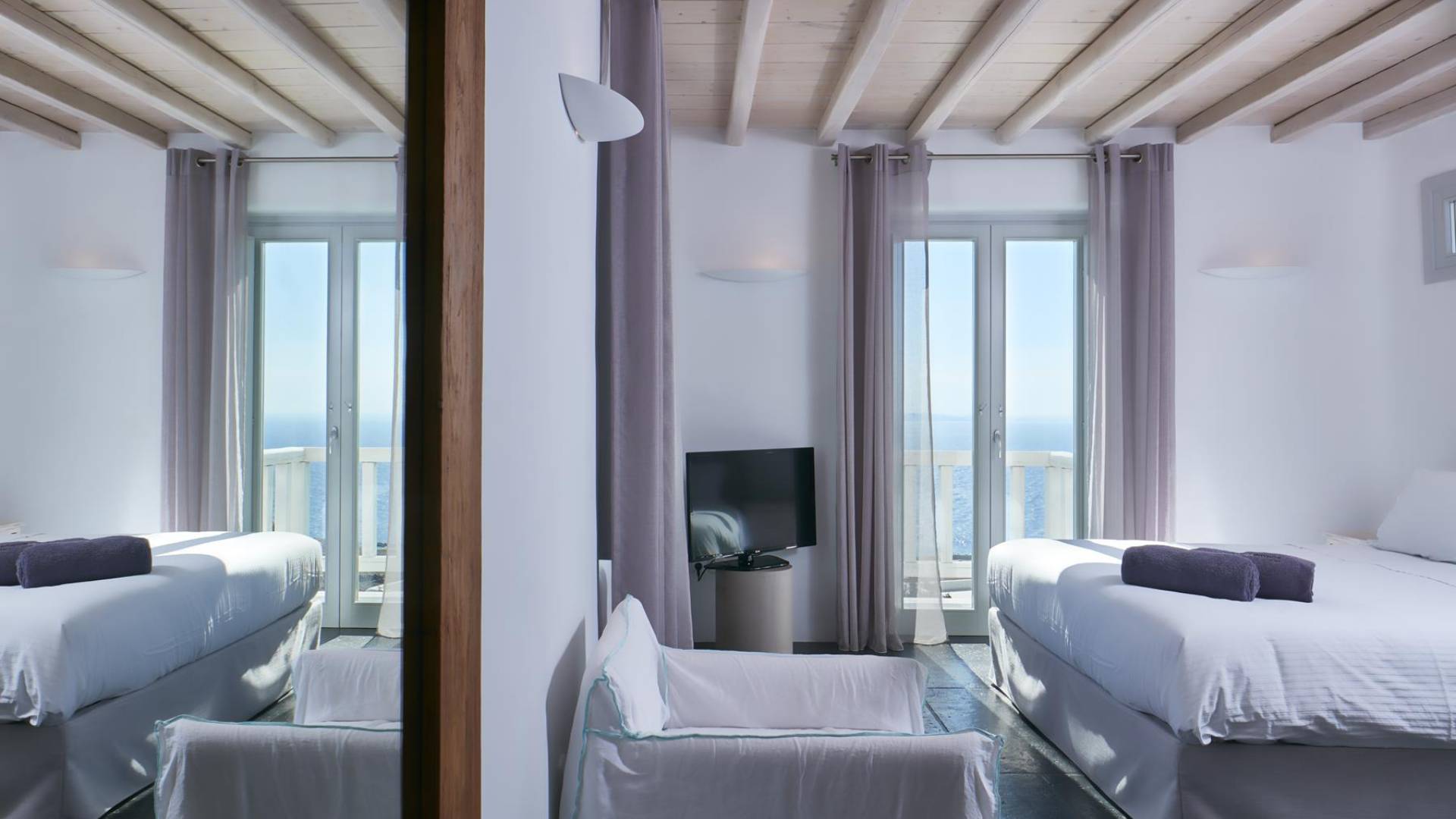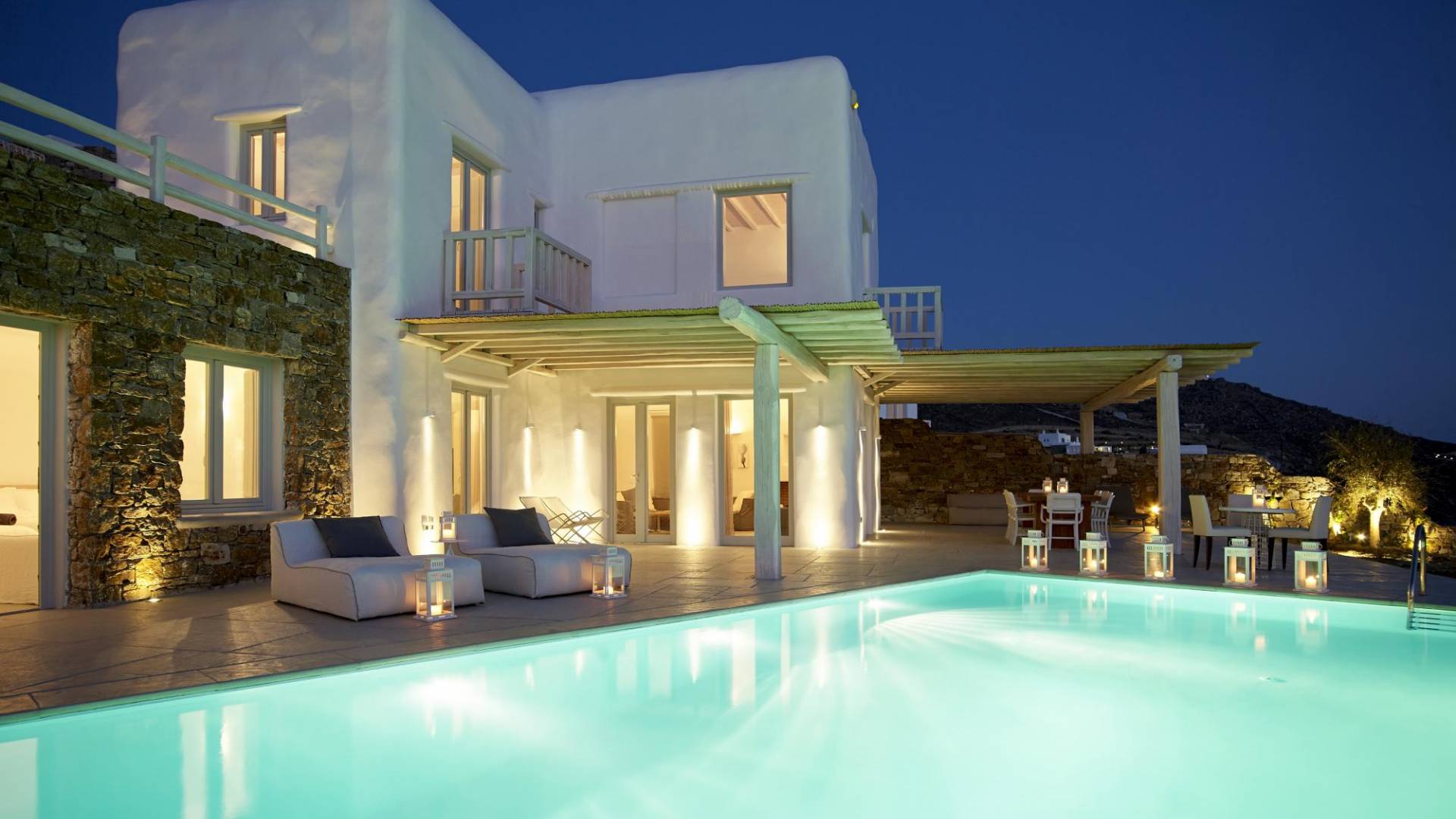 Недавно построенные роскошные виллы Mykonos Ammos расположены в районе Хулакия, в 5 минутах езды от центра города острова и всего в 800 метрах от ближайшего пляжа Агиос Стефанос. Архитектура и дизайн интерьера выполнены в традиционном кикладском стиле и отличаются минималистским шиком, но имеют особый характер. Светлые, просторные и просторные гостиные, удобные обеденные зоны, полностью оборудованные современные кухни и ненавязчиво роскошные спальни с ванными комнатами предлагают элегантность, комфорт, функциональность и чувство благополучия. Подобранная вручную мебель и уникальные декоративные элементы дополняют изысканную, но уютную и непринужденную атмосферу. Все 3 виллы Mykonos Ammos имеют частные бассейны и открытые площадки, защищенные от северных ветров и окруженные средиземноморскими садами, так что вы можете наслаждаться отдыхом в своем собственном раю. Из каждой виллы открывается потрясающий вид на море, так что вы можете смотреть на остров Делос или любоваться великолепным огненным закатом над Эгейским морем.