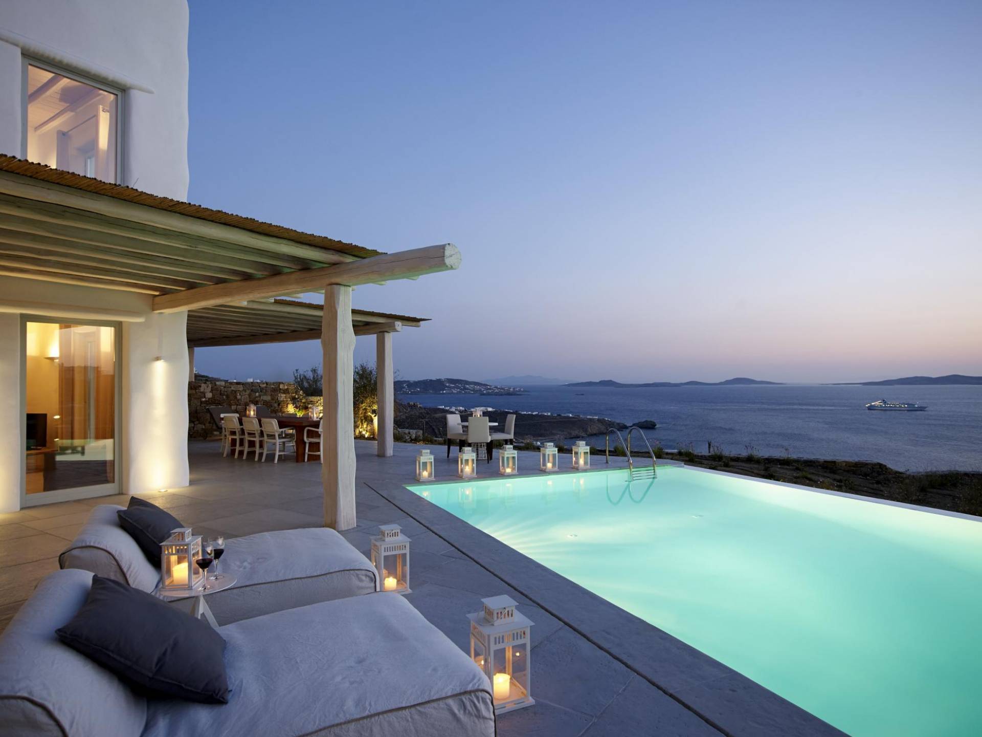 Наслаждайтесь эксклюзивным кикладским домом с элегантностью и роскошью бутик-виллы на Миконосе. Виллы Mykonos Ammos Villas, построенные на вершине холма, предлагают идеальное место для летнего отдыха, все с пейзажными бассейнами, захватывающим видом на синее Эгейское море и впечатлениями сверху. Роскошь заключается в мельчайших деталях, представляющих восхитительный пейзаж естественной красоты, безупречный личный сервис 5-звездочного отеля, спокойную атмосферу вдали от толпы. Ожидайте невозможного, мечтательного отдыха в уединенном далеком месте на острове Миконос, настоящего летнего блаженства!