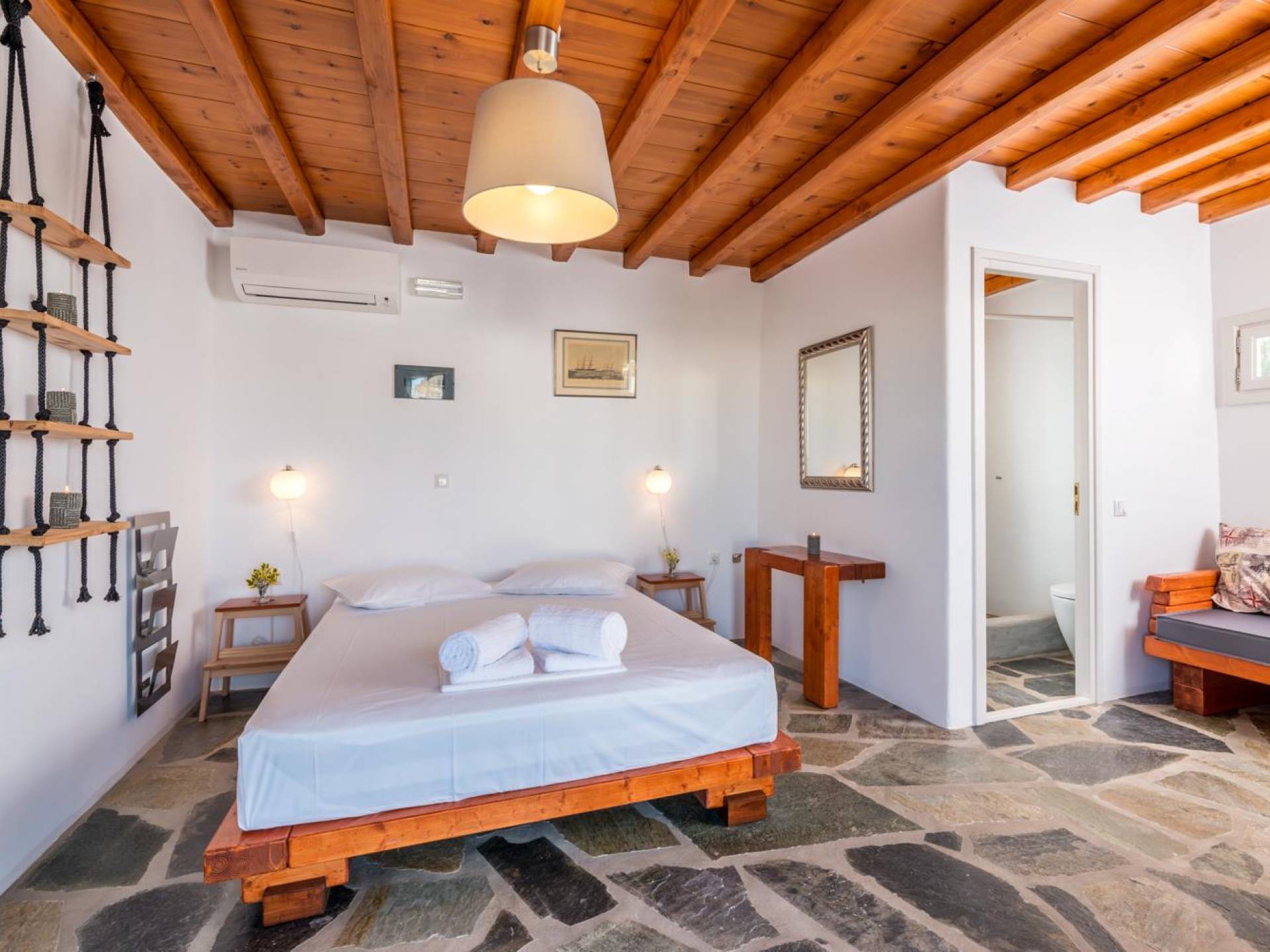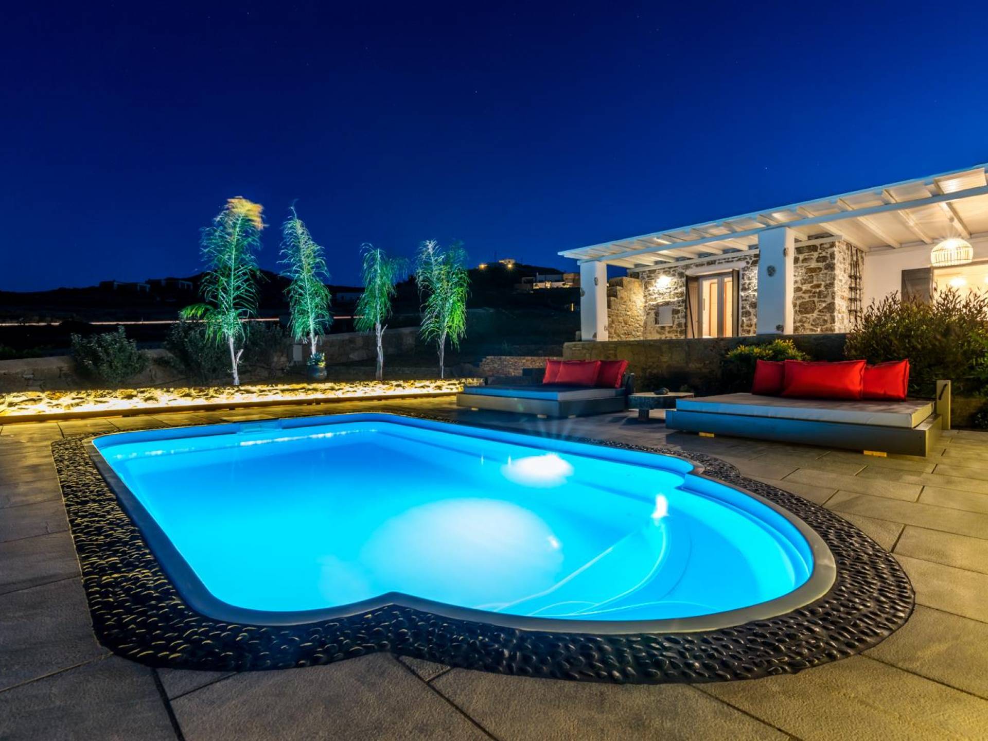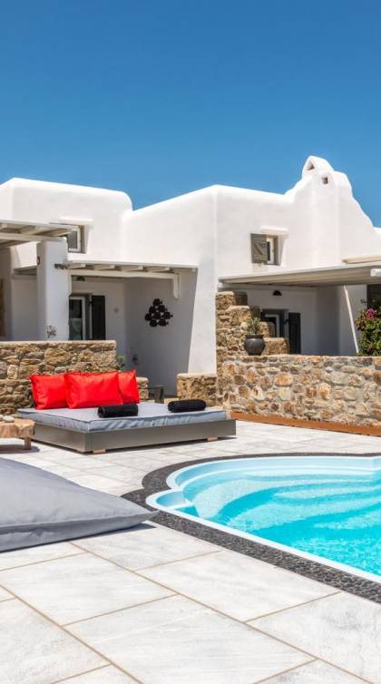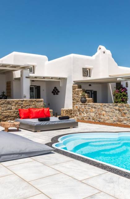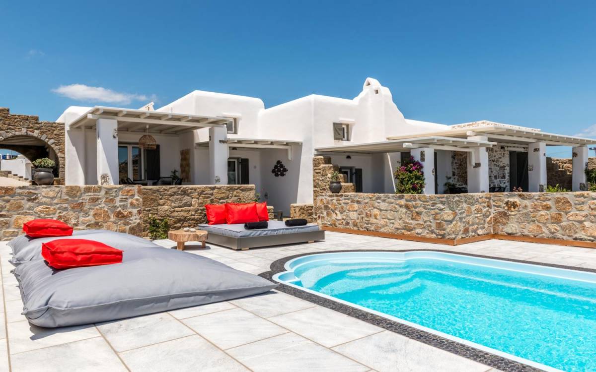 Aurora Mykonos Villas II - это комбинация двух одинаковых вилл с частными бассейнами, каждая из которых может вместить до 12 человек. Полностью оборудован плазменным ТВ WI-FI, электронным кондиционером, бытовой техникой, современной ванной и товарами для сна. В каждой из этих изысканных вилл преобладает кикладский свет, сочетающийся с традициями, минималистичным дизайном и современными удобствами. Красивое оформление с деревянными балками, мебель ручной работы, удобные кресла и великолепные столы создают шикарную расслабляющую обстановку.