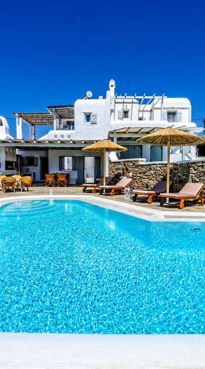 Вилла Lucia Mykonos находится в тихом районе Калафатис, менее чем в 2 км от пляжа. Являясь частью комплекса автономных вилл, он сочетает в себе традиционную миконскую архитектуру с роскошью современных удобств. Вилла может принять до 10 гостей по специальной договоренности.