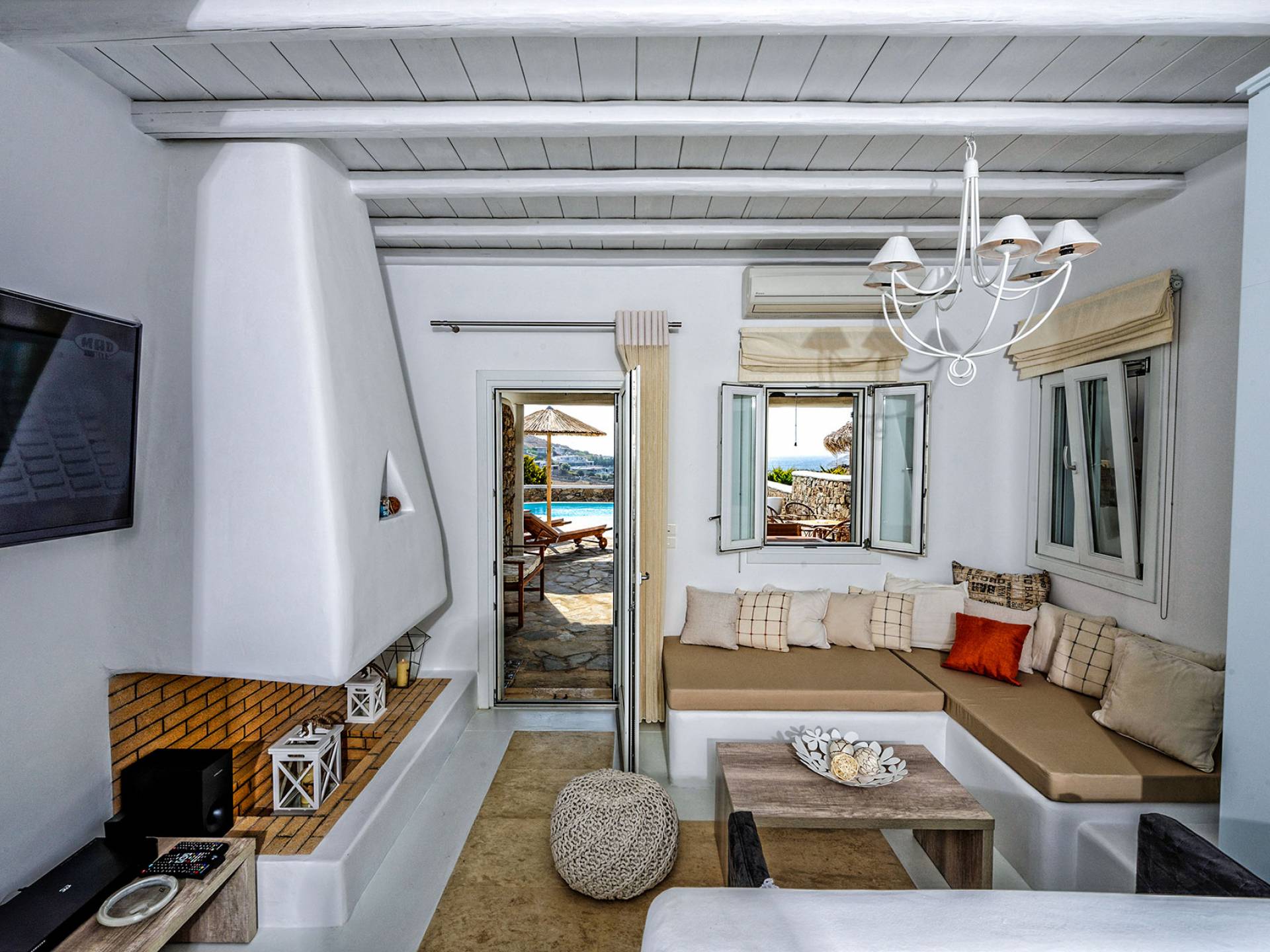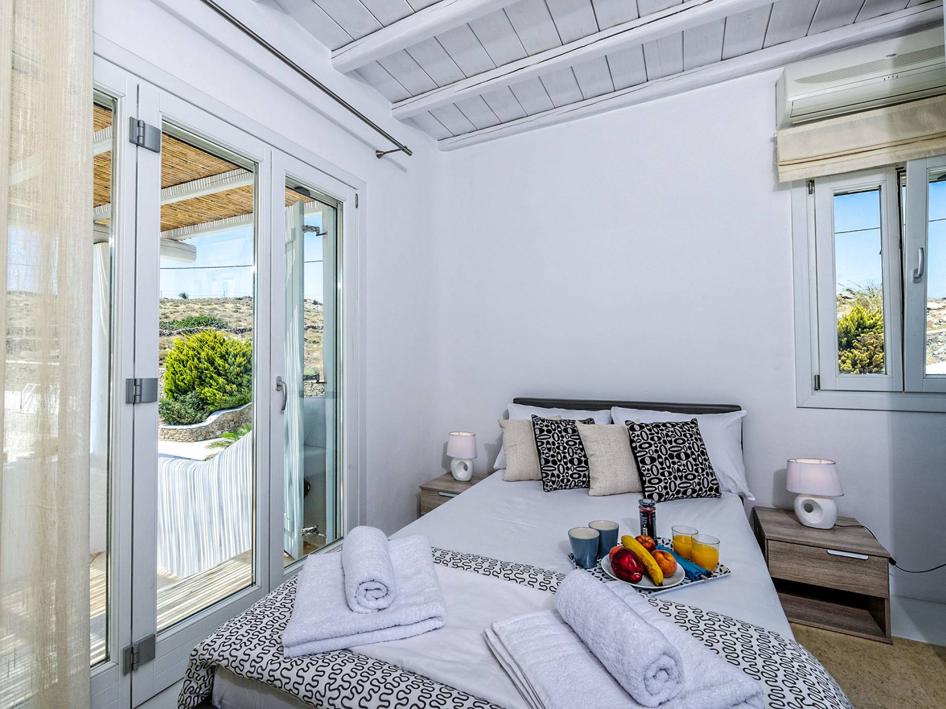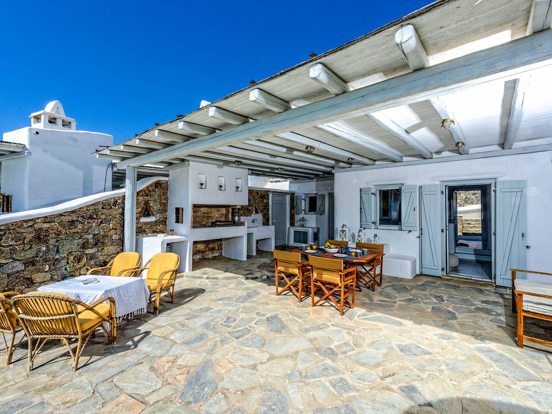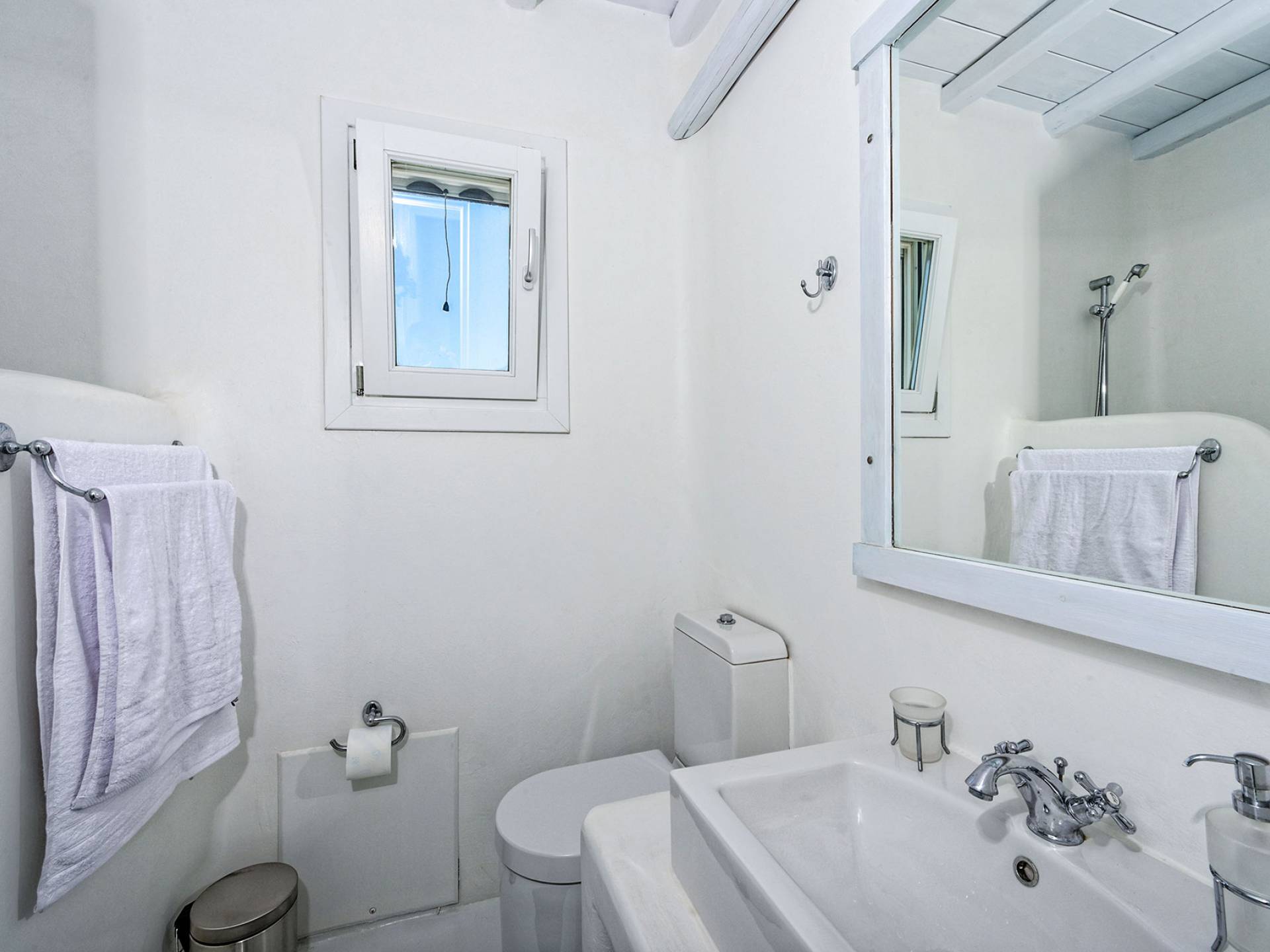 На первом уровне находятся гостиная, полностью оборудованная открытая кухня и обеденная зона. На верхнем уровне находится главная спальня со своей ванной и собственной верандой с видом на море. На подземном уровне расположены три спальни с двуспальными кроватями, две ванные комнаты, небольшая кухня и прачечная. Все комнаты полностью кондиционированы. Хорошо спроектированная открытая площадка, расположенная перед виллой, представляет собой большой современный бассейн и большую зону отдыха вокруг него. Кроме того, под элегантной деревянной беседкой есть встроенное барбекю, где гости могут приготовить себе еду, любуясь чудесным видом на море. Lucia Villa Mykonos идеально подходит для семей, пар и друзей, которые хотят насладиться всем, что может предложить Миконос, и при этом иметь возможность уединиться в более уединенной обстановке.