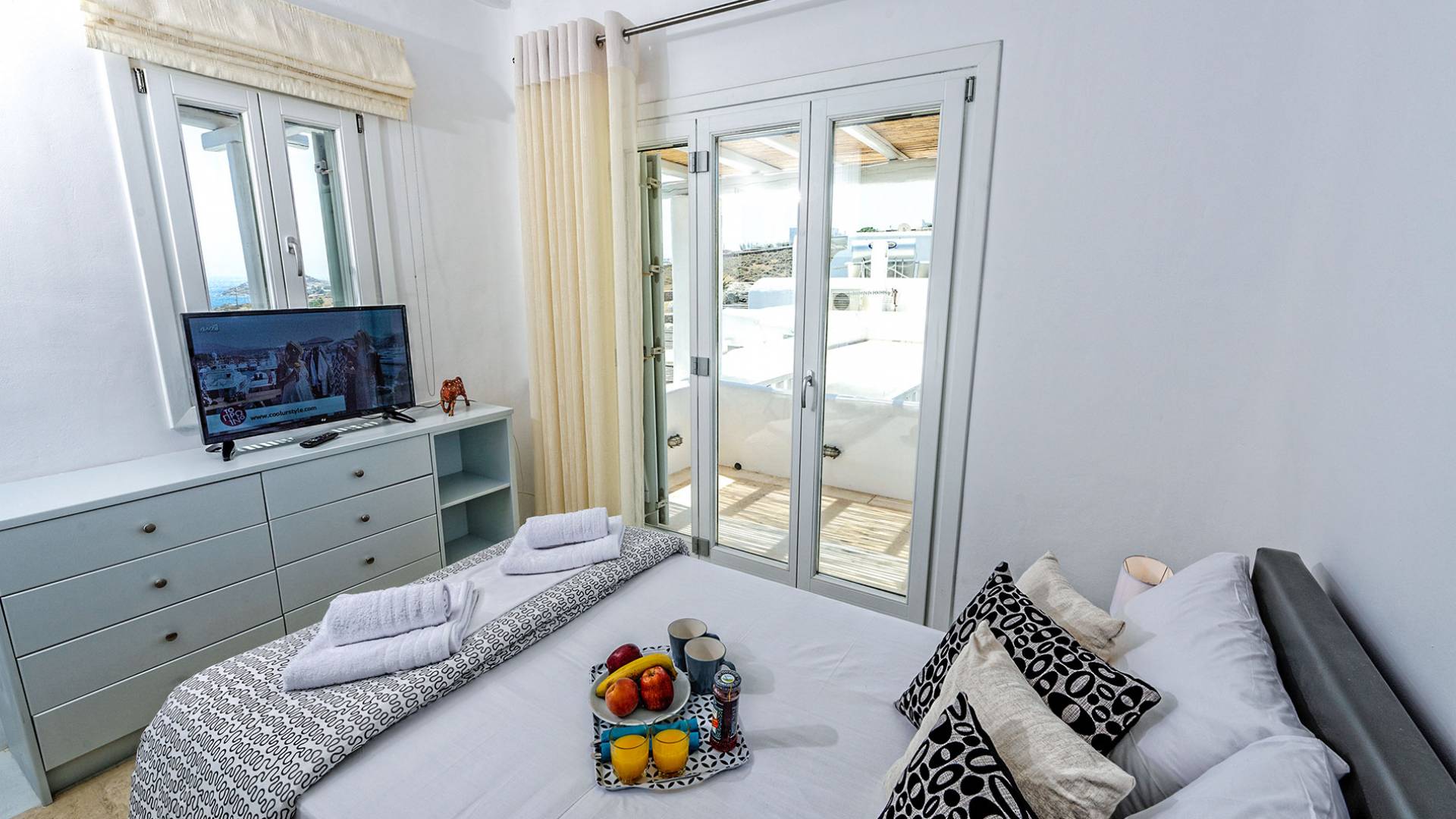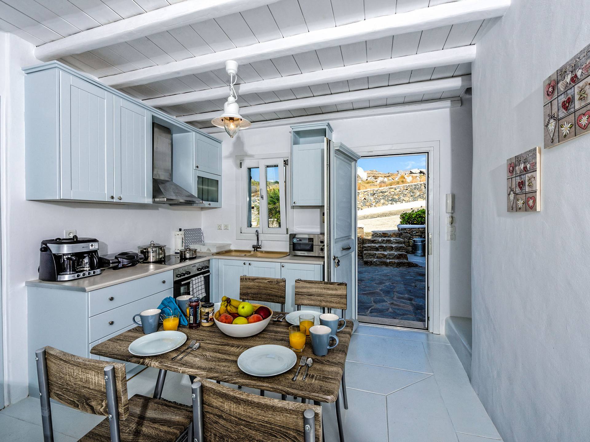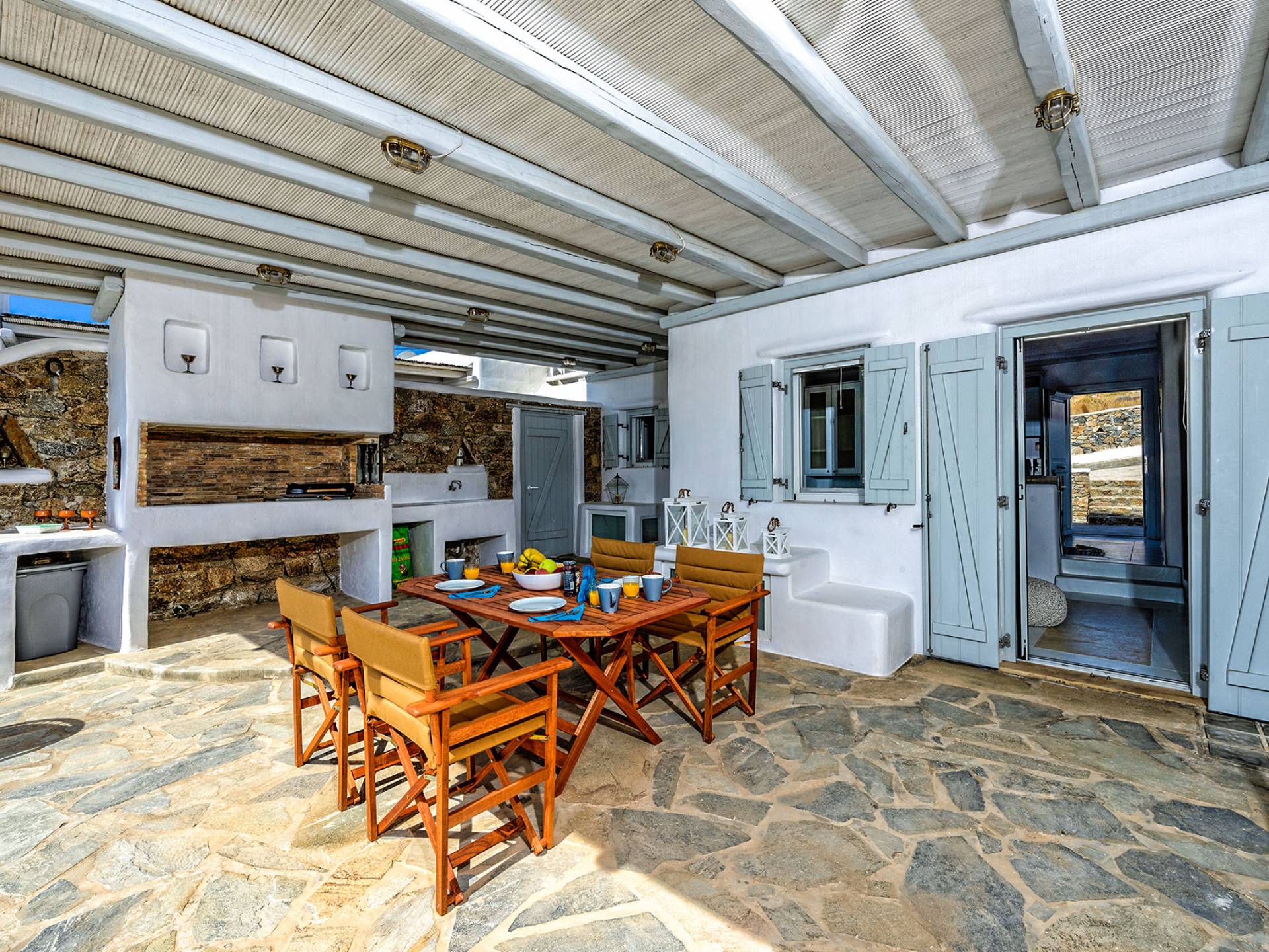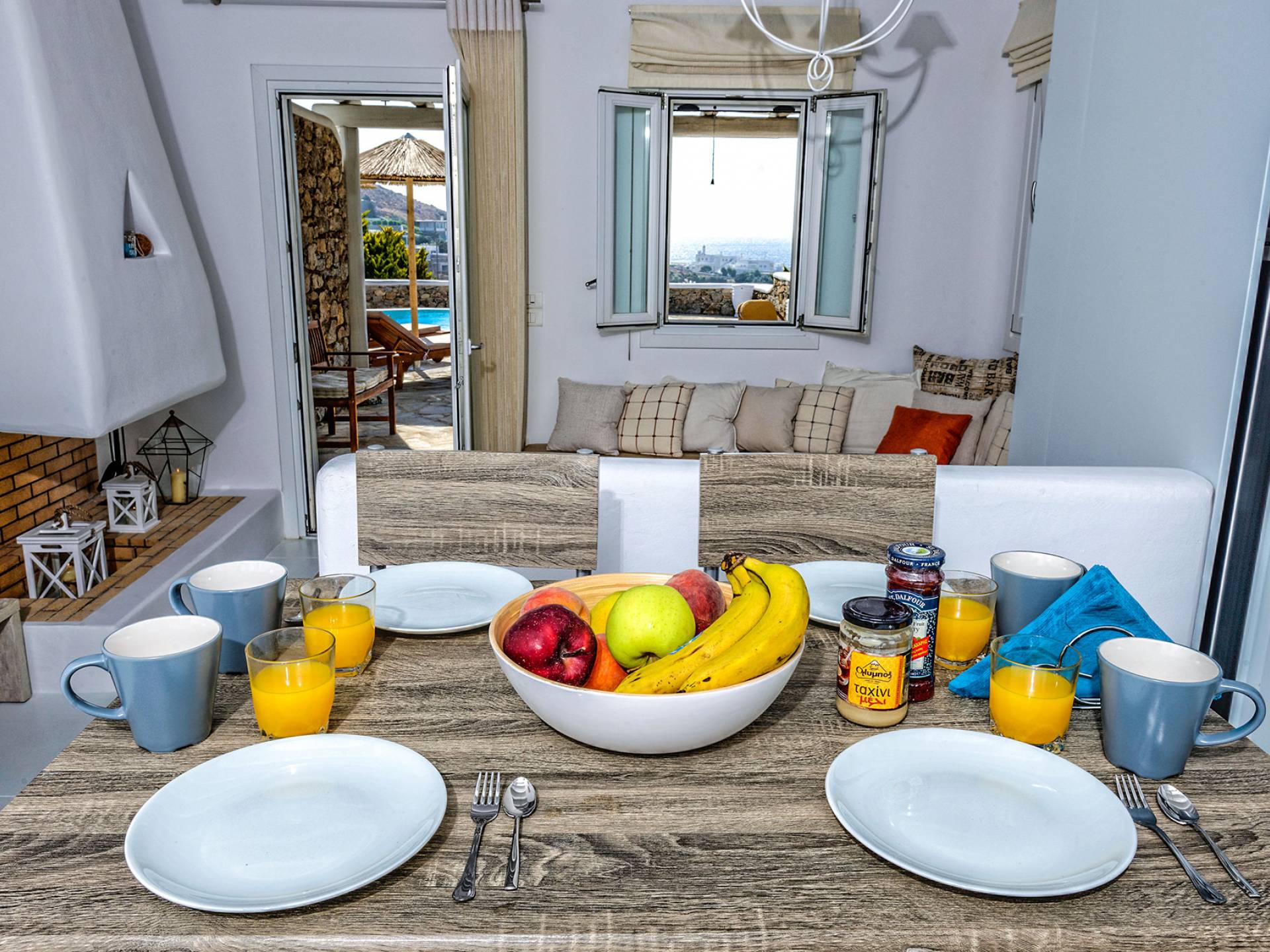 На первом уровне находятся гостиная, полностью оборудованная открытая кухня и обеденная зона. На верхнем уровне находится главная спальня со своей ванной и собственной верандой с видом на море. На подземном уровне расположены три спальни с двуспальными кроватями, две ванные комнаты, небольшая кухня и прачечная. Все комнаты полностью кондиционированы. Хорошо спроектированная открытая площадка, расположенная перед виллой, представляет собой большой современный бассейн и большую зону отдыха вокруг него. Кроме того, под элегантной деревянной беседкой есть встроенное барбекю, где гости могут приготовить себе еду, любуясь чудесным видом на море. Lucia Villa Mykonos идеально подходит для семей, пар и друзей, которые хотят насладиться всем, что может предложить Миконос, и при этом иметь возможность уединиться в более уединенной обстановке.