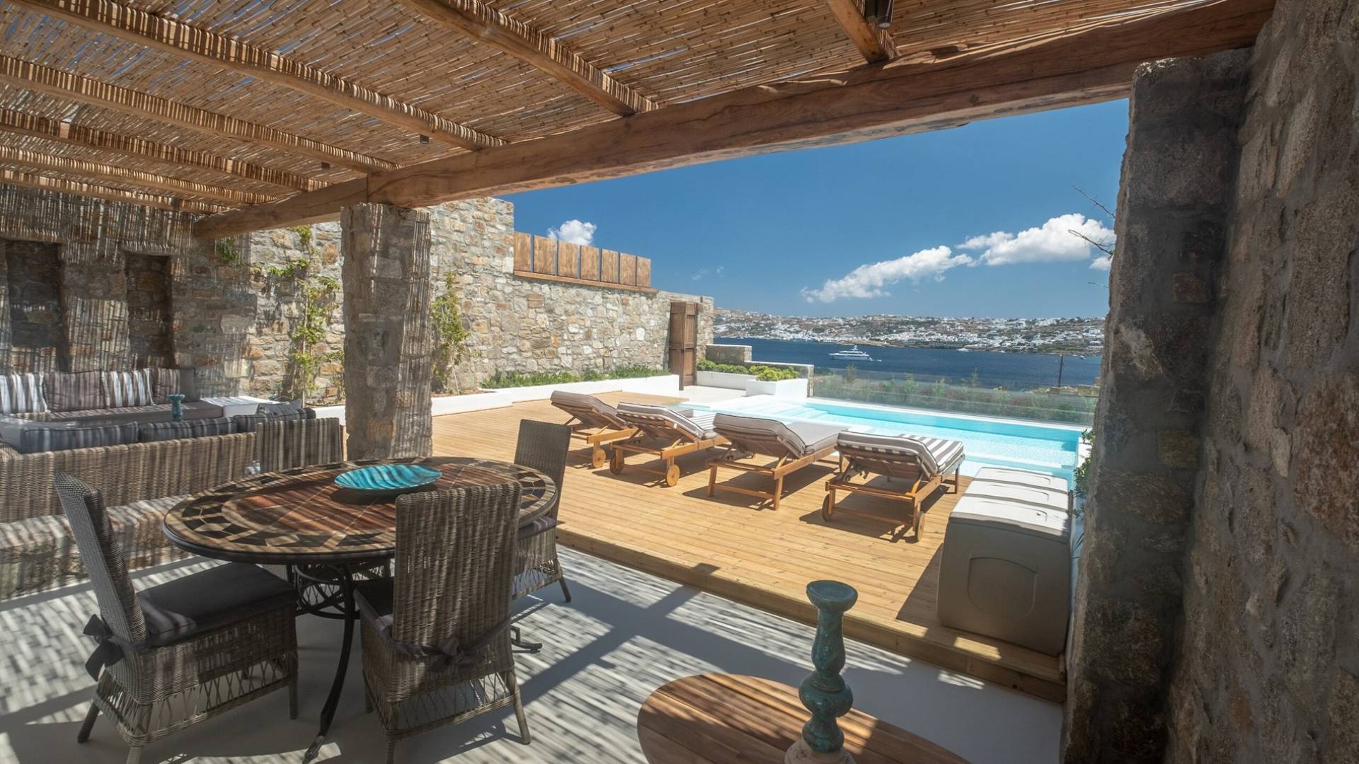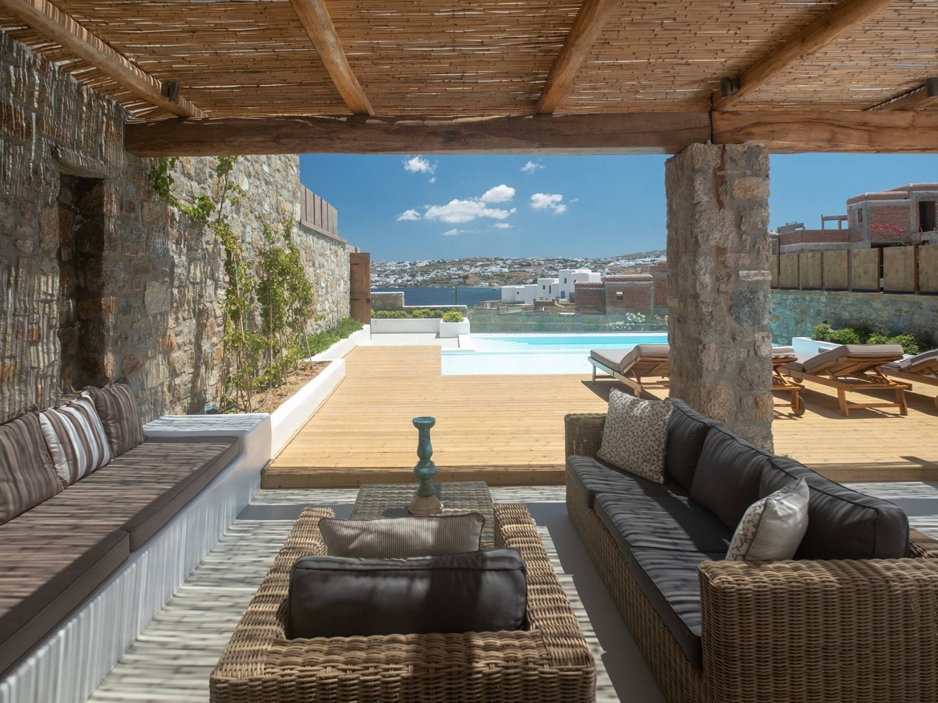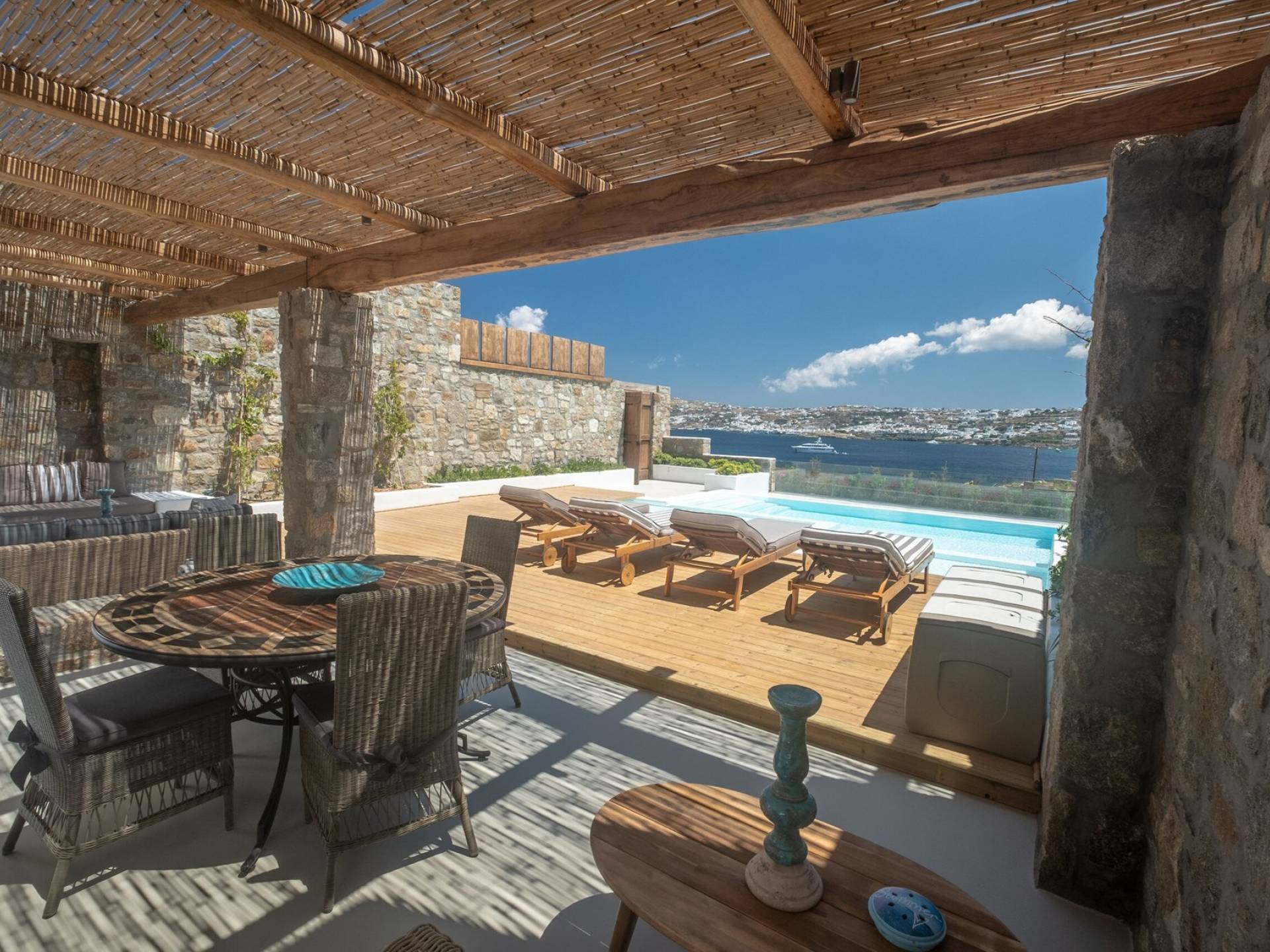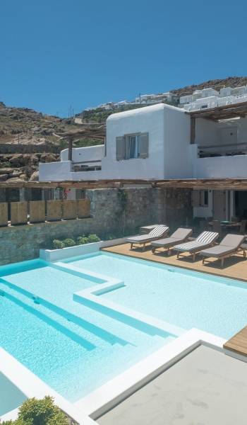 Вилла Maroon IΙΙ является частью нового жилого комплекса, который может похвастаться великолепным расположением на вершине холма Каналия, в тихом жилом районе недалеко от пляжа Орнос. С очаровательной веранды открывается потрясающий вид на Эгейское море, знаменитые ветряные мельницы и знаменитую Маленькую Венецию города Миконос.