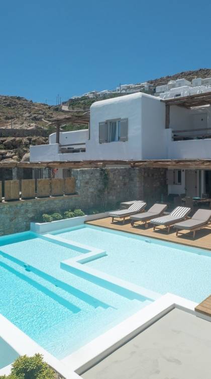 Эта восхитительная новая вилла имеет частный пейзажный бассейн с подогревом, из которого открывается вид на залив, и предлагает комфортабельное размещение в 2 главных спальнях с ванными комнатами, полностью оборудованной кухне и уютной гостиной. Все номера полностью звукоизолированы, чтобы обеспечить спокойный отдых в одном из самых великолепных мест Миконоса.