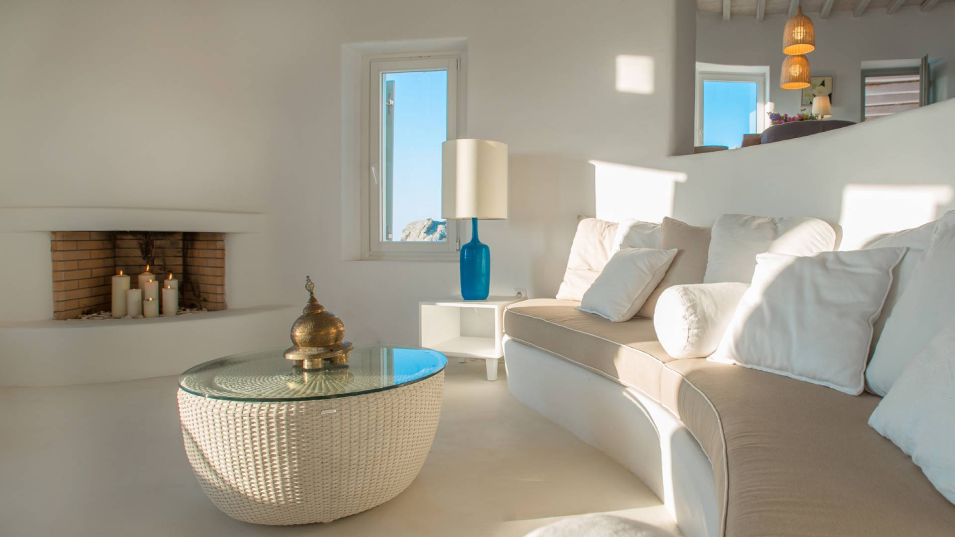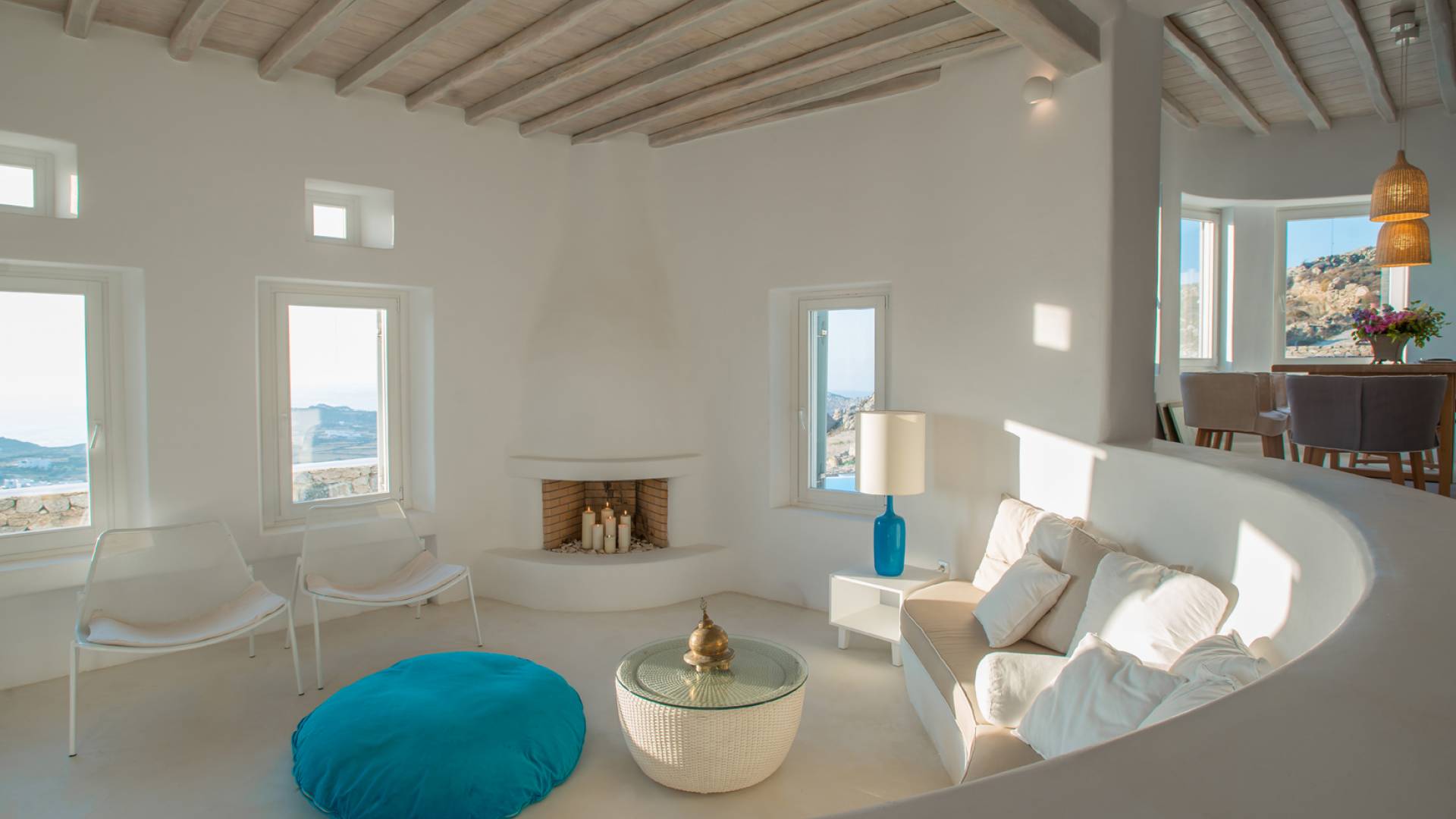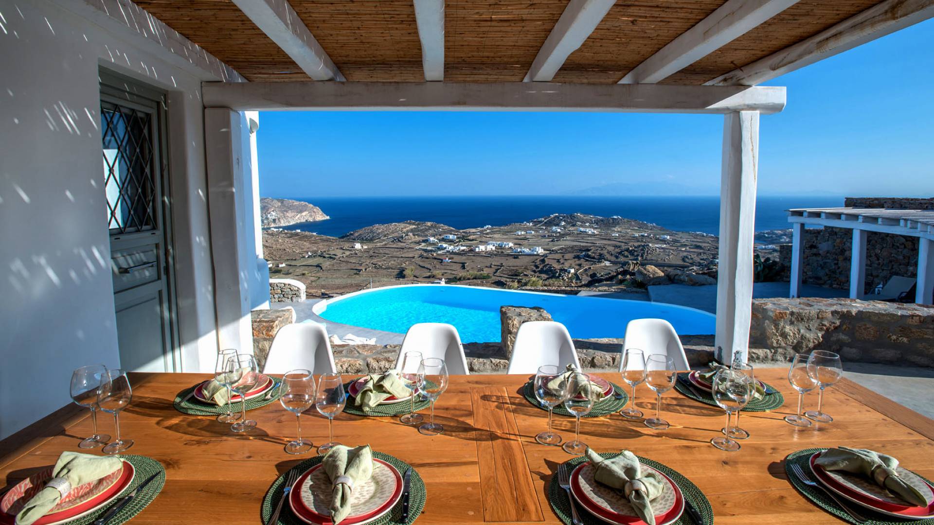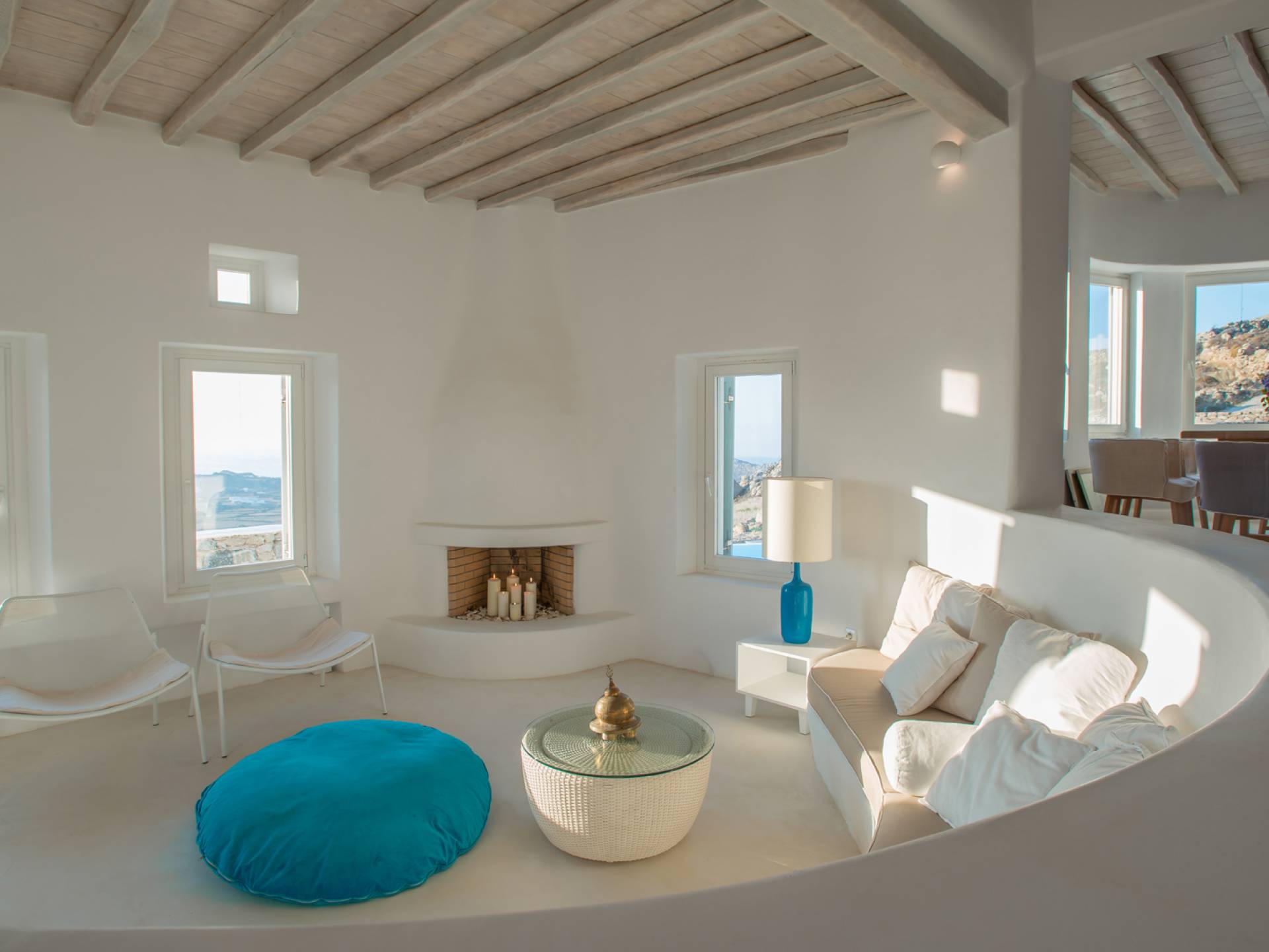 Velanos Villa Mykonos - это элегантная и просторная семейная вилла площадью около 450 квадратных метров (4 840 квадратных футов), выходящая на юг, в привилегированном защищенном от ветра месте на вершине холма Кунупас с захватывающим видом на Эгейское море. Он предлагает в общей сложности 6 спален и 5 ванных комнат и может вместить до 12 человек.