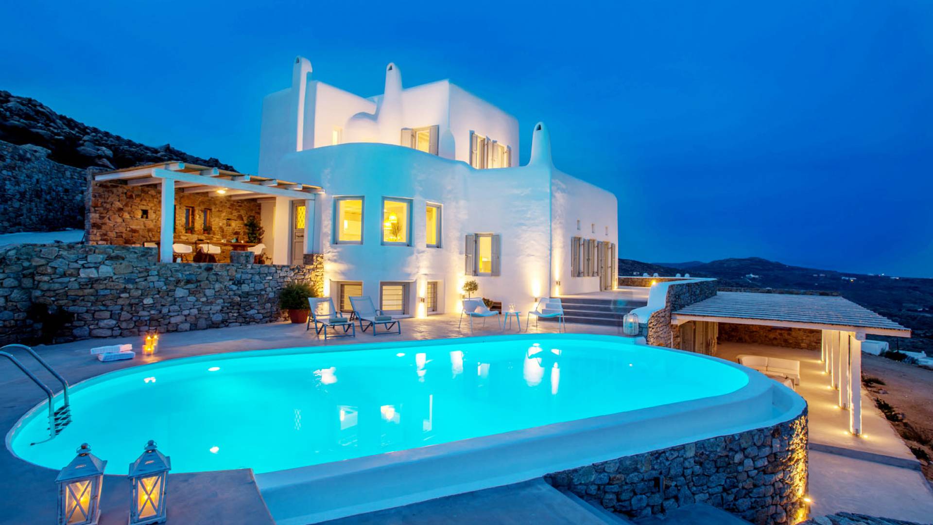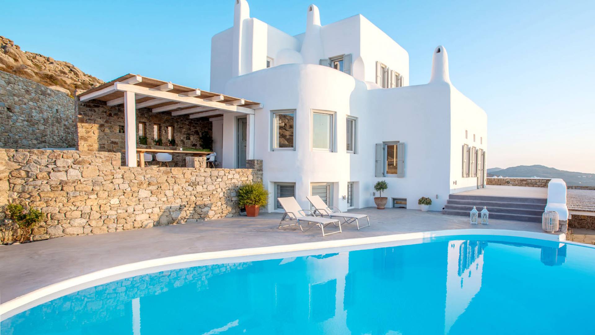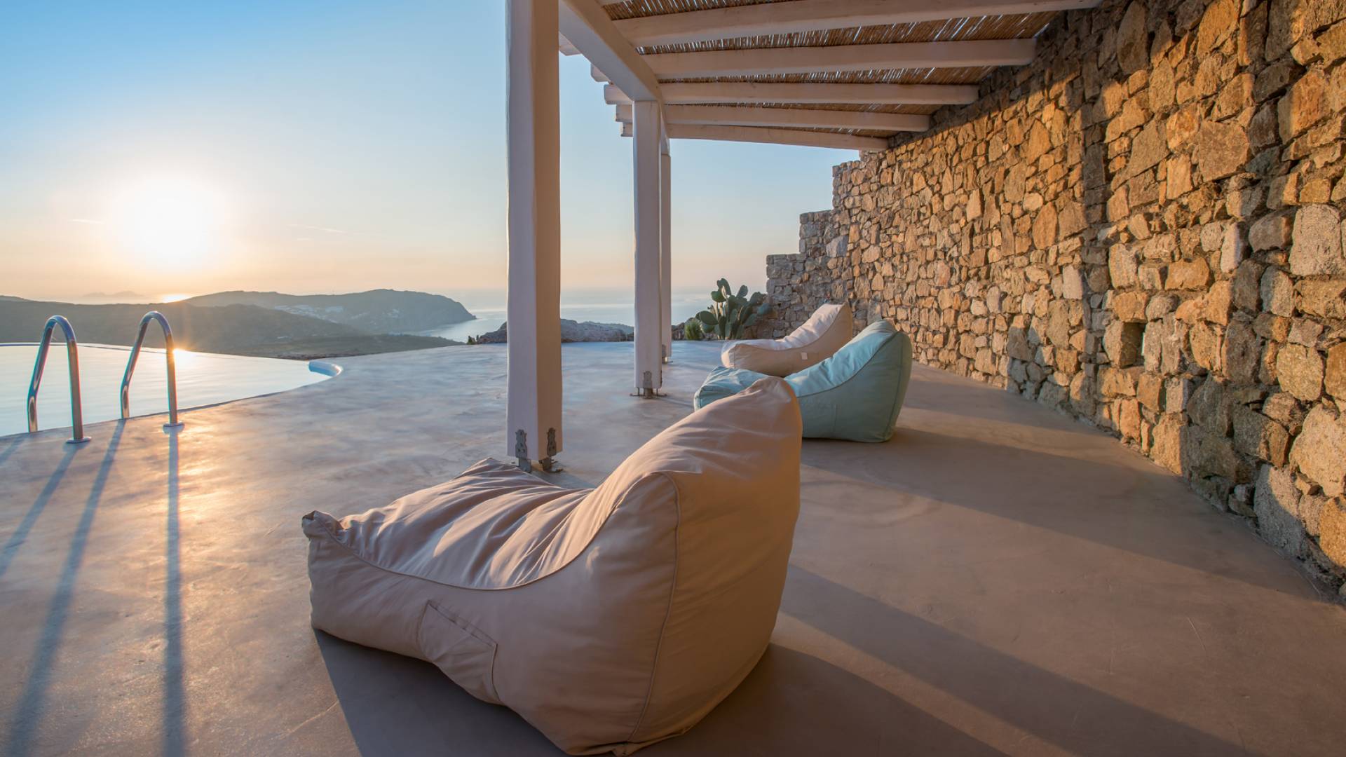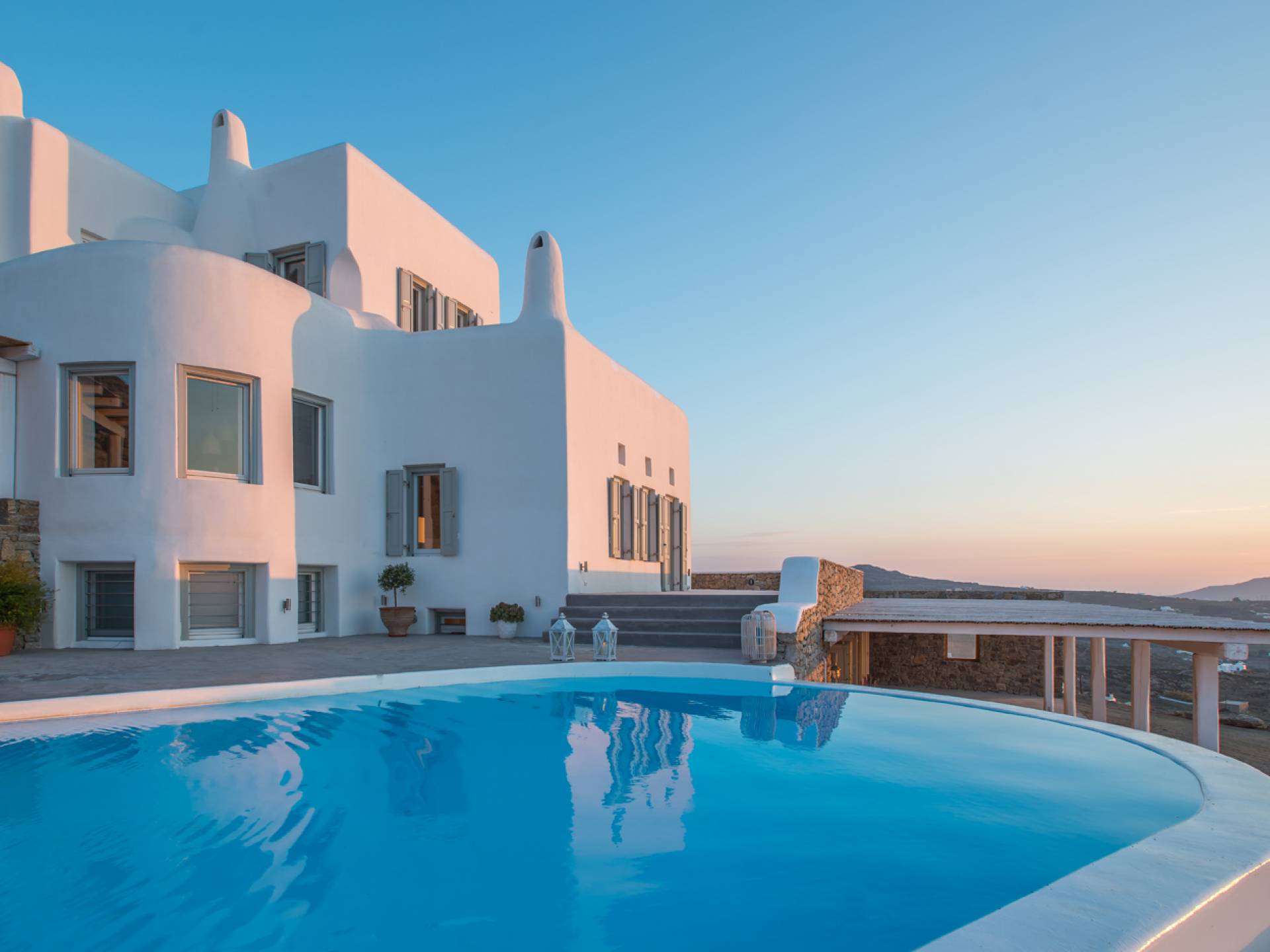 Веланос Вилла Миконос окружена скалистыми холмами и богатыми средиземноморскими травами, в которых царит истинный дух летней жизни. Элегантный пейзажный бассейн в сочетании с очень просторными террасами с удобной летней мебелью позволяет гостям наслаждаться греческим солнцем, а перголы создают освежающую тень.