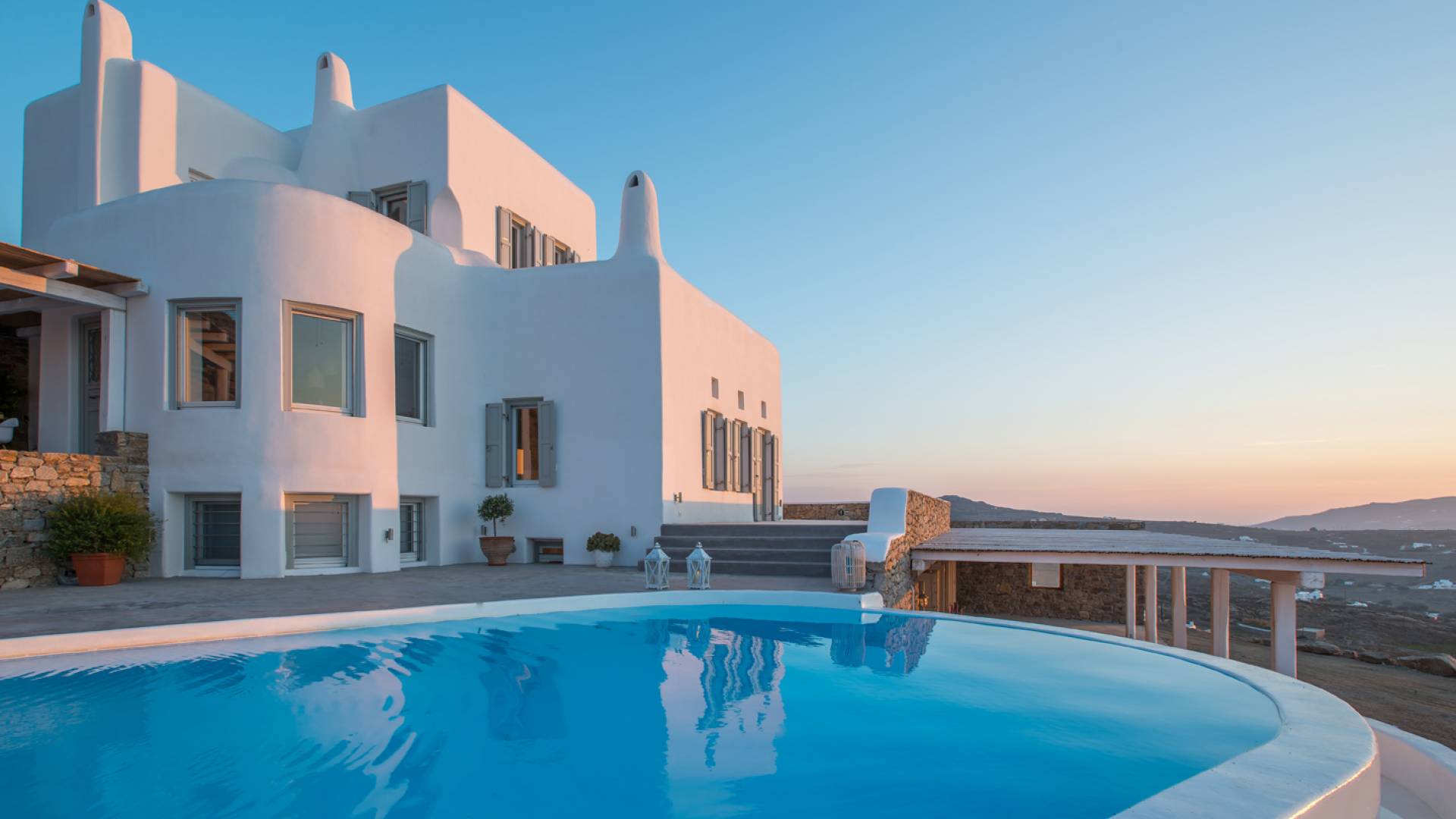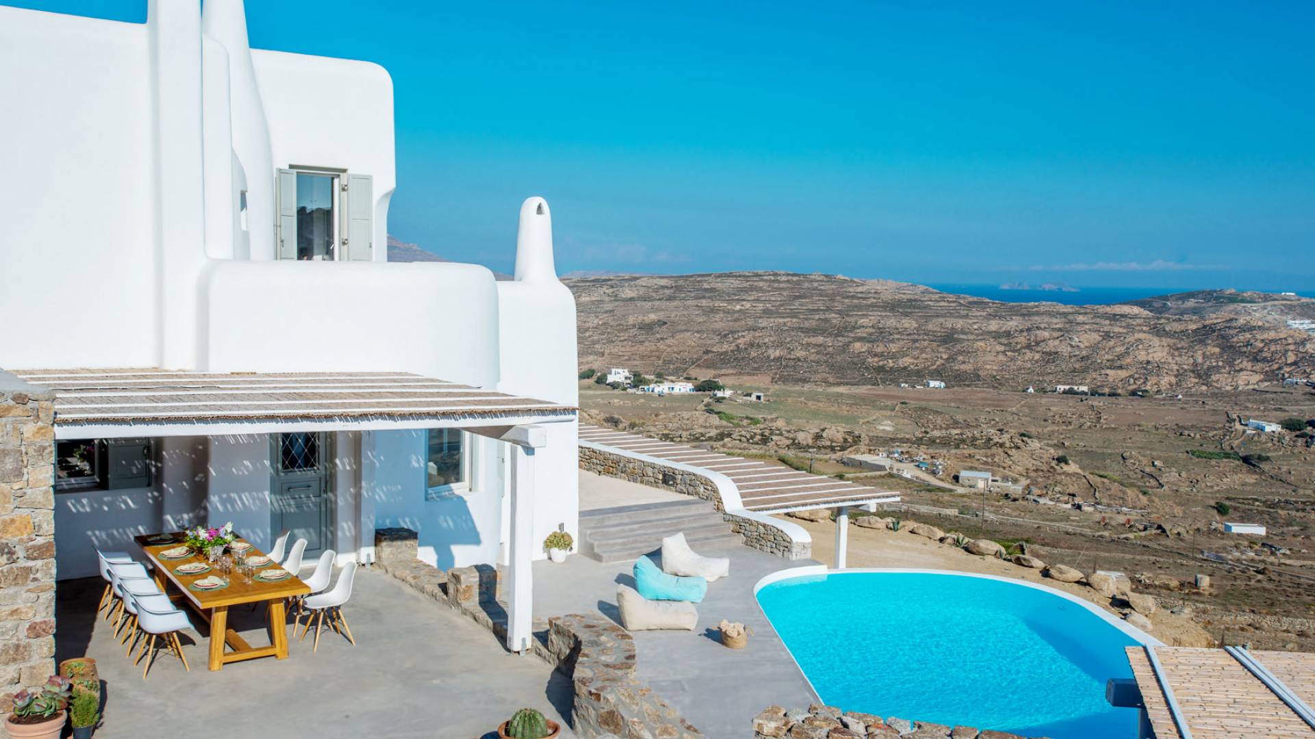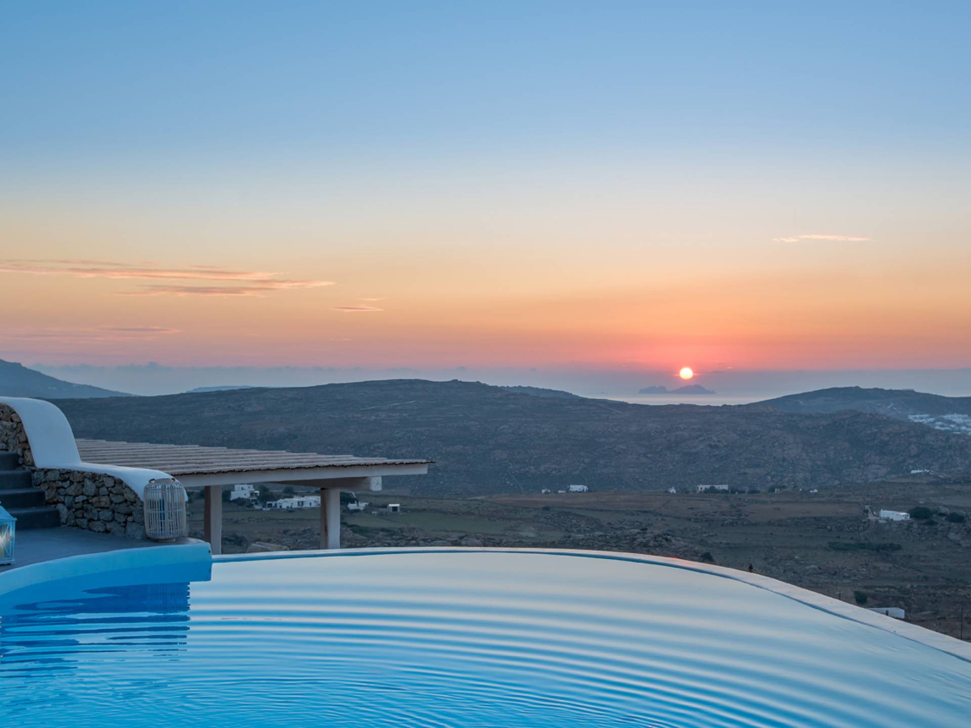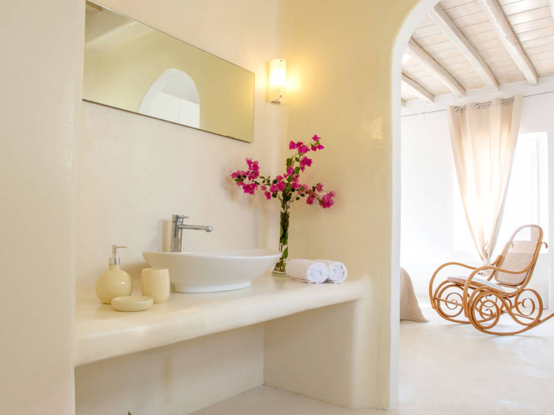 Веланос Вилла Миконос окружена скалистыми холмами и богатыми средиземноморскими травами, в которых царит истинный дух летней жизни. Элегантный пейзажный бассейн в сочетании с очень просторными террасами с удобной летней мебелью позволяет гостям наслаждаться греческим солнцем, а перголы создают освежающую тень.