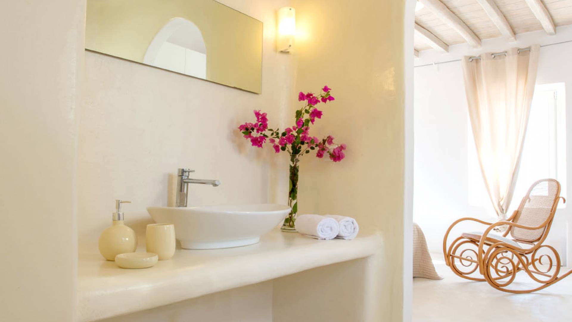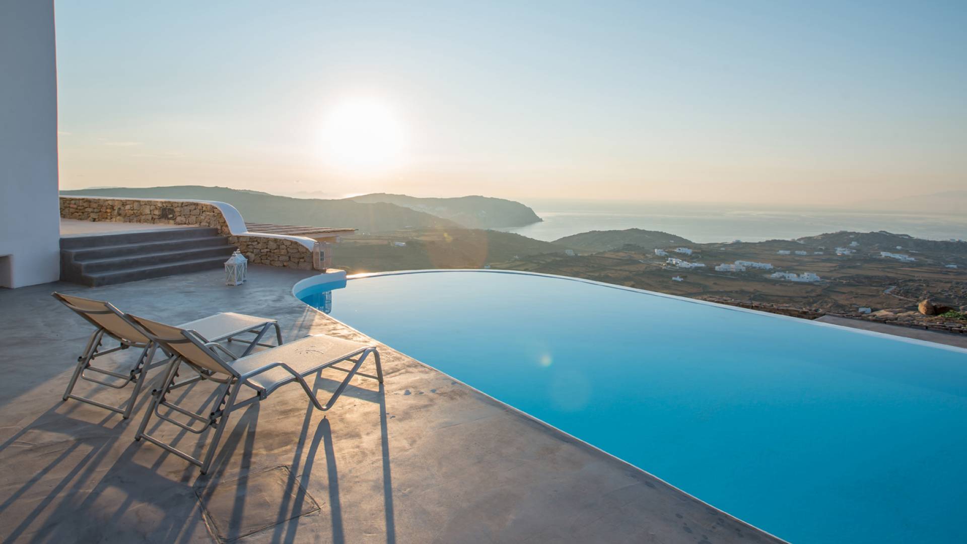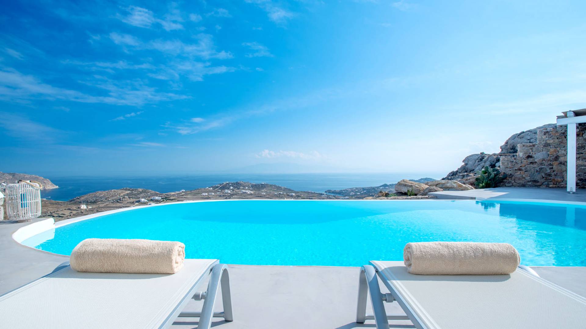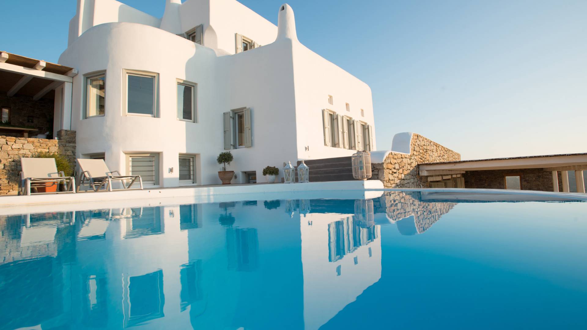 Веланос Вилла Миконос окружена скалистыми холмами и богатыми средиземноморскими травами, в которых царит истинный дух летней жизни. Элегантный пейзажный бассейн в сочетании с очень просторными террасами с удобной летней мебелью позволяет гостям наслаждаться греческим солнцем, а перголы создают освежающую тень.