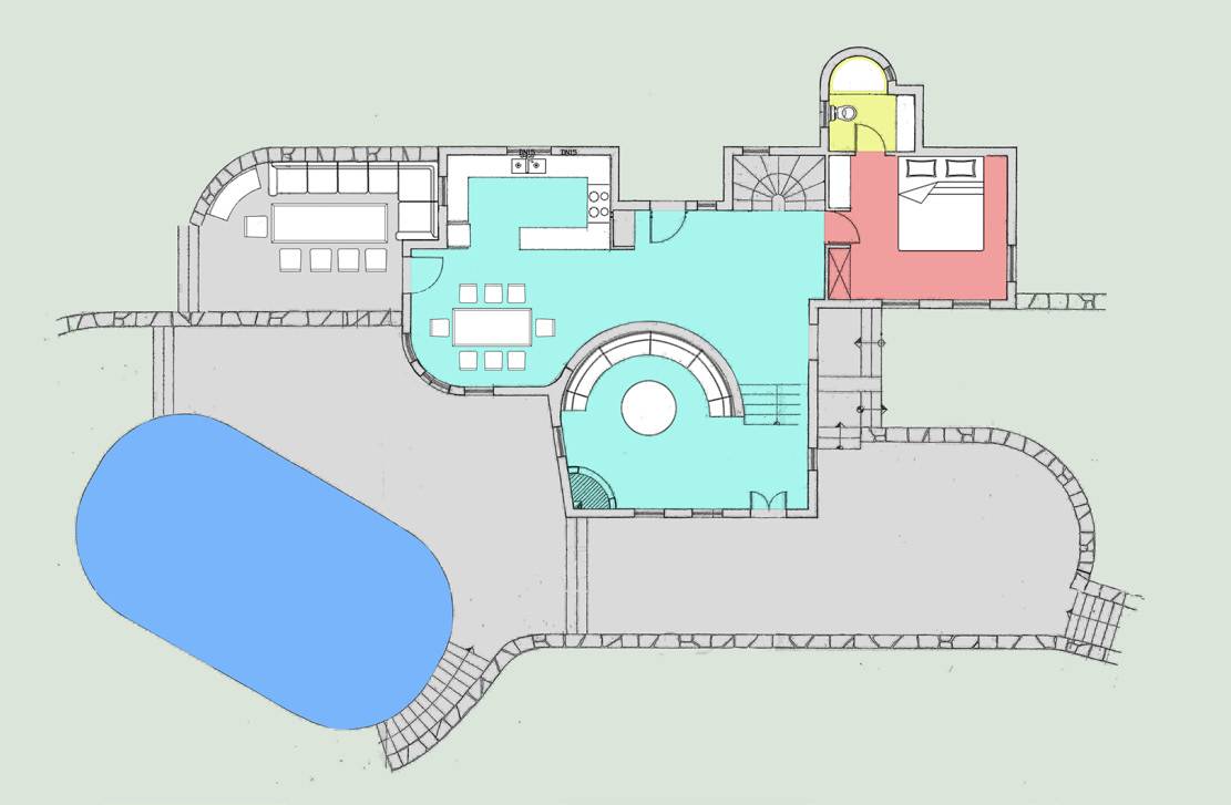 Хотя отель находится всего в 10 минутах езды от города, он предлагает спокойствие, уединение и потрясающие пейзажи. Минималистичный дизайн интерьера виллы удовлетворяет потребность гостей в отдыхе. Светлая гостиная, полностью оборудованная кухня открытой планировки и обеденная зона имеют прямой доступ к внешним лаундж-зонам и бассейну. Вторая уютная гостиная и еще одна кухня открытой планировки расположены на цокольном этаже гостевого дома.