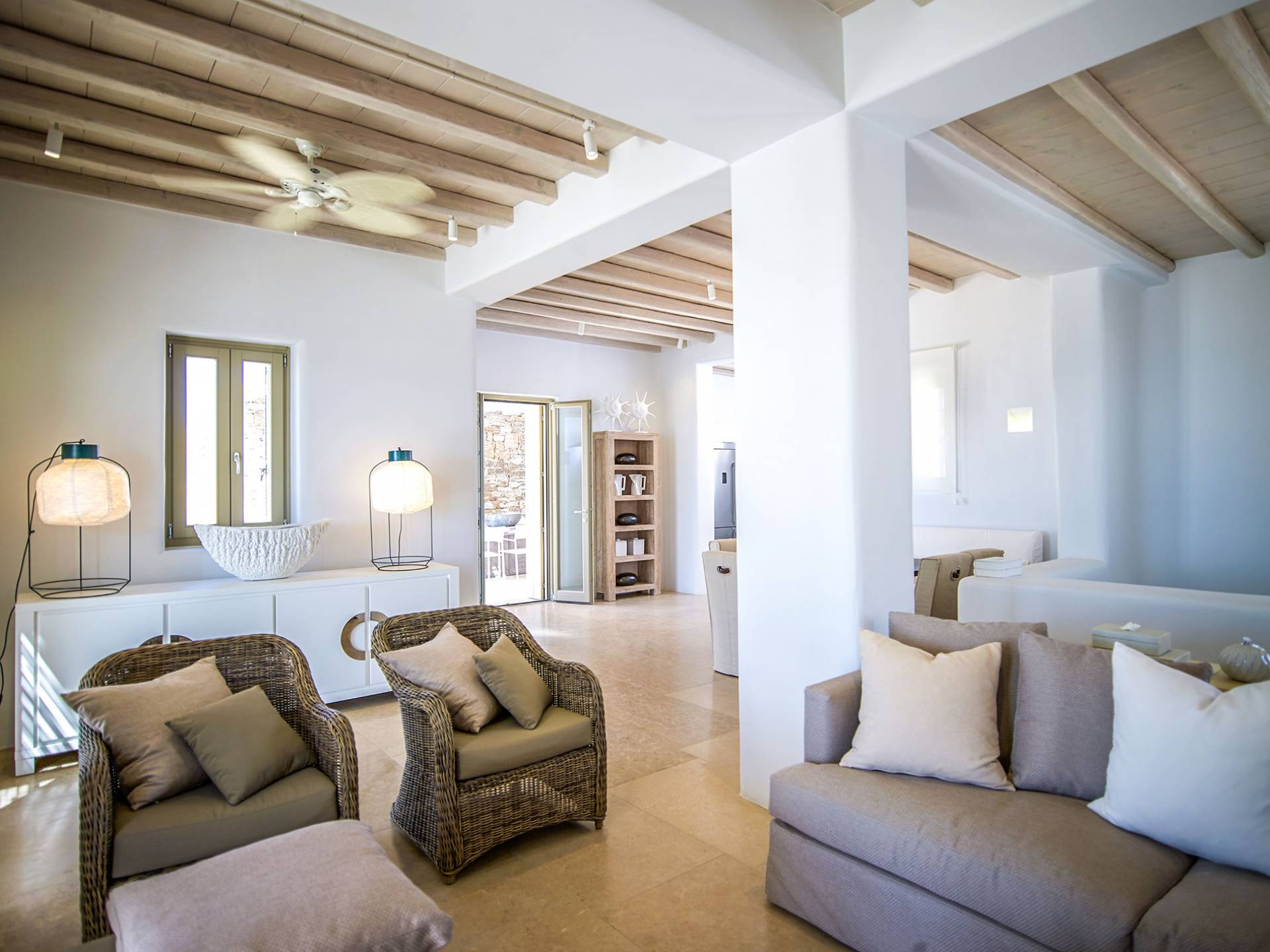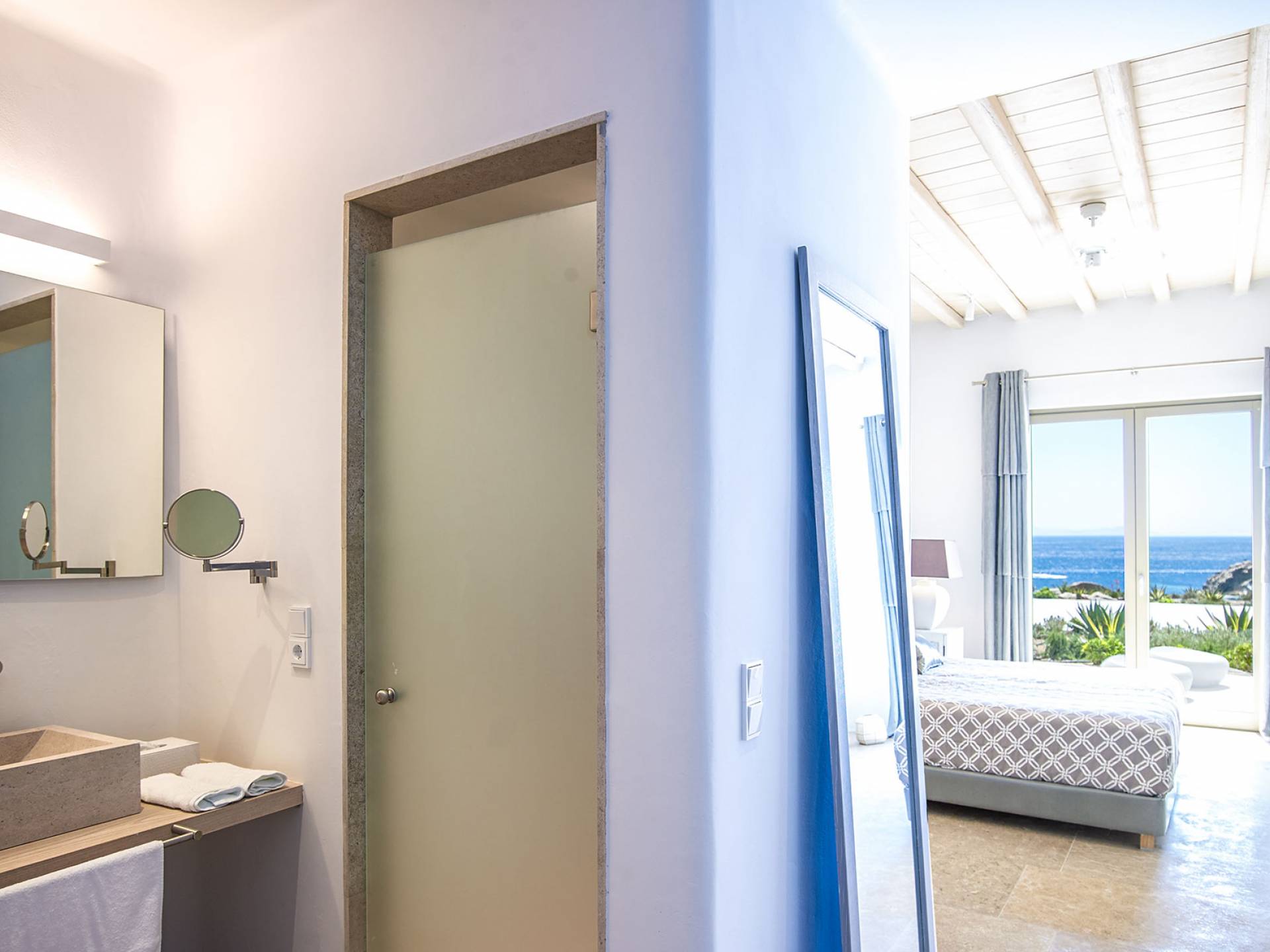 Виллы Absolute Mykonos представляют собой недавно построенный комплекс из двух отдельных и автономных вилл. Этот роскошный дом для отпуска расположен в довольно изолированном районе на южном побережье, дающем вам ощущение уединения, но все же всего в 8 км от порта Миконоса, что делает его идеальным для быстрых поездок. Он отлично подходит для семей или пар, ищущих роскошное уединение, предлагающее впечатляющую обстановку и великолепный вид на море. Оставьте двери и окна открытыми, чтобы насладиться великолепным солнцем, заливающим дом, и волшебством моря, расстилающегося перед вами, а также прекрасным закатом!
