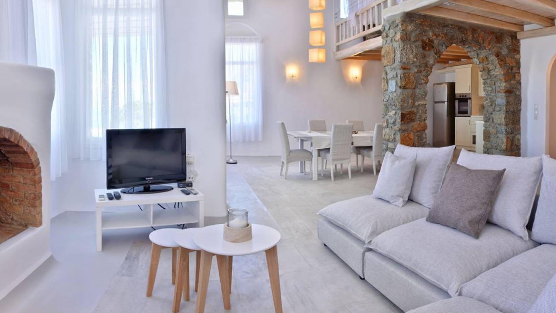 Простота и элегантность — это элементы, которые звучат повсюду, в то время как ослепительная палитра Миконоса задает тон изнутри в каждом доме, где преобладает белый цвет, а сладкие пастельные тона добавляют особый штрих. Вилла Тельго, без сомнения, является идеальным местом, чтобы расслабиться и отдохнуть с комфортом, предаваясь удовольствиям Миконоса.