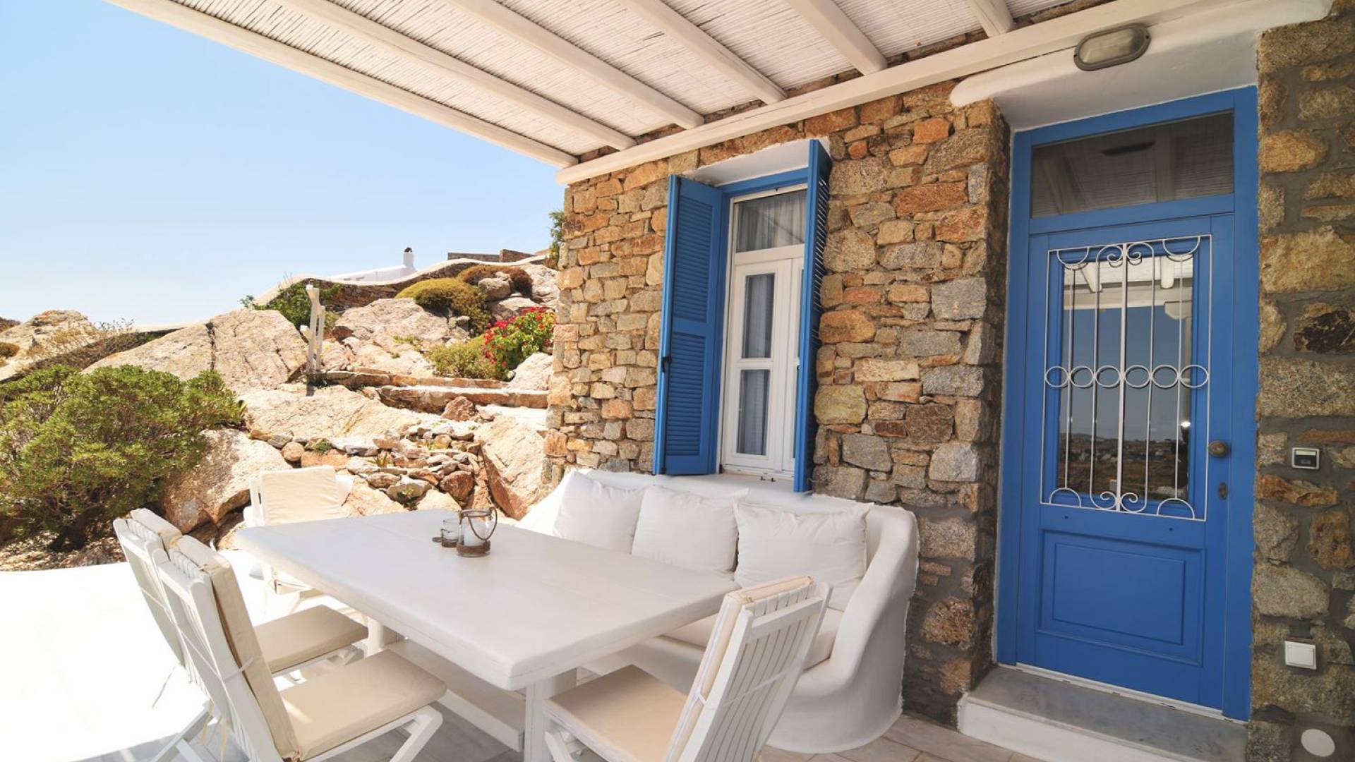 Дом 4 на вилле Thelgo Mykonos — это роскошная вилла с 2 спальнями и 4 ванными комнатами. Дом 4 предлагает красивую полностью меблированную террасу с прекрасным видом на залив Псару и Эгейское море. В Доме 1 могут разместиться 10 гостей.