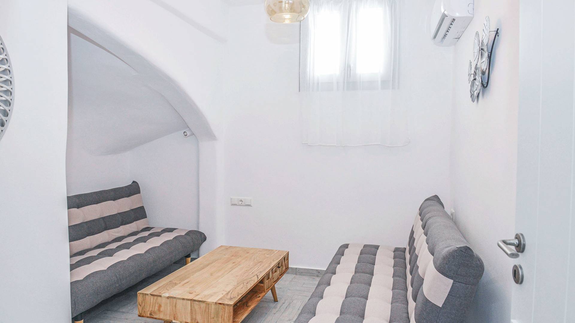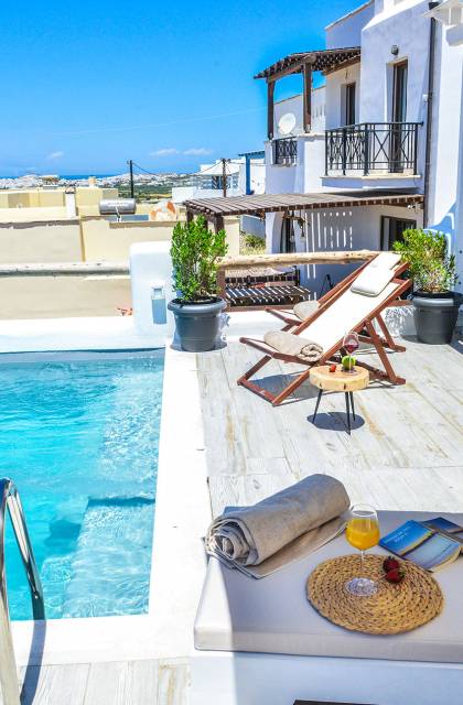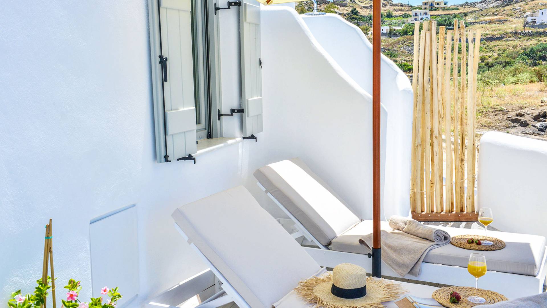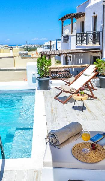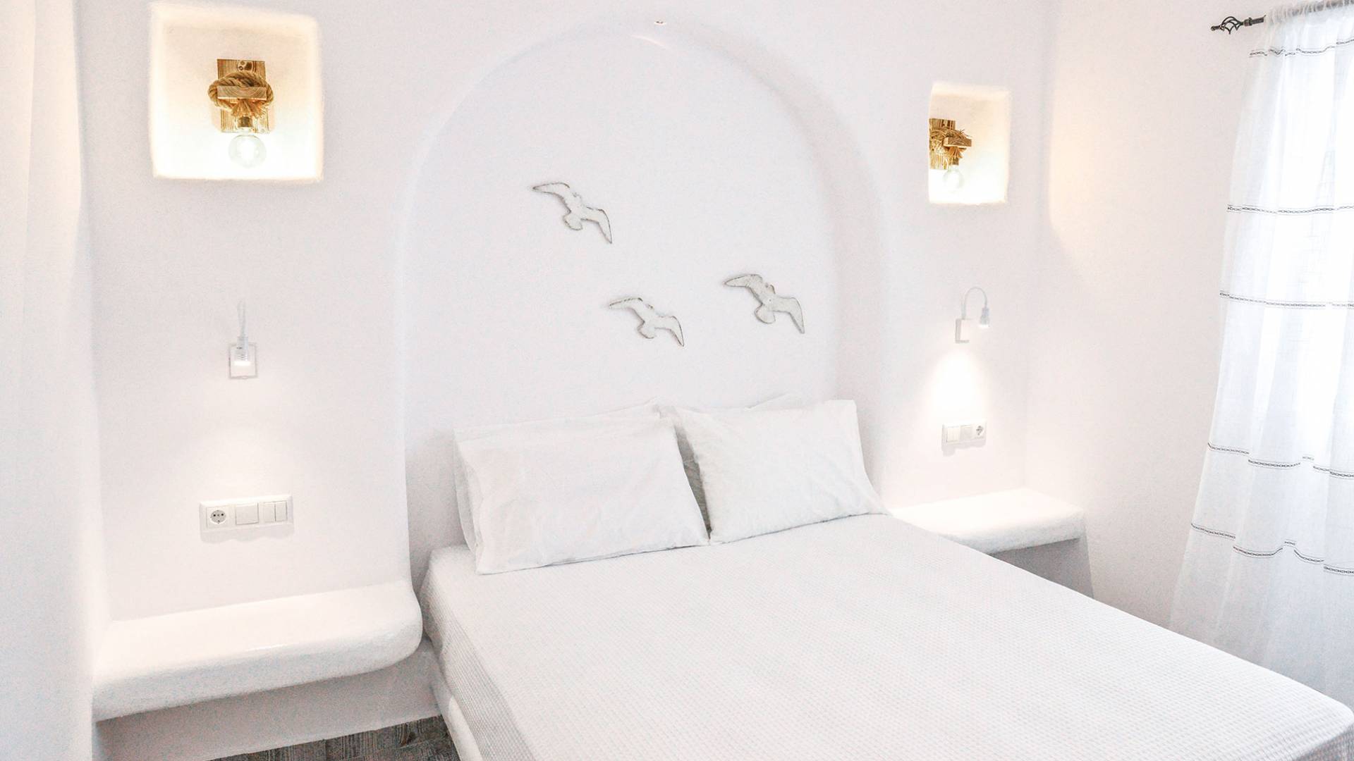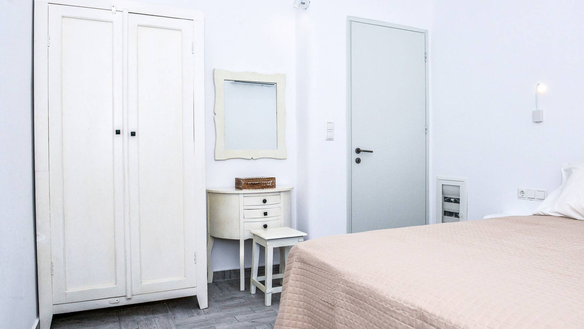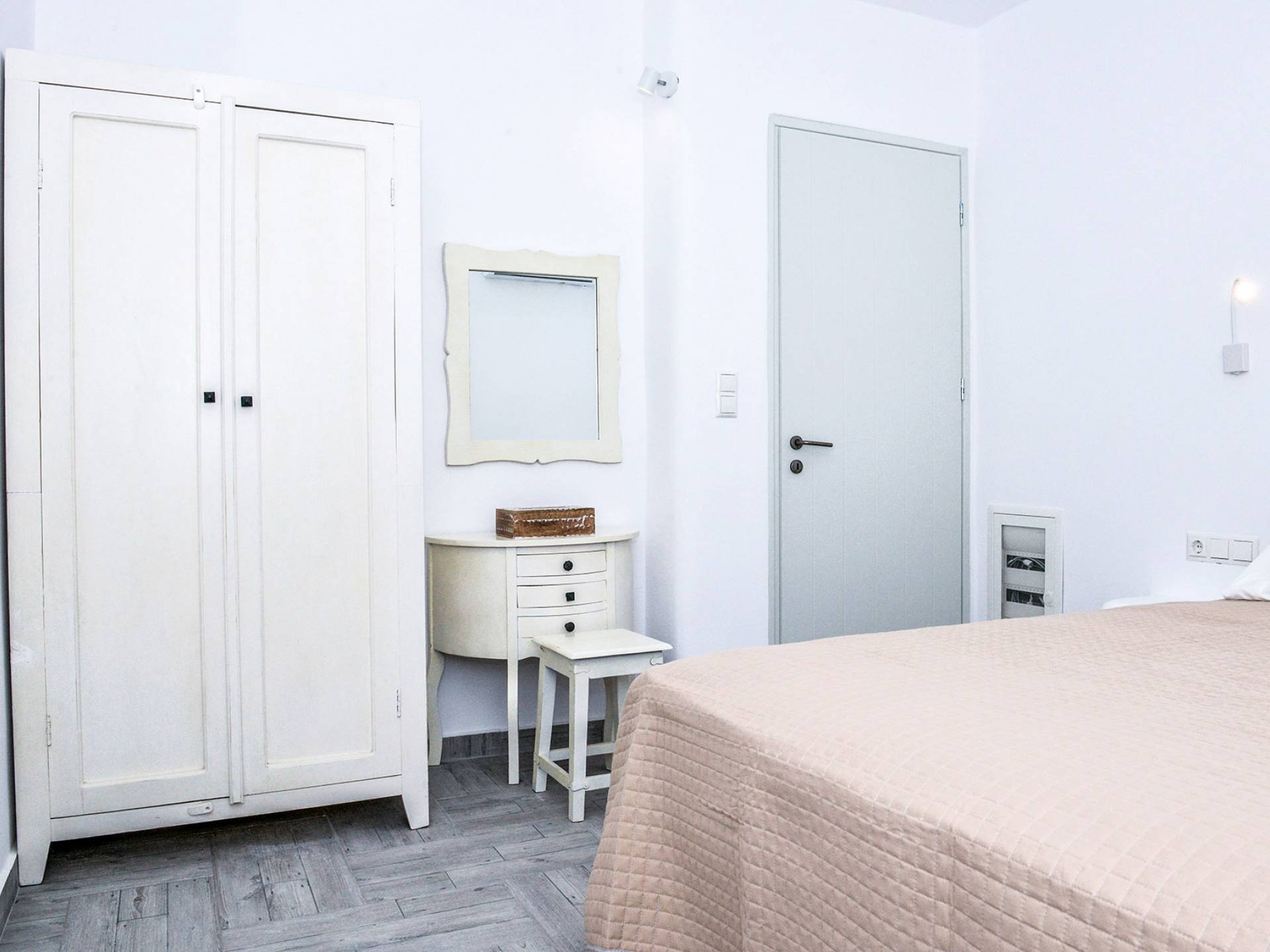 Вилла Erato Naxos — это вилла с 3 спальнями, тщательно спроектированная для семей или больших компаний. Главная спальня находится на верхнем этаже с 1 двуспальной кроватью (160 см х 200 см), собственной ванной комнатой, общим пространством, в котором может разместиться один человек, и балконом с прямым выходом на частную прихожую площадью 14 кв.м. бассейн с потрясающим видом на море. На первом этаже расположены две спальни с двуспальной кроватью (160 см х 200 см), небольшая комната с 2 односпальными диванами-кроватями и одна ванная комната.