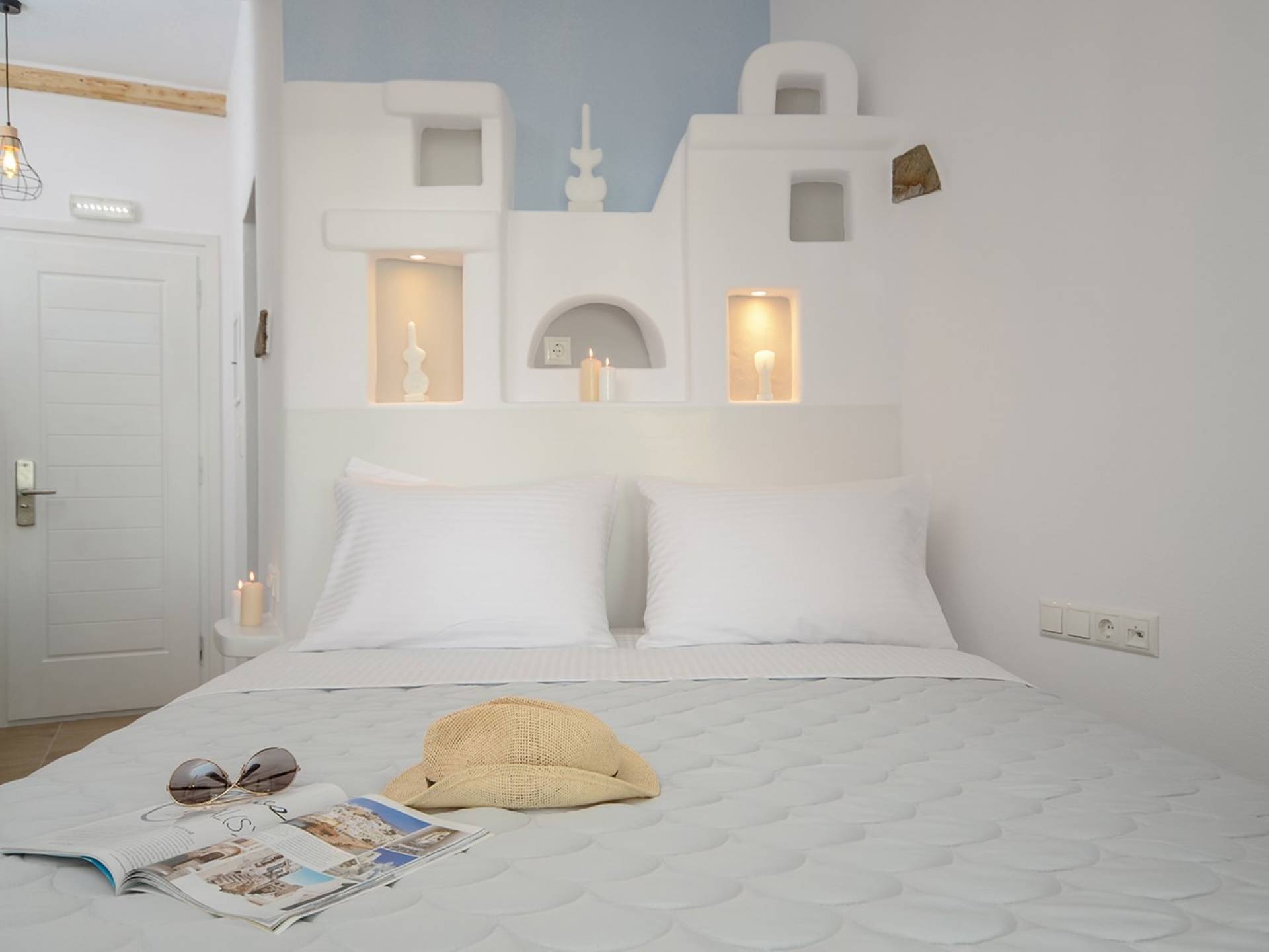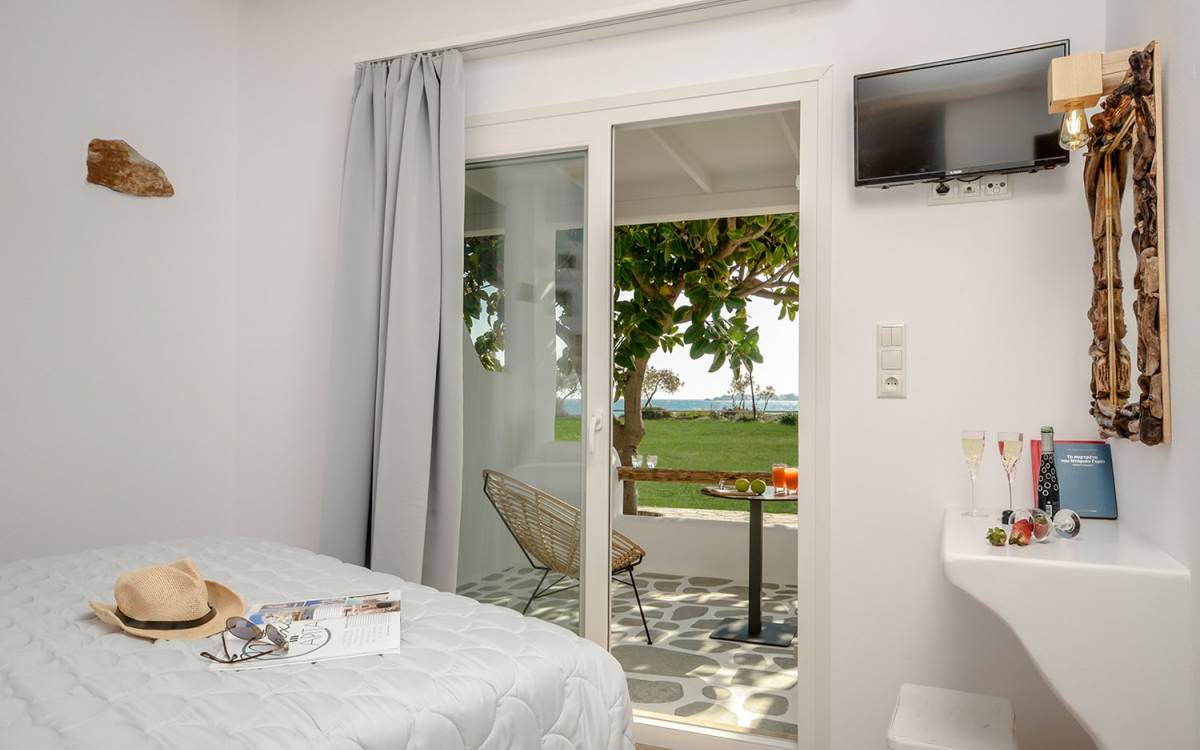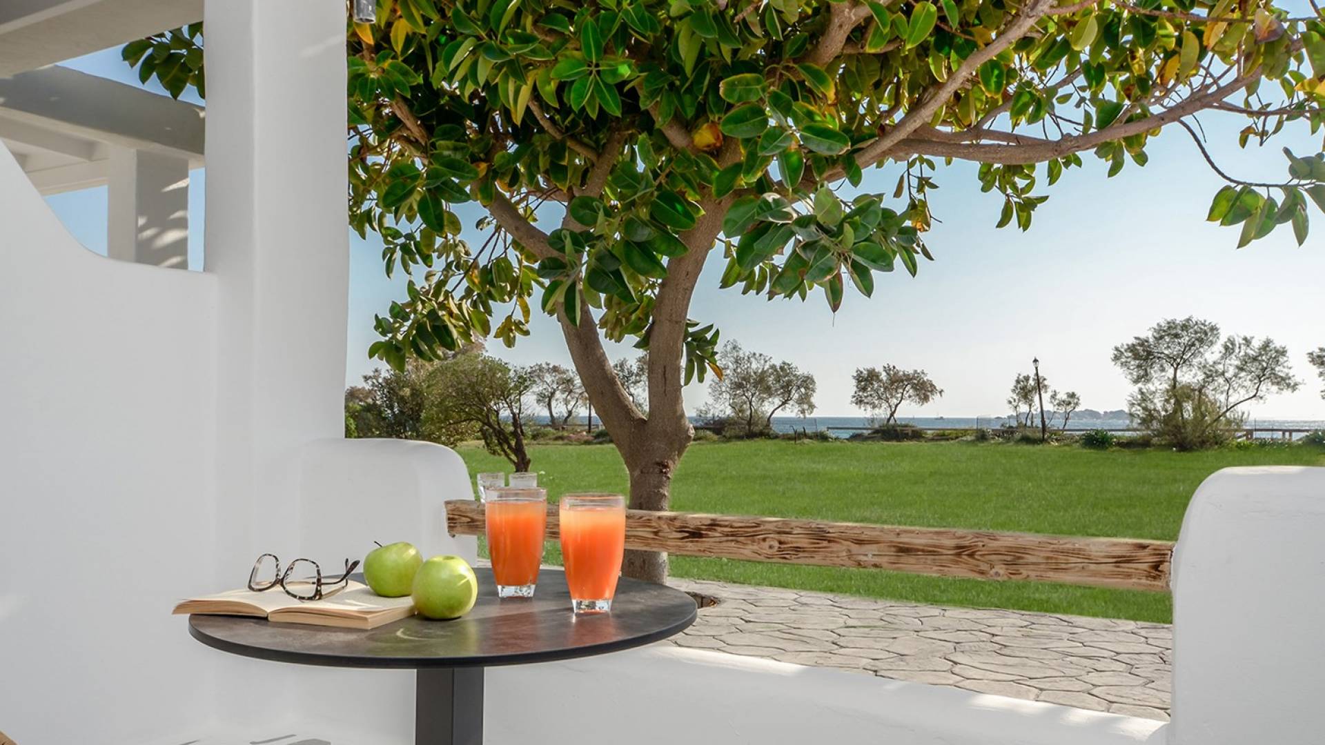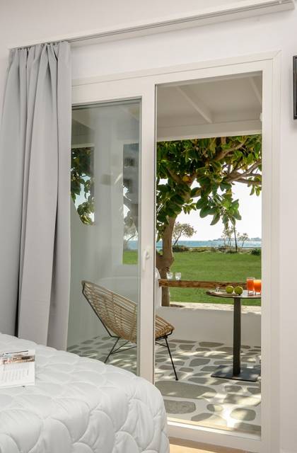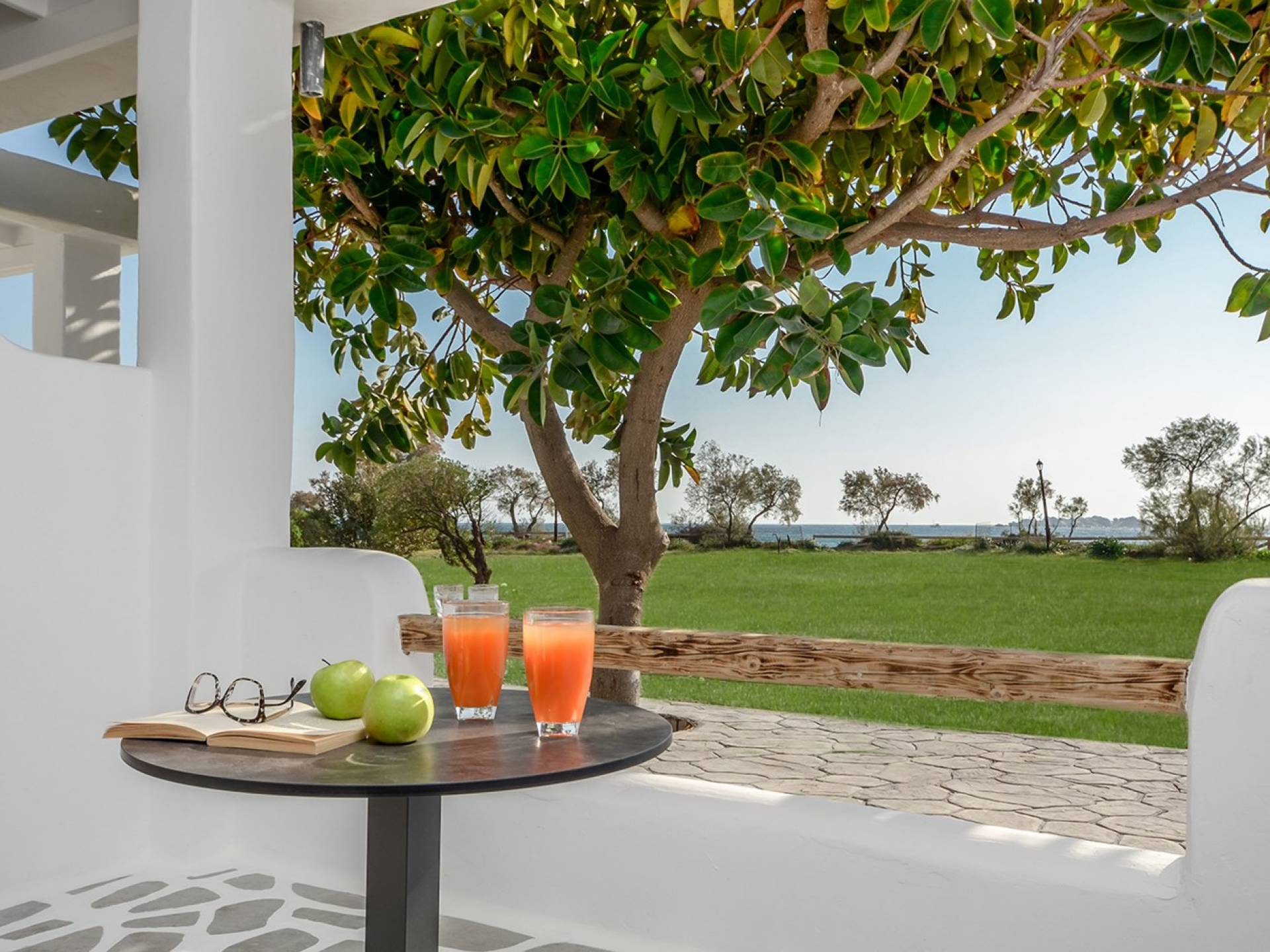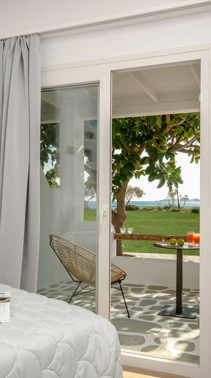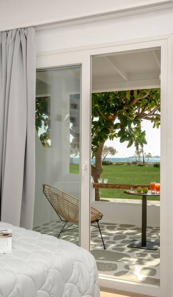 Ваш отпуск на Наксосе и Гларонисси не будет полным, если вы не испытаете гостеприимство Наксоса и не отведаете вкусных местных продуктов. Наслаждайтесь домашним завтраком, который мы предлагаем, с вкусными органическими продуктами, которые мы ежедневно собираем для вас с фермы, и ощутите подлинное гостеприимство в полной мере. Белые цвета и четкие линии доминируют в номере Deluxe Suite, освещенном большим количеством естественного света. Сочетание кикладской архитектуры с деревенскими деталями создает элегантную и удобную обстановку. Полностью оборудованный всем необходимым, он создает ощущение интимности вашего дома. Вид на море прекрасно дополняет это место и готов принять вас в утренние и вечерние минуты отдыха.